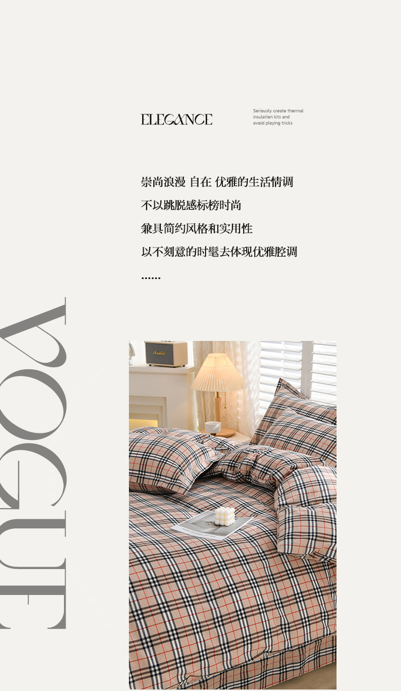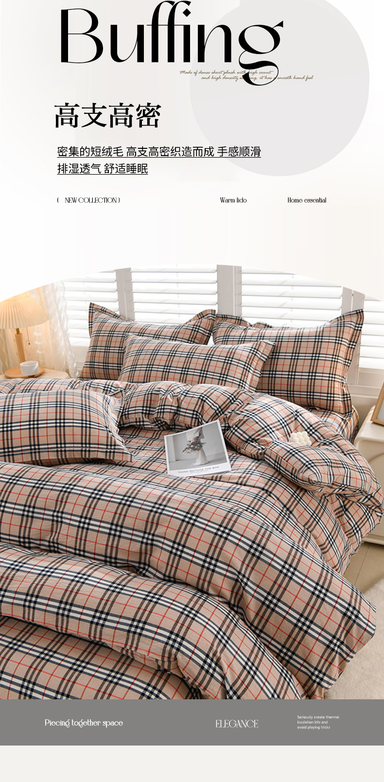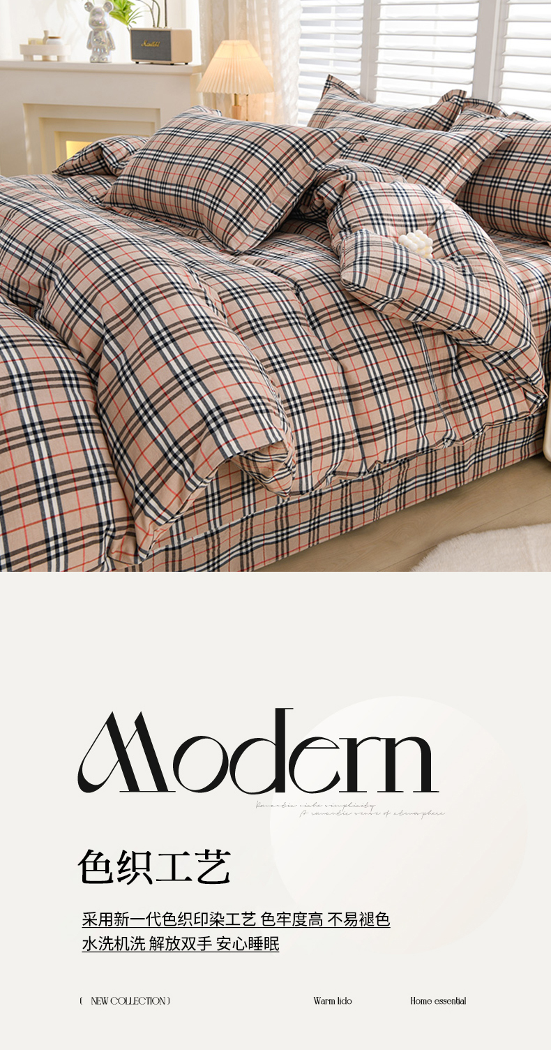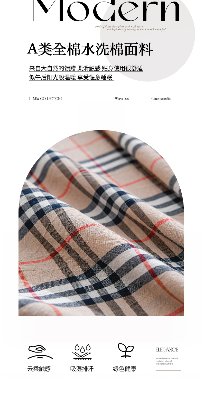 商品名称:润淳家居 2025新款A类全棉水洗棉四件套三件套 巴宝莉 迷你格