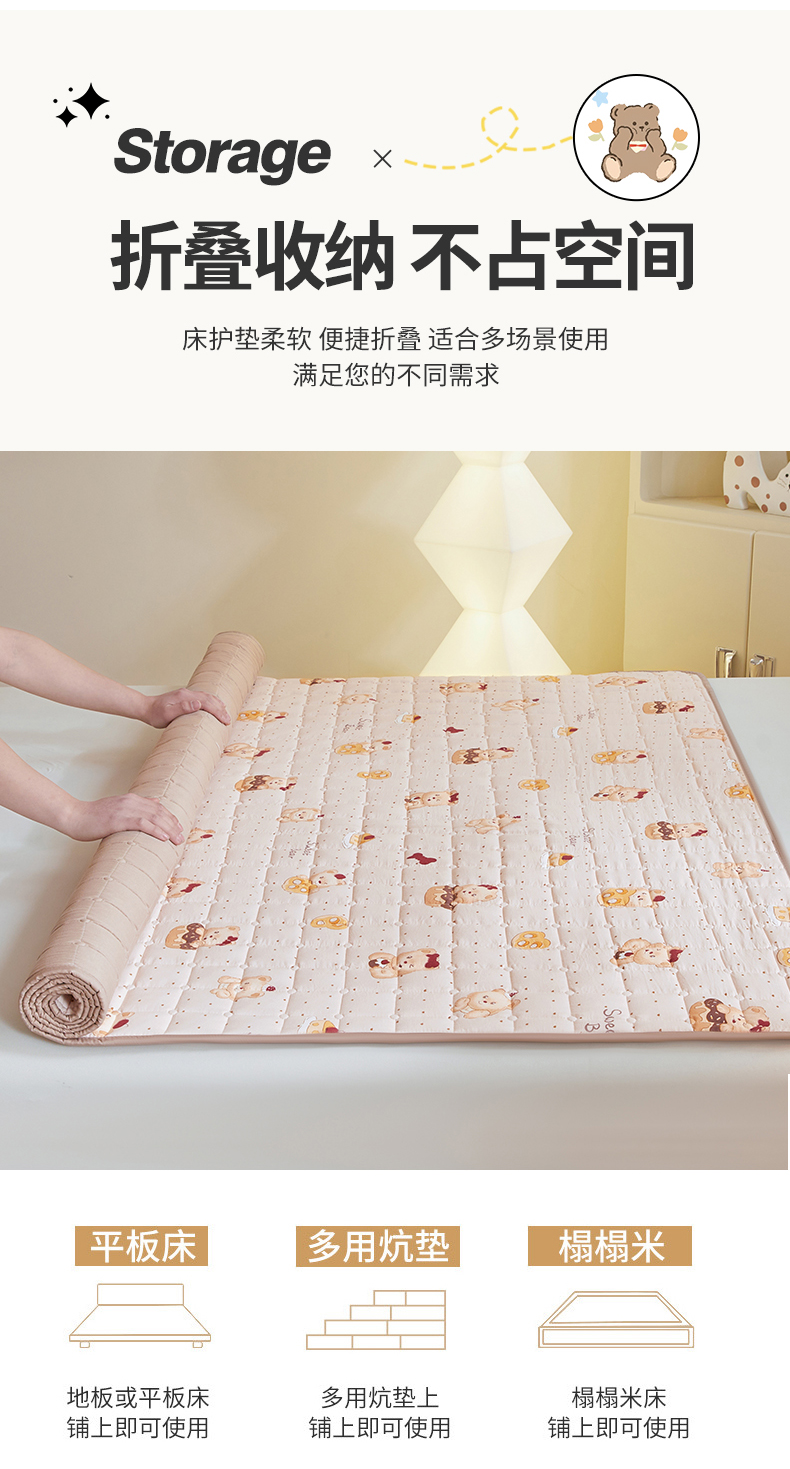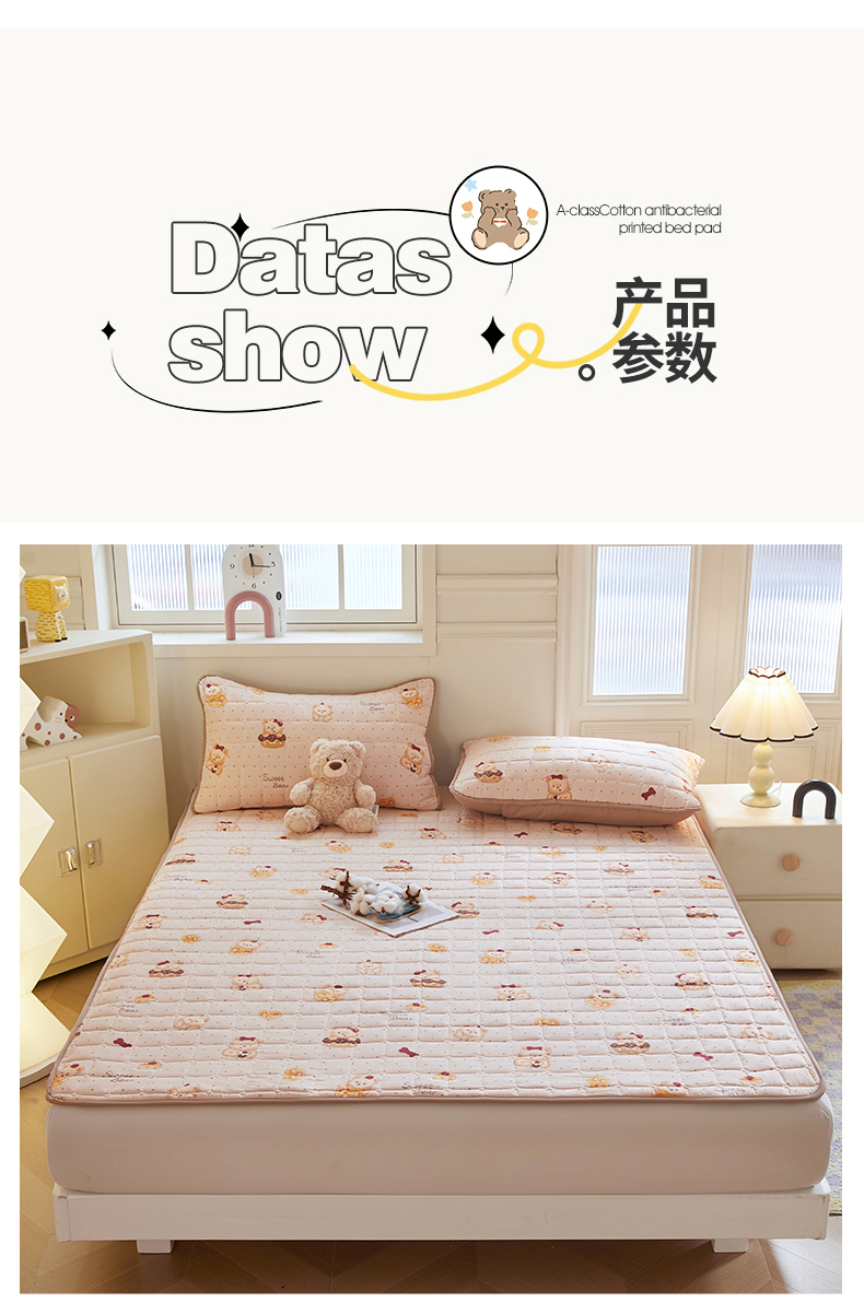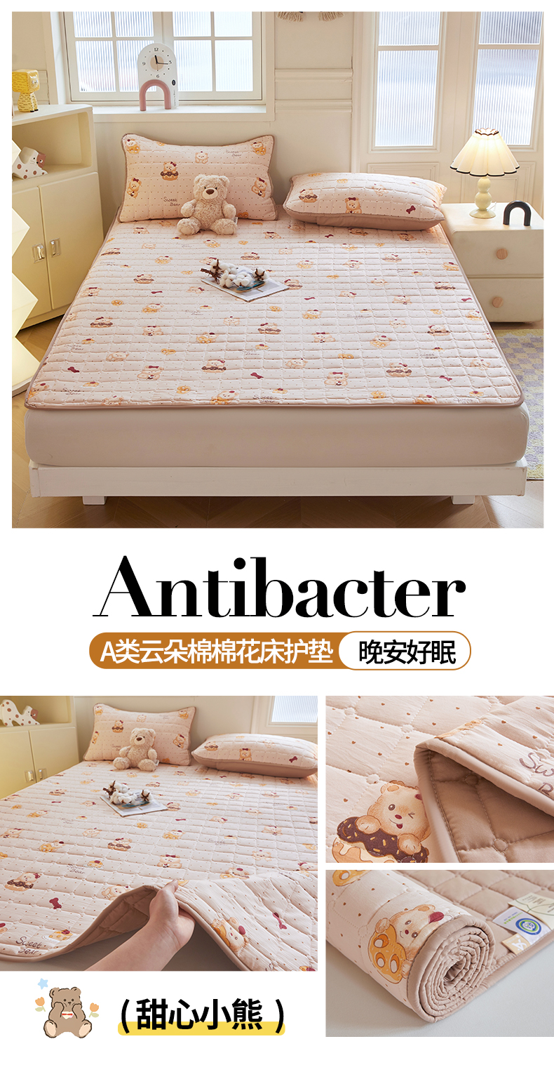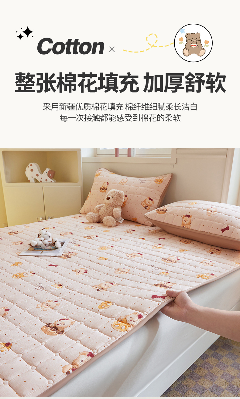 当前位置: 91家纺网 > 商品网购 > 床垫/床褥 > 普通床垫 > 魅图家纺 2025新款A类云朵棉抗菌棉花床护垫 甜心小熊