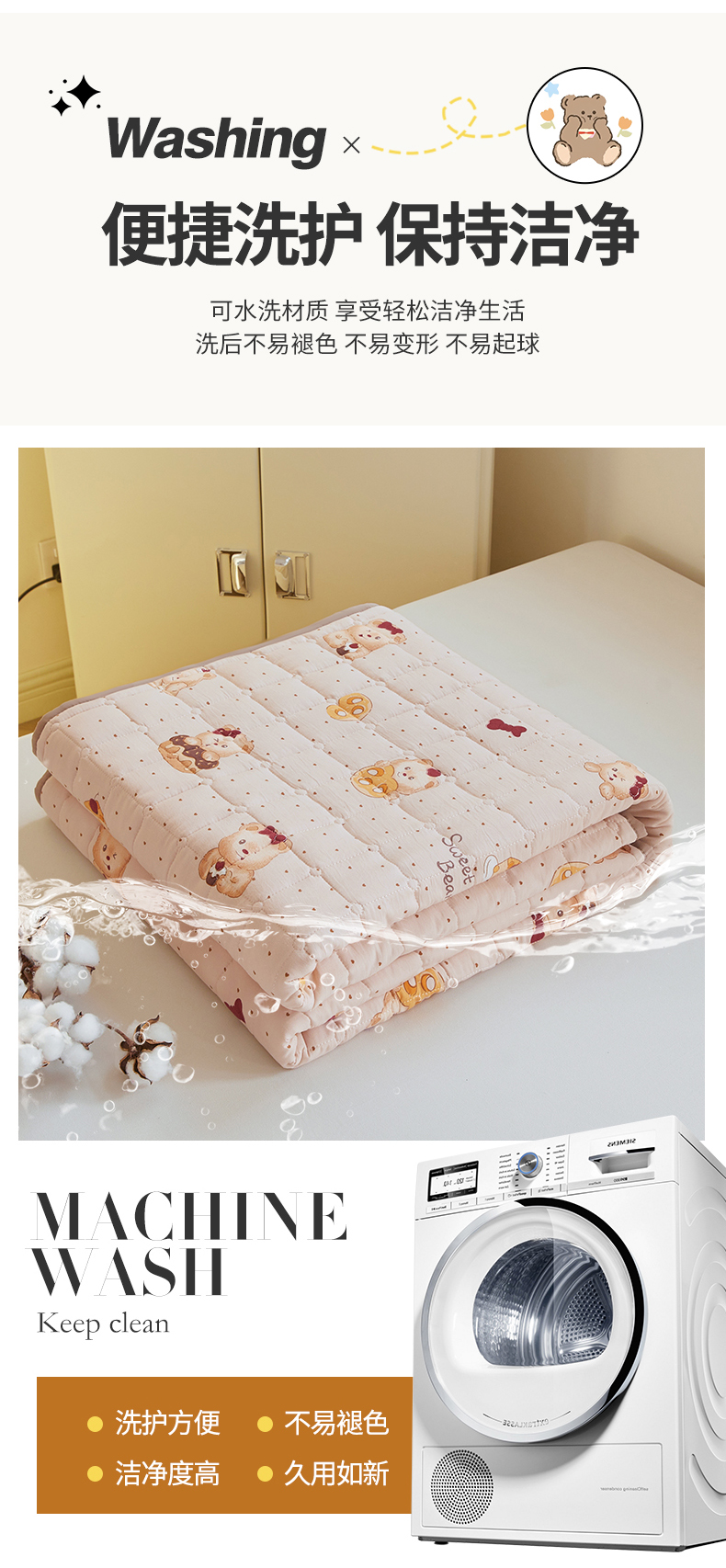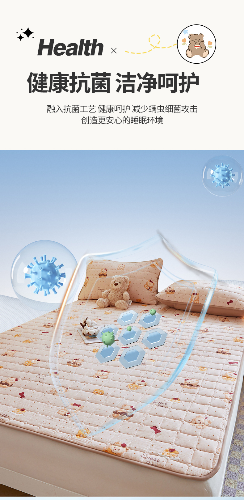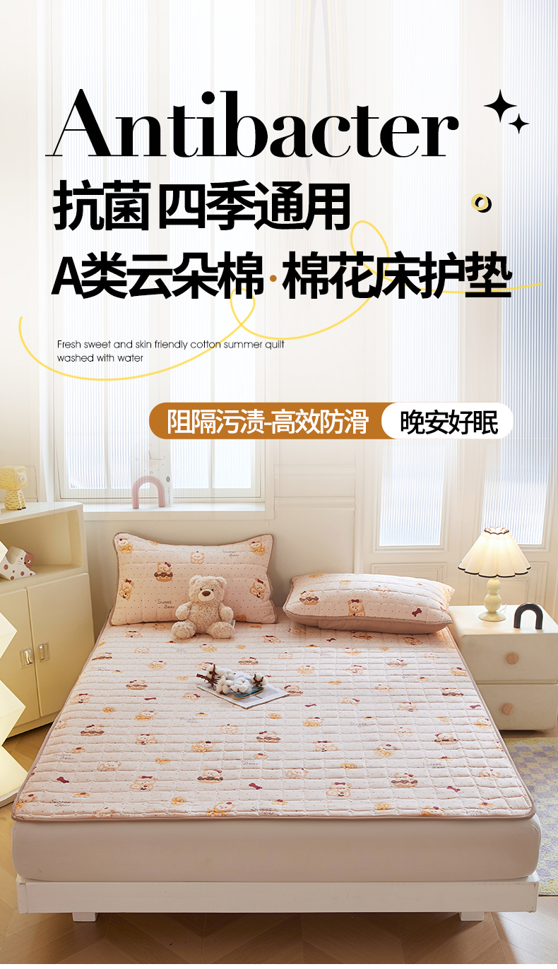当前位置: 91家纺网 > 商品网购 > 床垫/床褥 > 普通床垫 > 魅图家纺 2025新款A类云朵棉抗菌棉花床护垫 甜心小熊