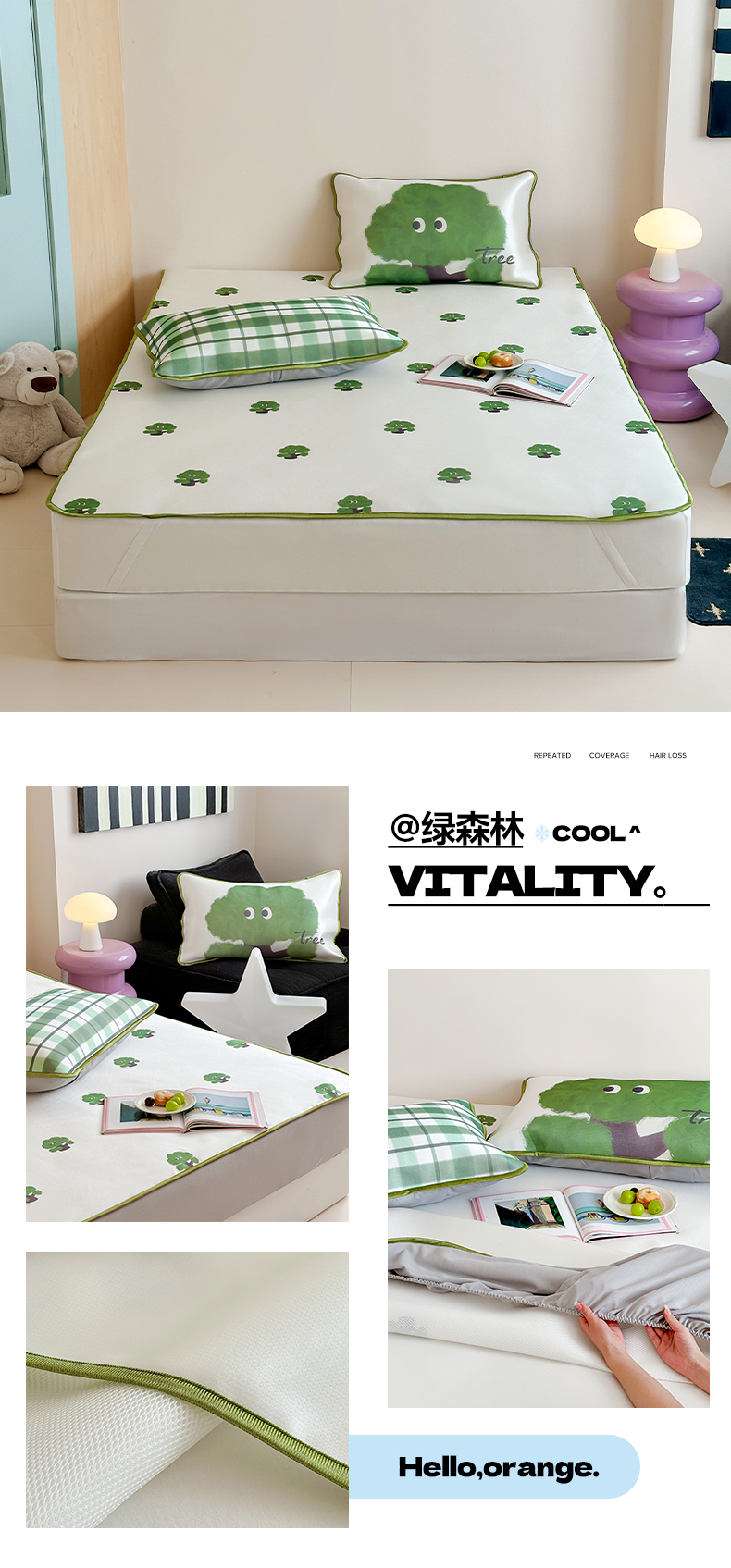 如一2025A类ins大版数码卡通印花冰丝凉感席 绿森林-床笠-床笠