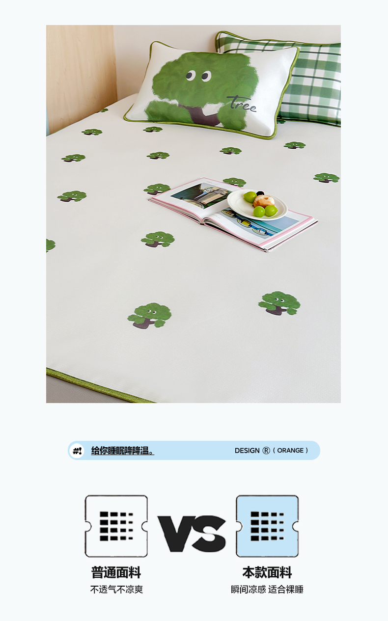 • 91家纺网 家纺一手货源 找家纺 如一2025A类ins大版数码卡通印花冰丝凉感席 绿森林-床笠-床笠