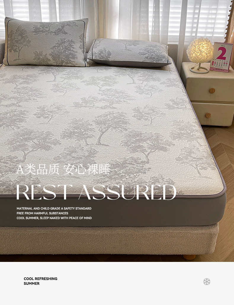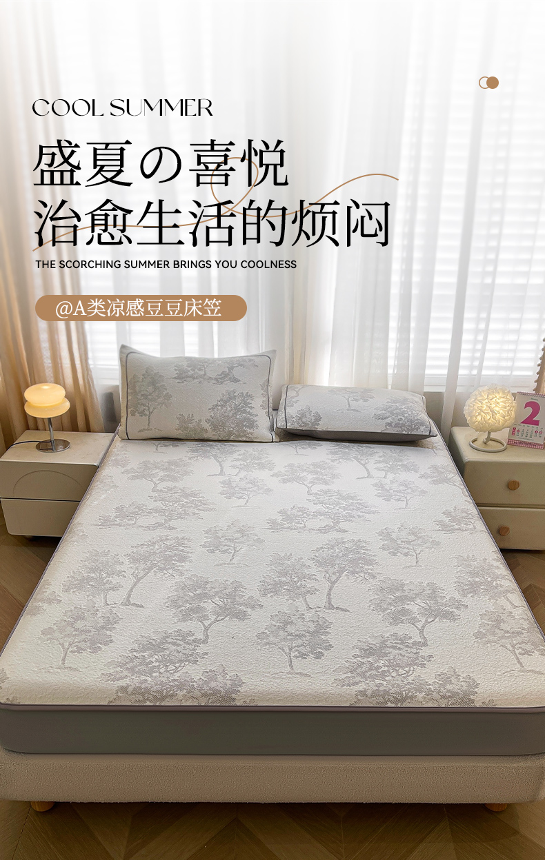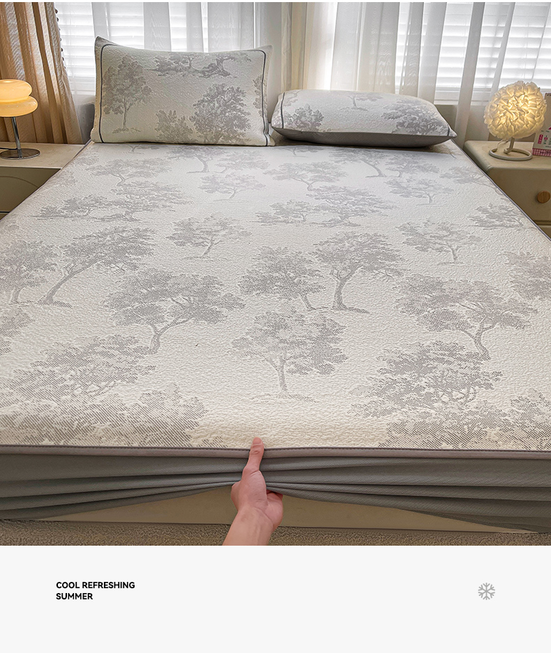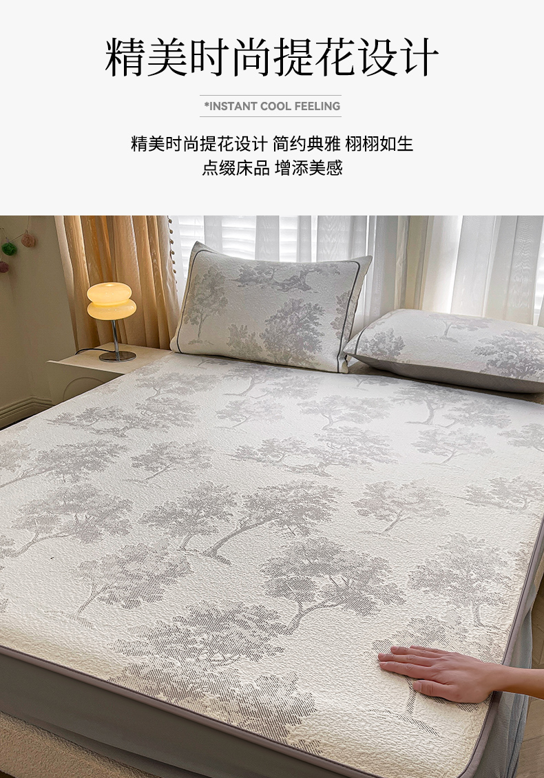 全季家居 2025新款A类乙纶PE花卉轻奢提花系列凉豆豆席 床笠款-迷雾森林-深棕