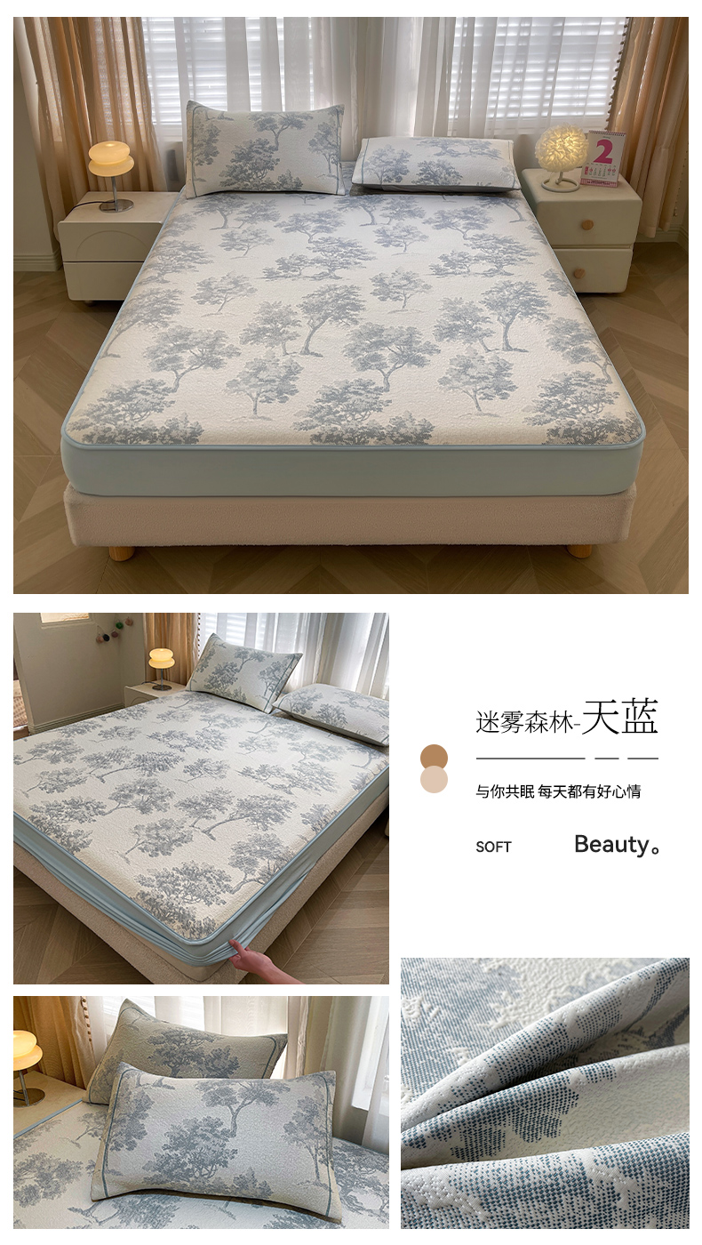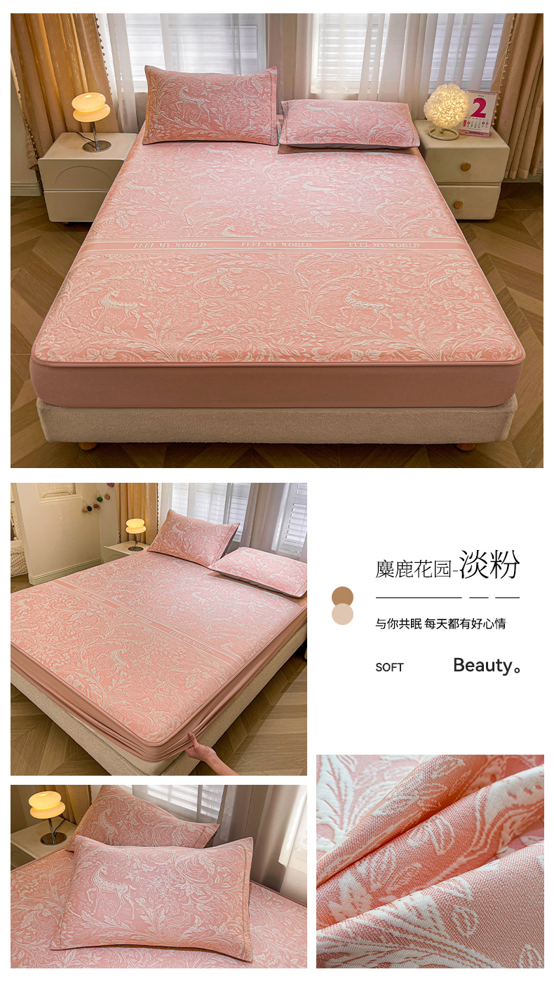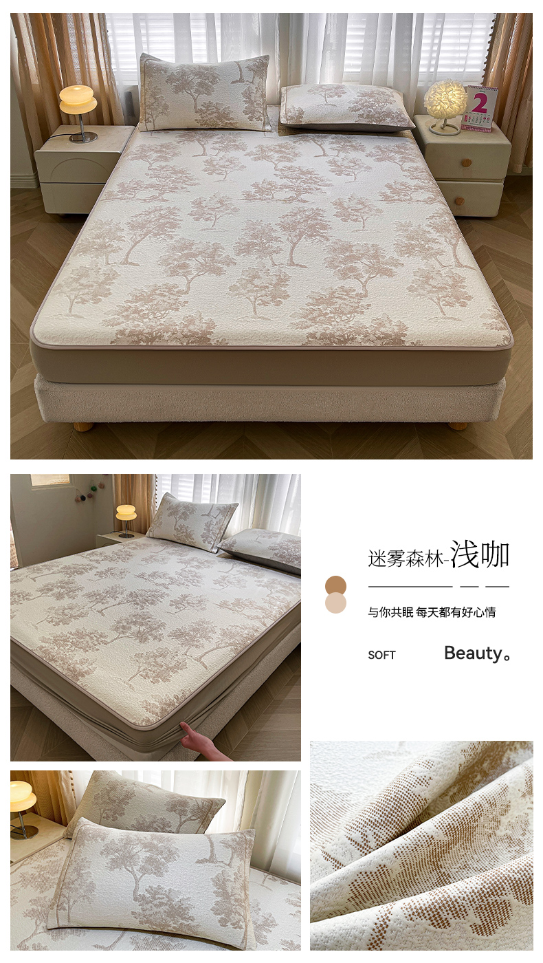 • 91家纺网 家纺一手货源 找家纺 全季家居 2025新款A类乙纶PE花卉轻奢提花系列凉豆豆席 床笠款-迷雾森林-深棕