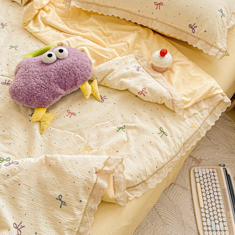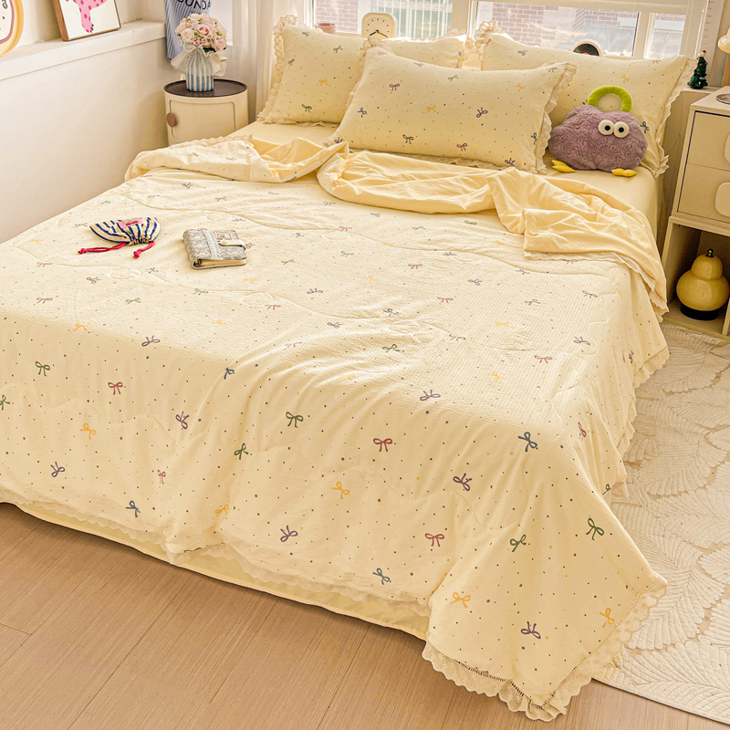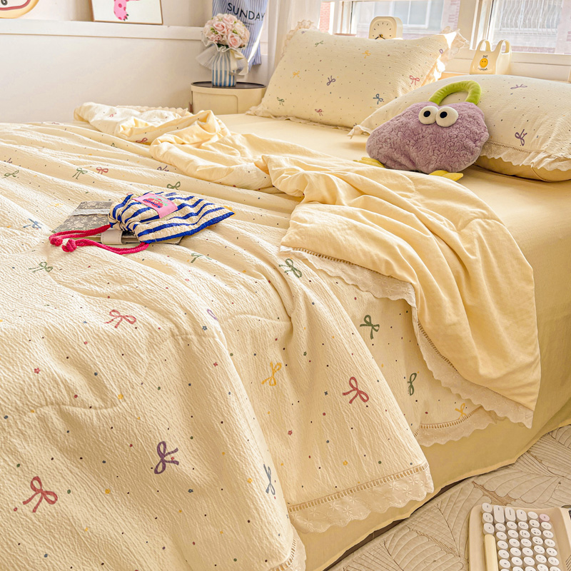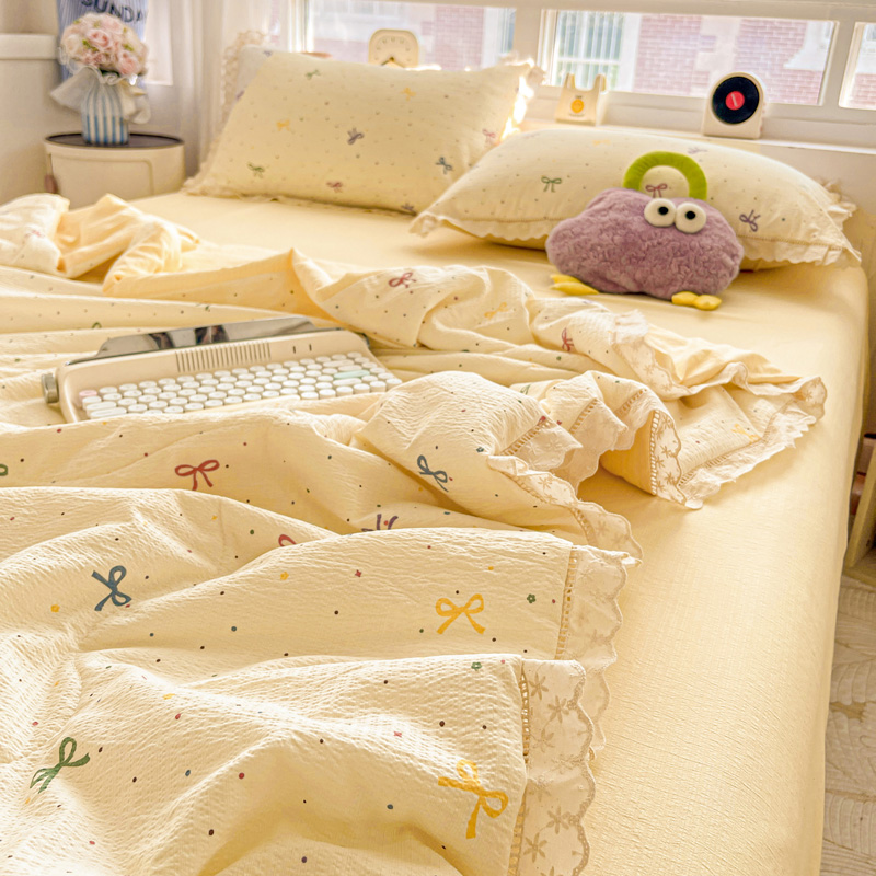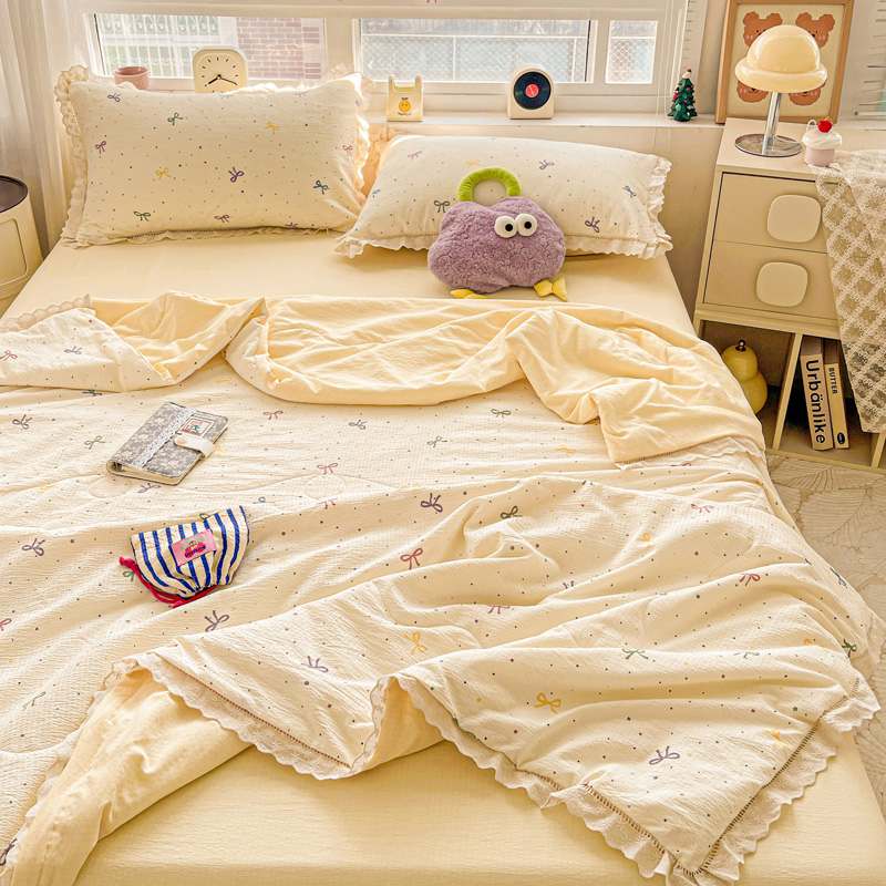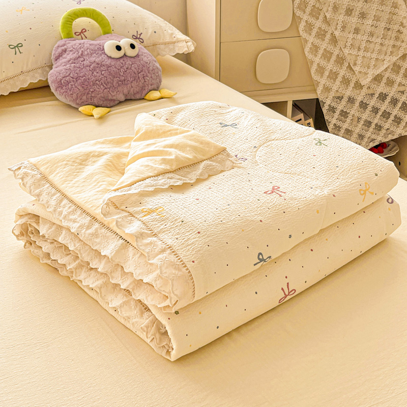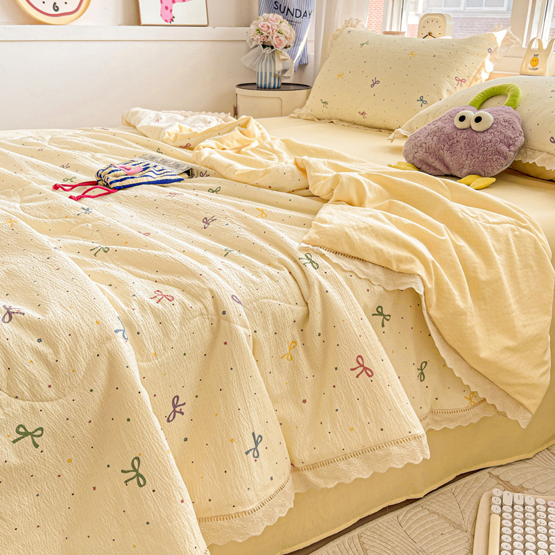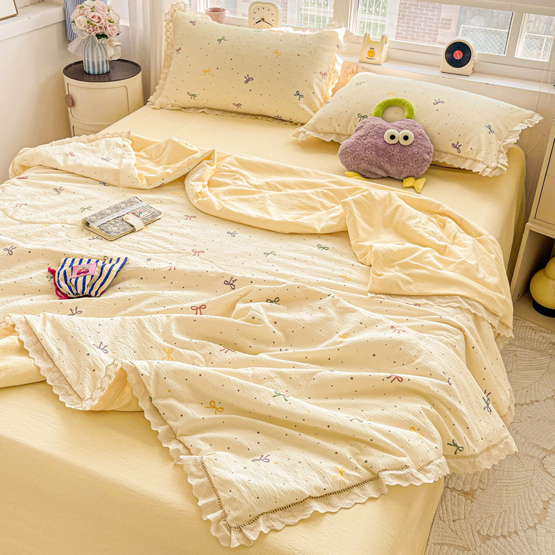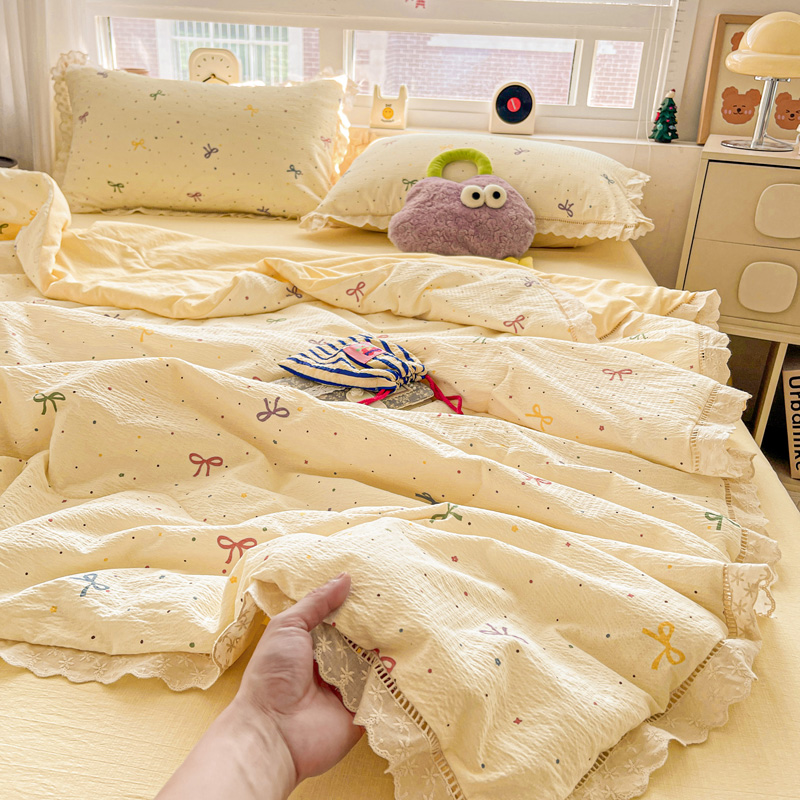 2025新款云感皱皱纱全棉花边款夏被四件套