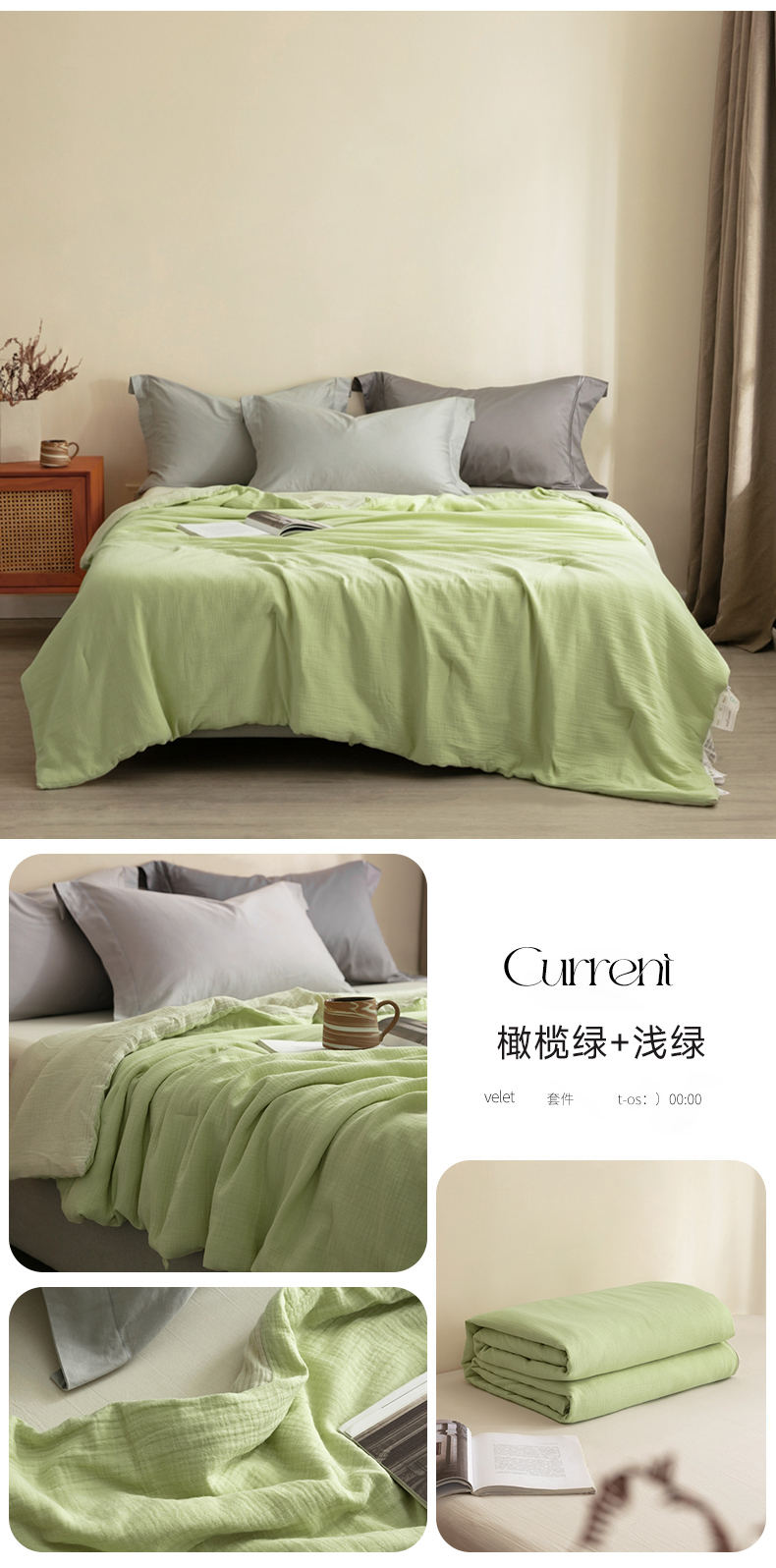 商品名称:蚕阿婆 2025新款皱皱纱布蚕丝被100%蚕丝被子 橄榄绿+浅绿