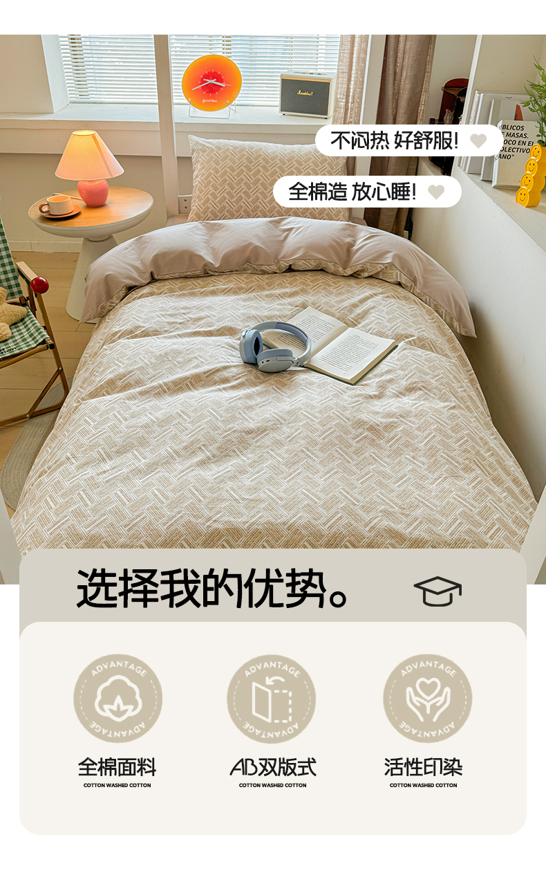 当前位置: 91家纺网 > 商品网购 > 床品套件 > 四件套 > 全棉普通四件套 > 涵宸2025新款全棉宿舍学生款三件套四件套 云沫