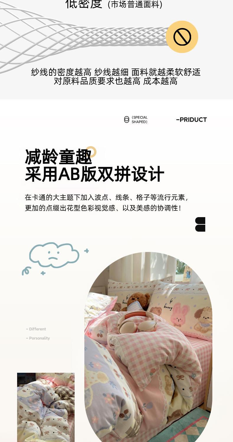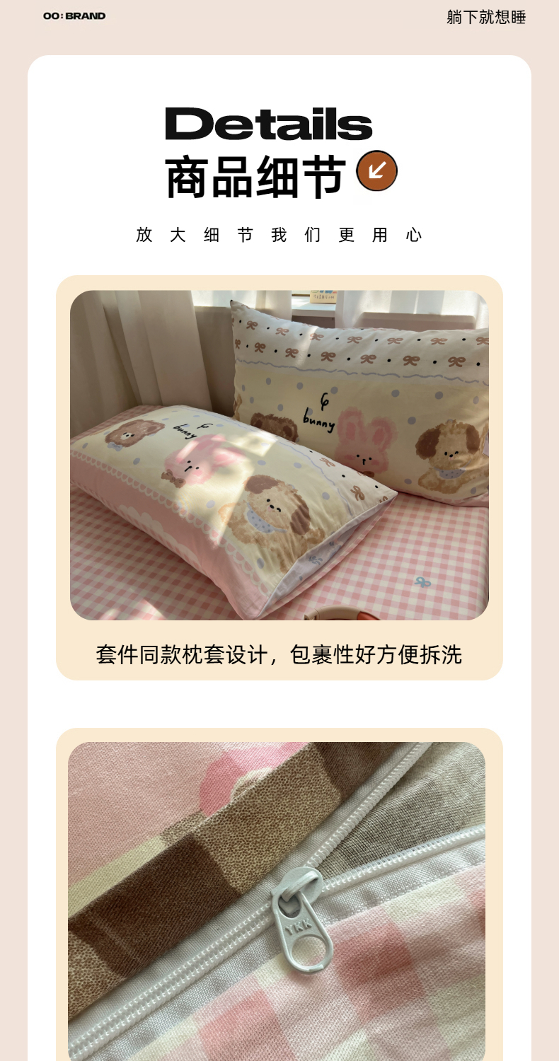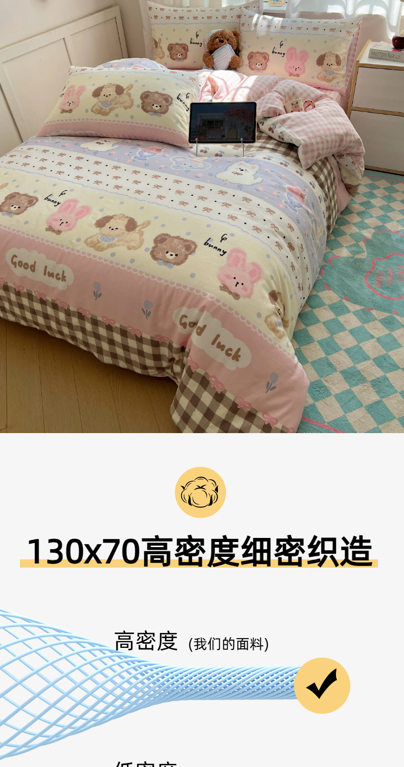 商品名称:六巷胡同 2025新款INS卡通减龄可爱风全棉四件套(开学季系列) 涂鸦动物集