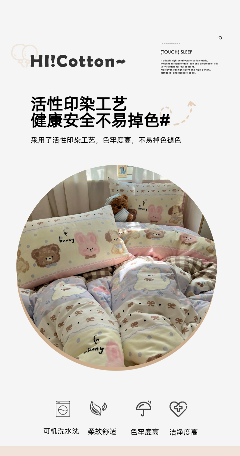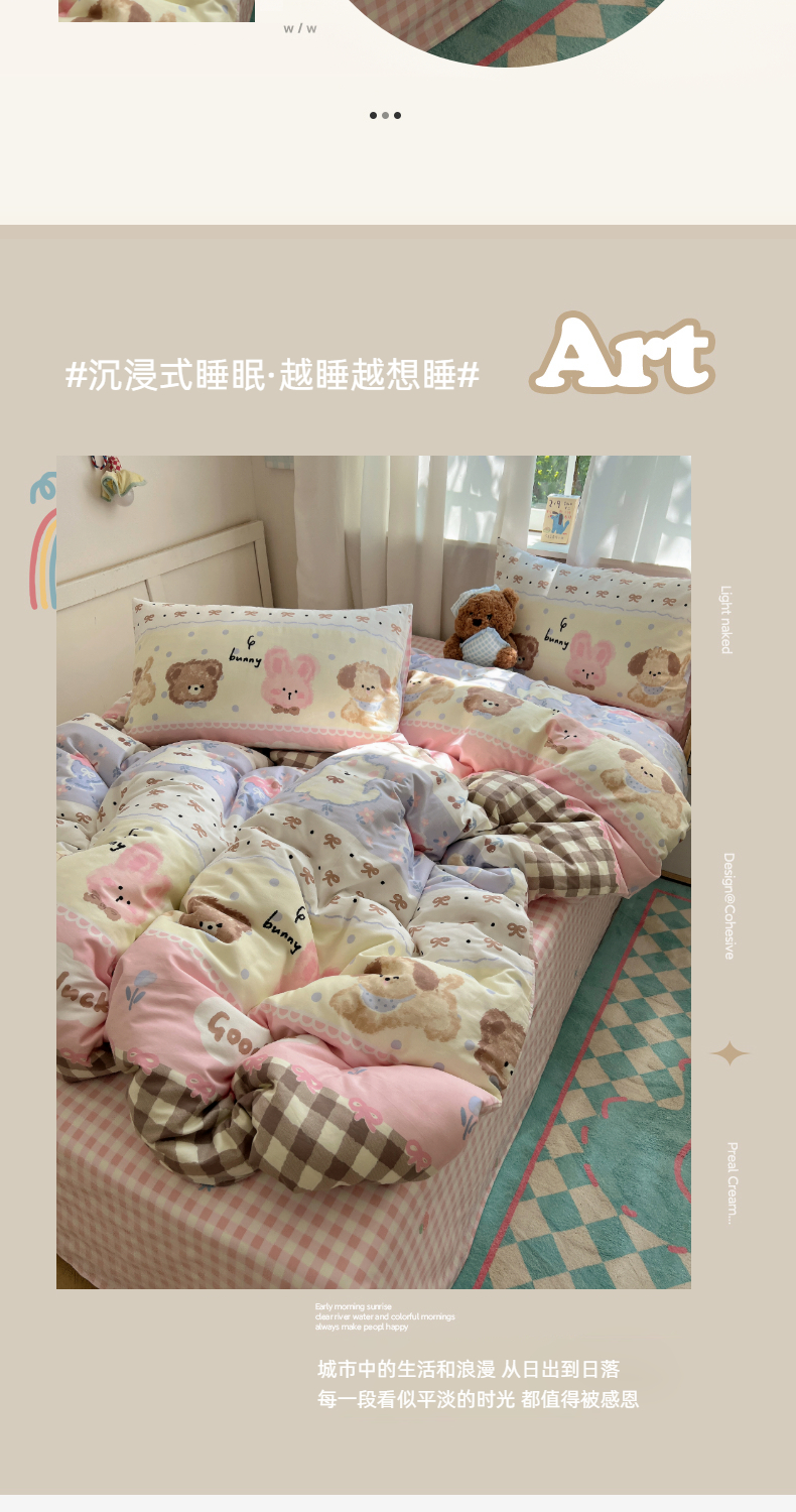(总)六巷胡同 2025新款INS卡通童趣混搭风全棉四件套第二系,混搭-蛋糕围兜熊,混搭-奶油酣睡熊,混搭-奈斯羞羞狗,混搭-小蓝格甜点,混搭-雪糕哈皮熊,混搭-月亮睡睡熊
