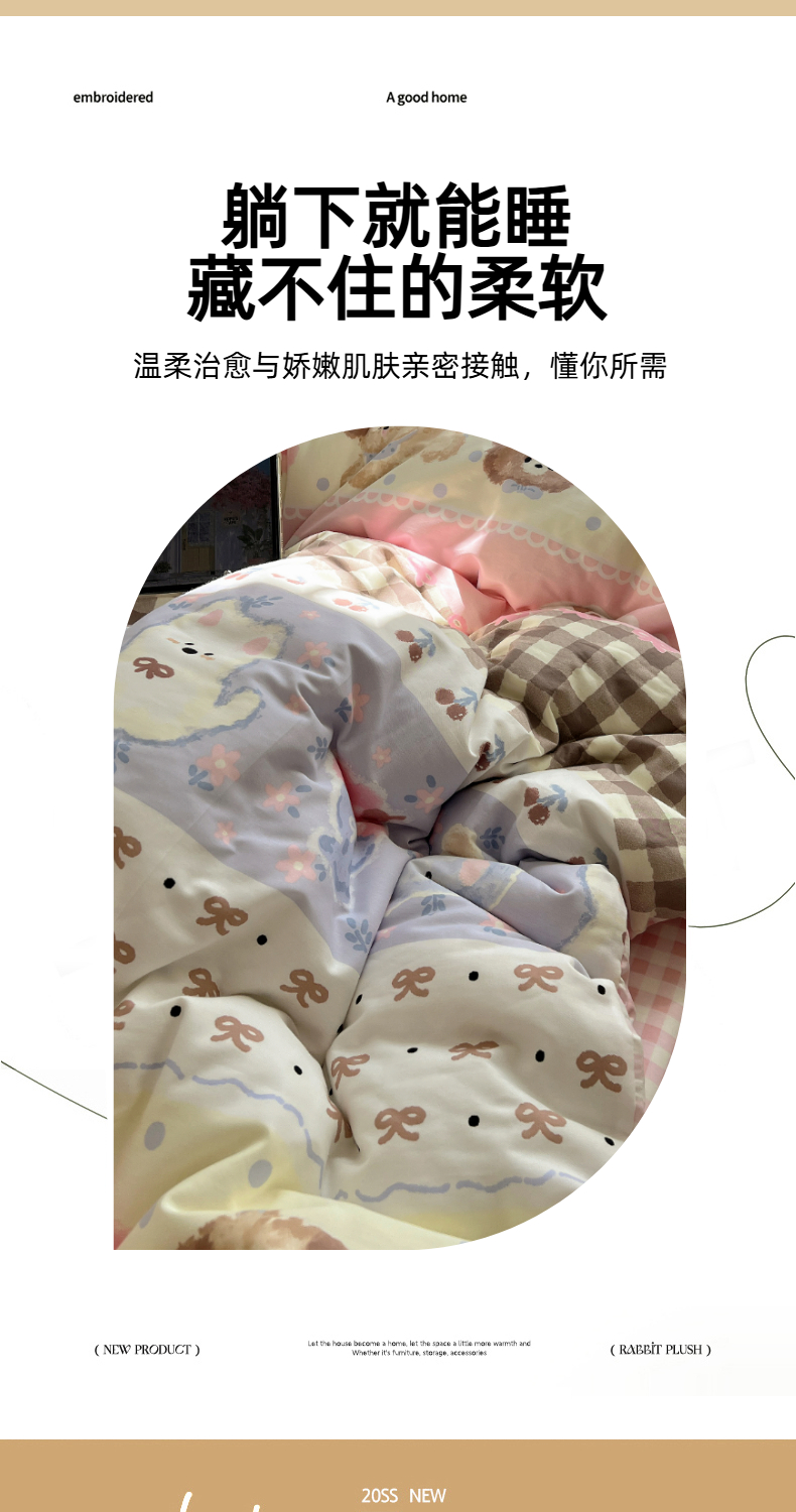 (总)六巷胡同 2025新款 INS减龄可爱风卡通全棉四件套第五系(森林音乐会系列),波点嘟嘟猫,点点面包犬,调皮蔷薇狗,哈喽泡芙猫,蓝格插画犬,森林音乐会