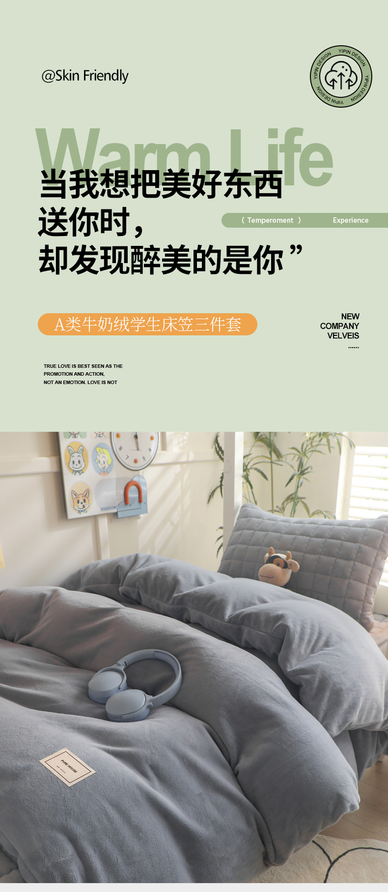• 91家纺网 家纺一手货源 找家纺 爱思凯家纺 2025新款初心-牛奶绒学生床笠小号三件套 【初心】床笠-时尚灰
