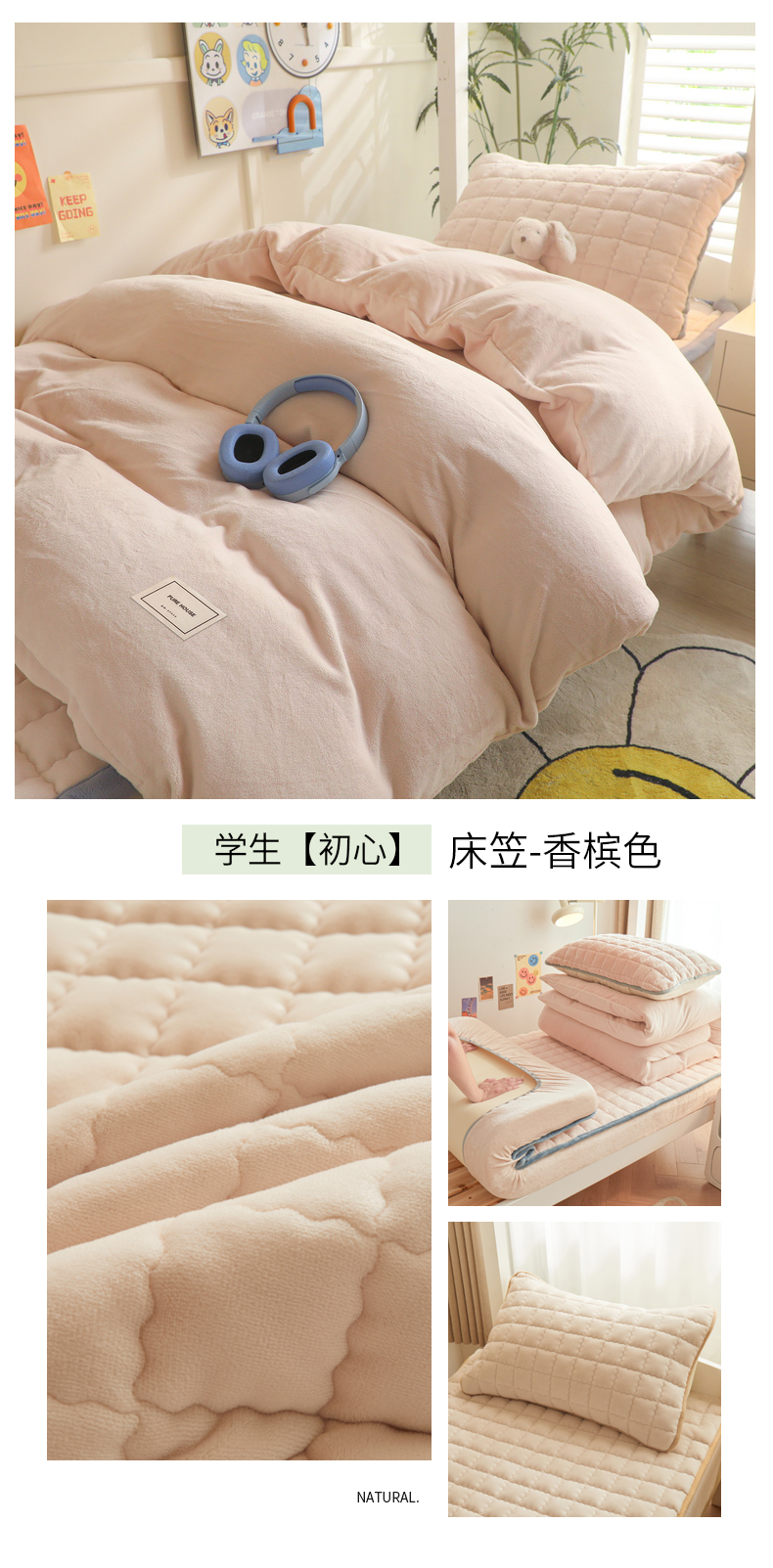 爱思凯家纺 2025新款初心-牛奶绒学生床笠小号三件套 【初心】床笠-时尚灰