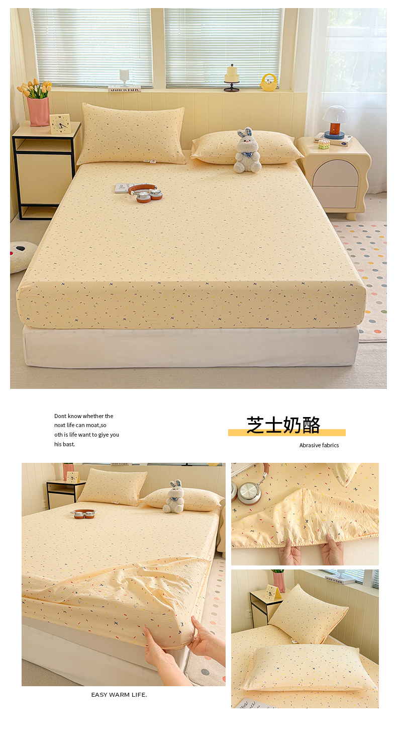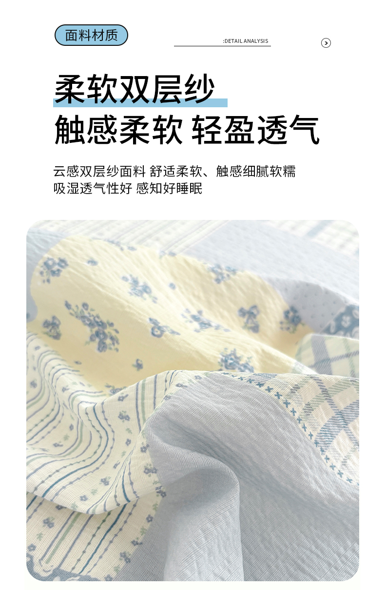 (总)青泽家纺 2025新款水洗棉皱皱纱双层纱床单三件套,芝士奶酪,半亩花田,田园女孩,疏影之心,南瓜派对,萌兔兔,萌宠乐园,梨花落,花园小兔,花间序语,海盐耶耶,乖乖象,格子小狗,豆蔻年华,花轻舞,半岛红茶