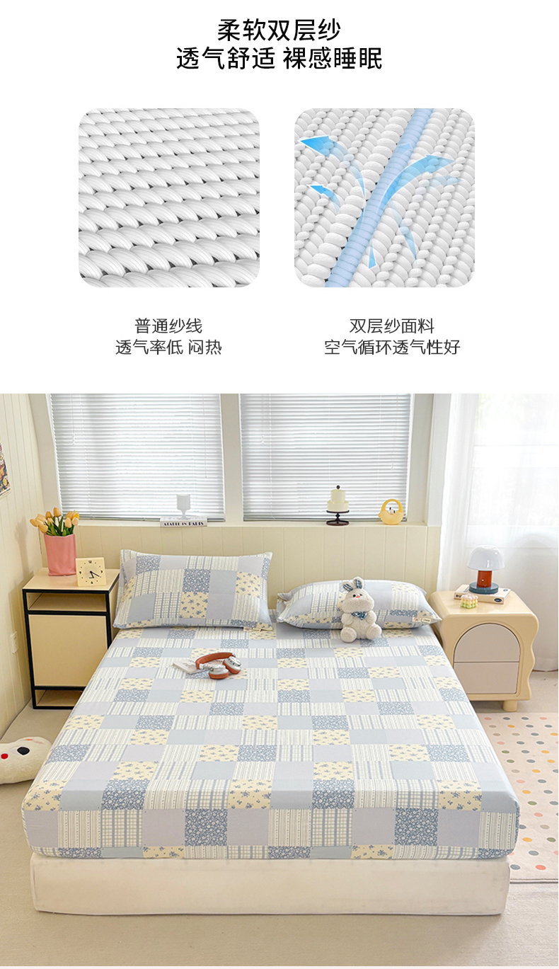 (总)青泽家纺 2025新款双层皱皱纱印花床笠单品床笠单件单床笠,半亩花田,豆蔻年华,芝士奶酪,田园女孩,疏影之心,南瓜派对,萌兔兔,萌宠乐园,梨花落,花轻舞,花间序语,海盐耶耶,乖乖象,格子小狗,花园小兔,半岛红茶