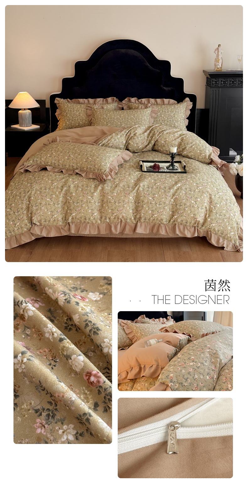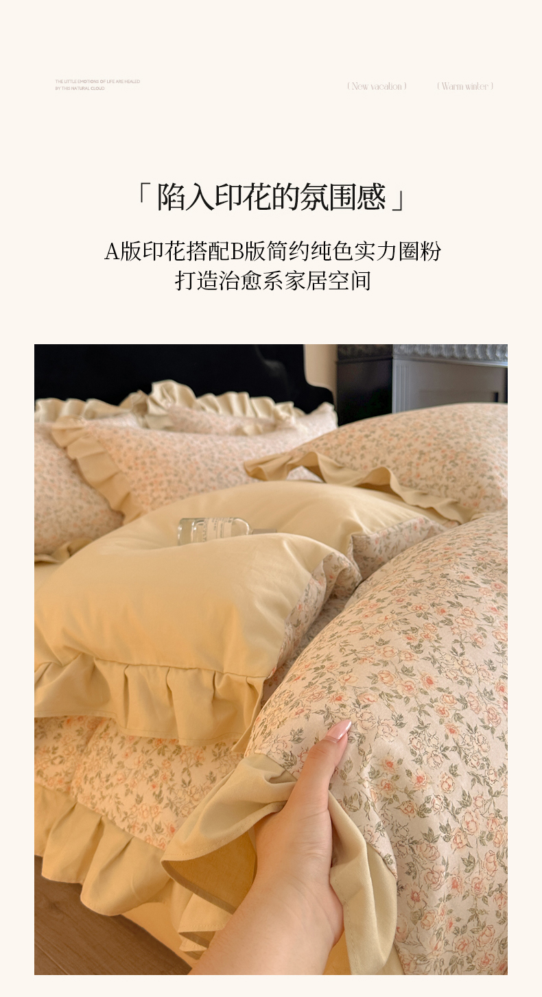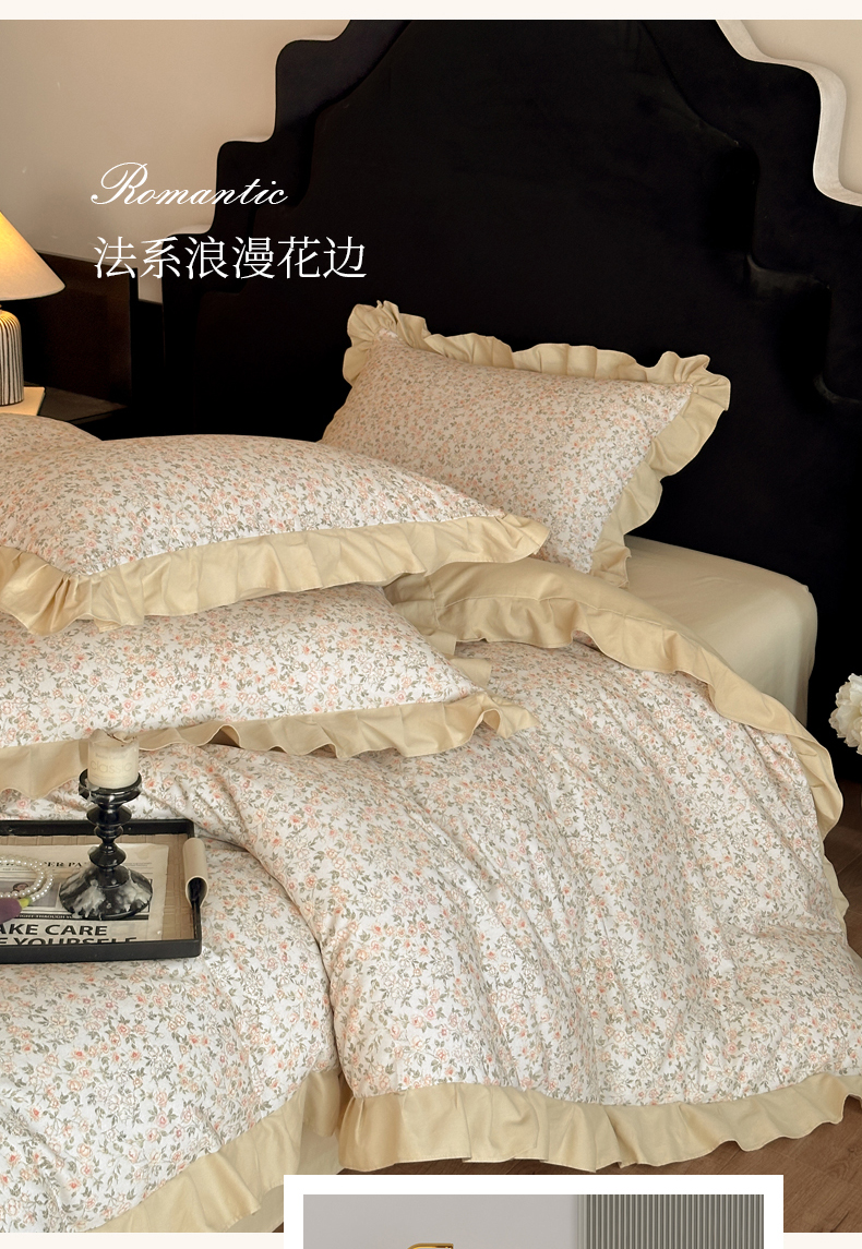 商品名称:慕晨 2025新款秋冬全棉纯棉加厚磨毛法式花边数码印简奢高级公主风四件套直播热卖 浪漫人生