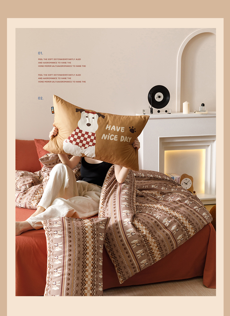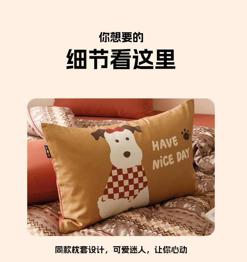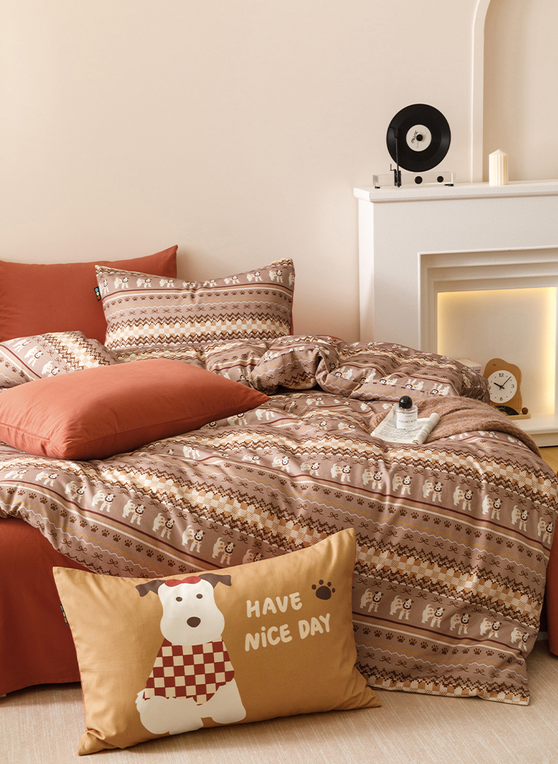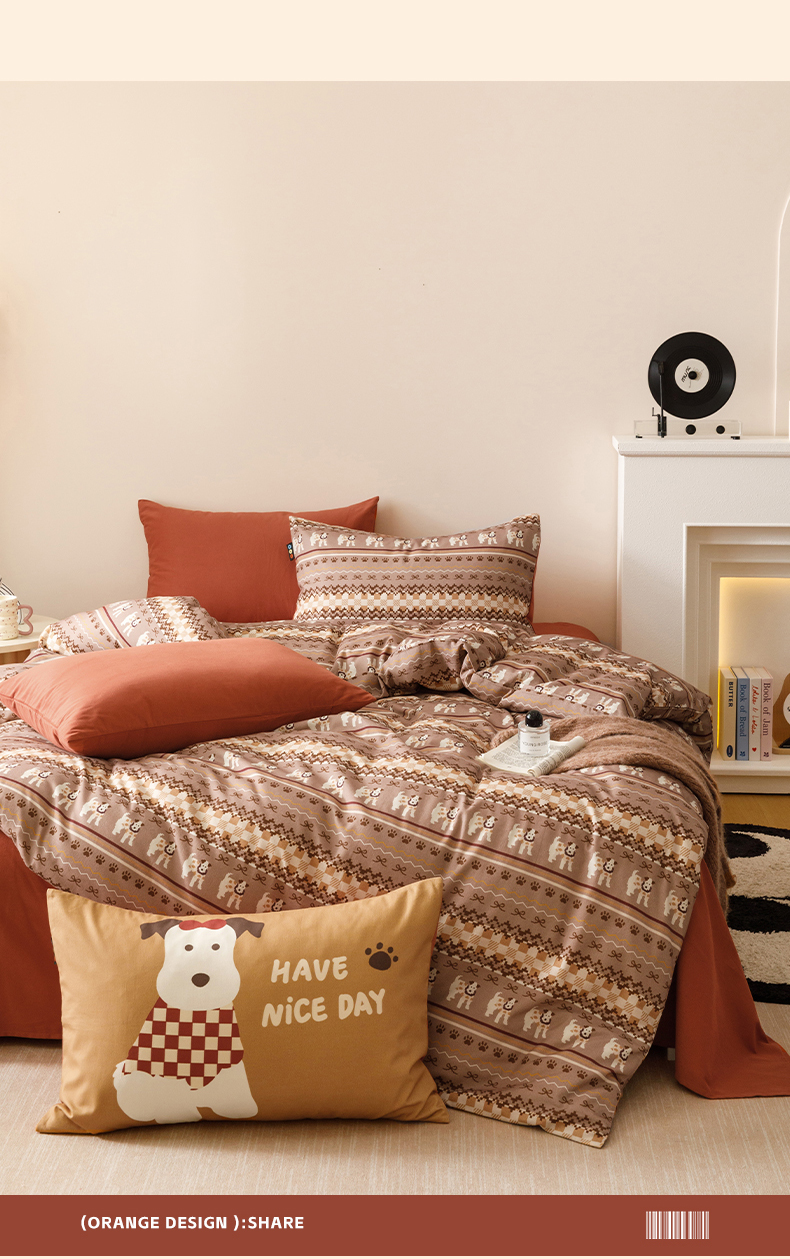 当前位置: 91家纺网 > 商品网购 > 床品套件 > 四件套 > 磨毛活性四件套 > RYB红黄兰 2025新款费尔岛系全棉纯棉加厚磨毛数码印花四件套 费尔岛小犬橘