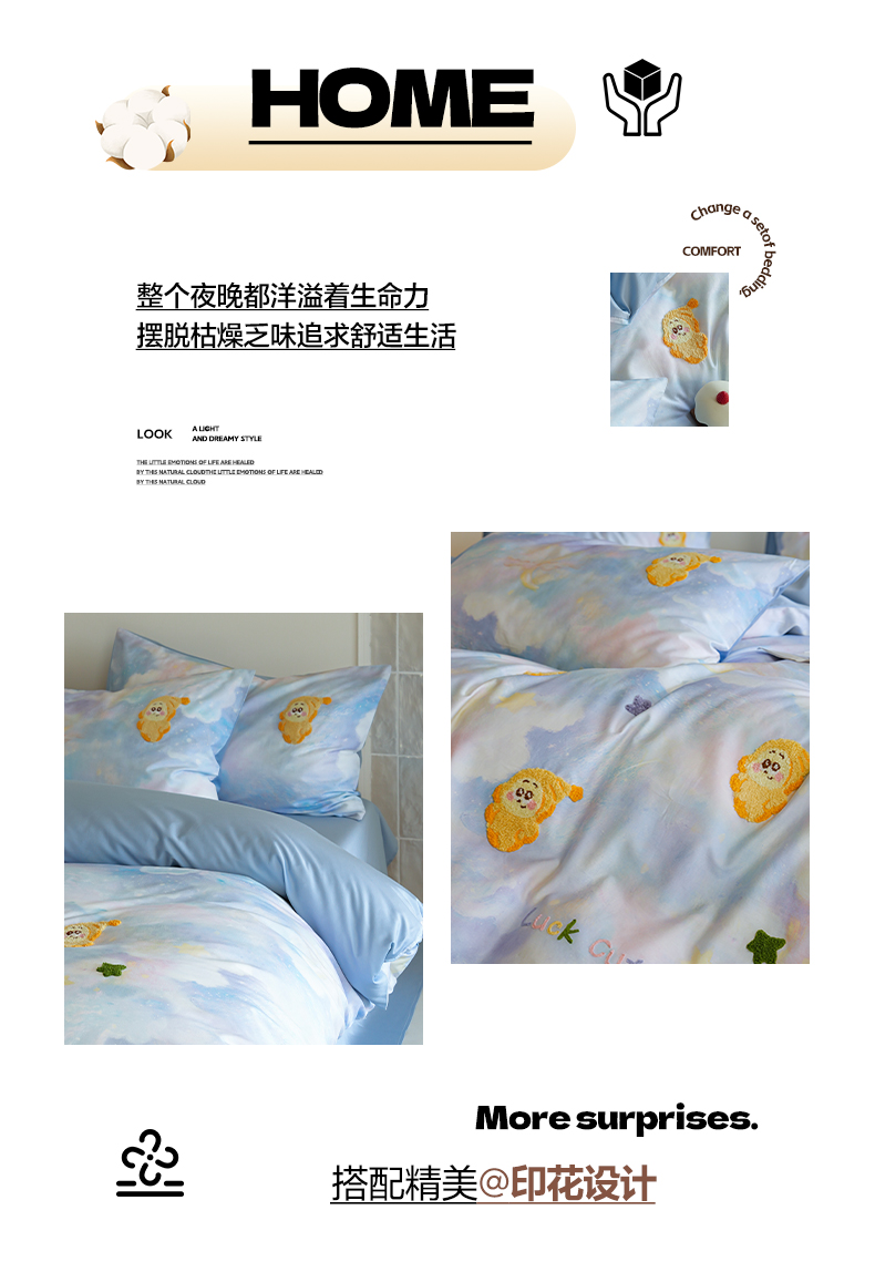 (总)雅居纺家纺 2022新款13070全棉印花四件套,波纹,多彩,简笔画,莓关系,奶油绿豹纹,倾心,数字