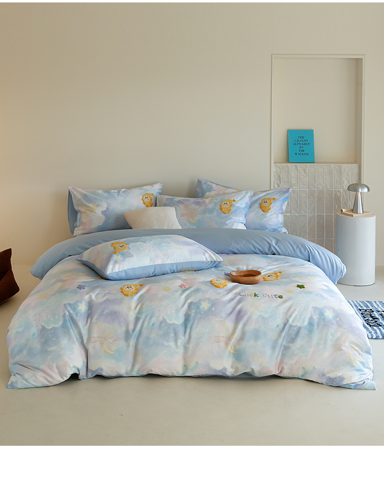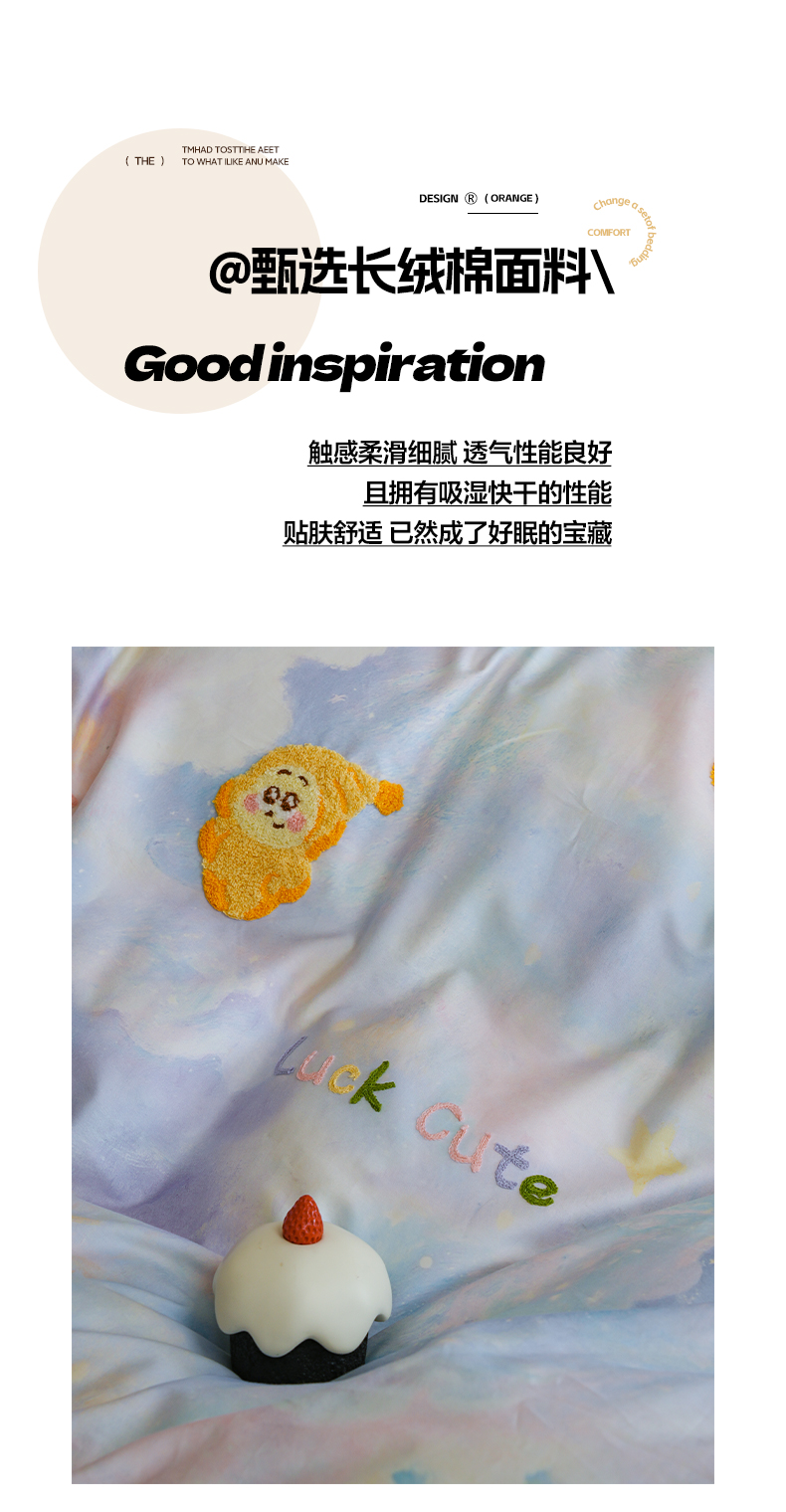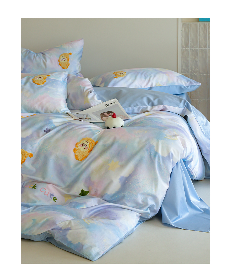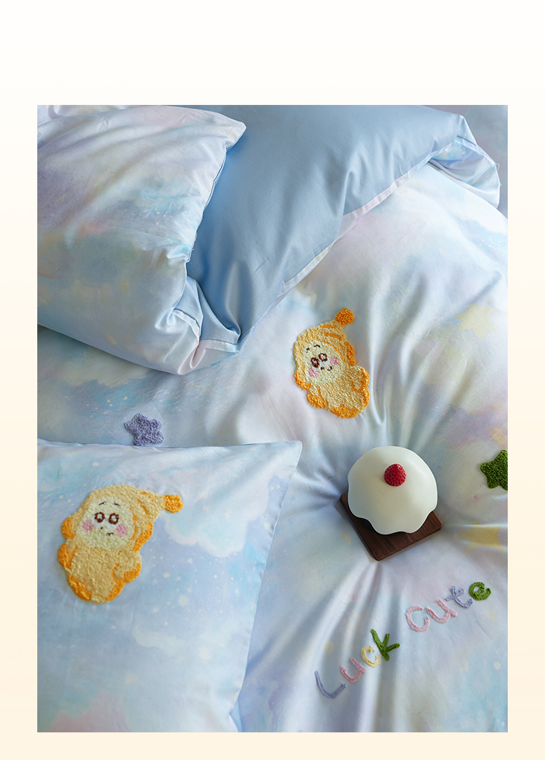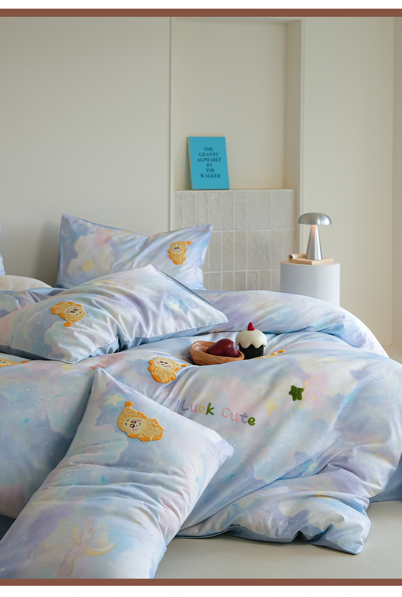 (总)雅居纺家纺 2026新款50长绒棉满版绣花四件套,爱心柿柿如意,爱心西红柿,蓝色猫咪,满天星