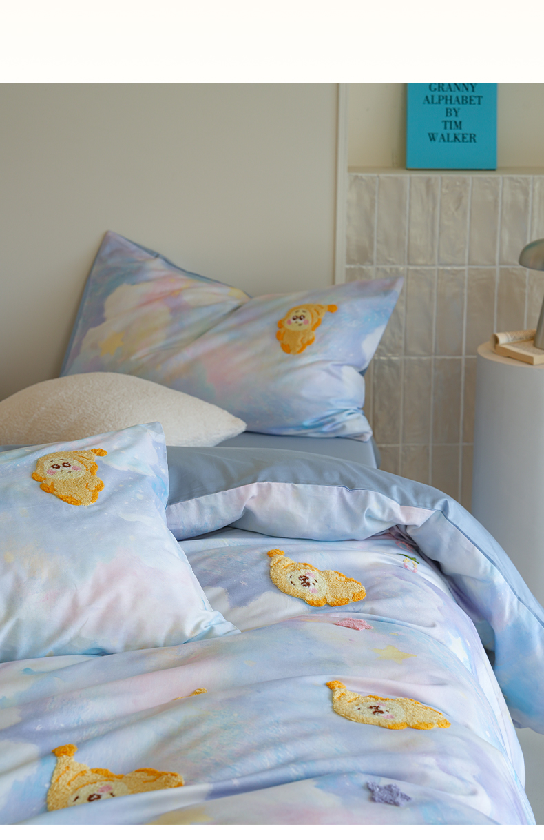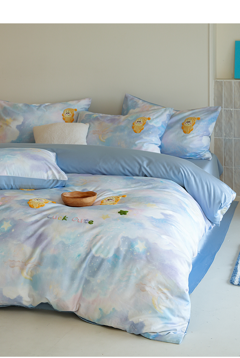 雅居纺家纺 2026新款50长绒棉满版绣花四件套 满天星