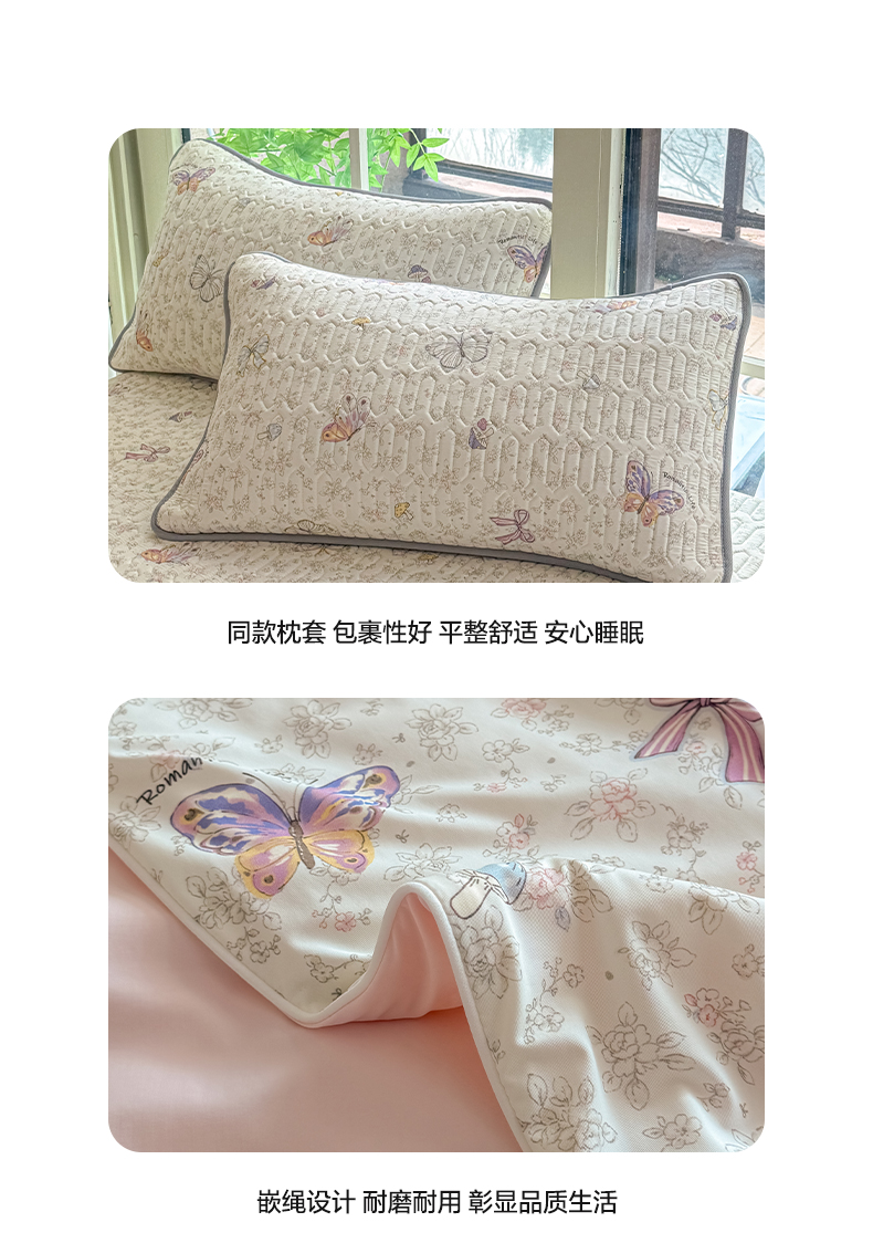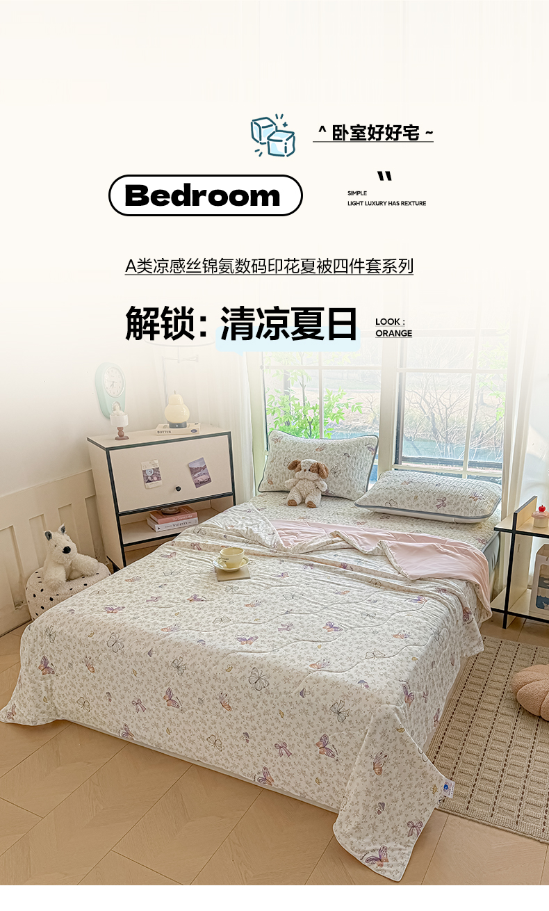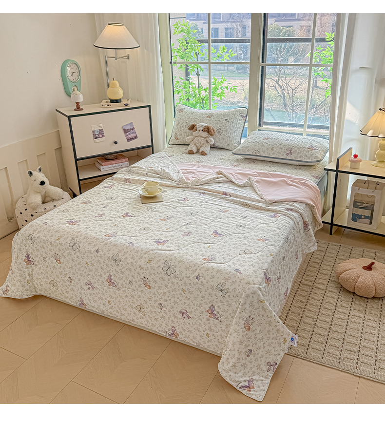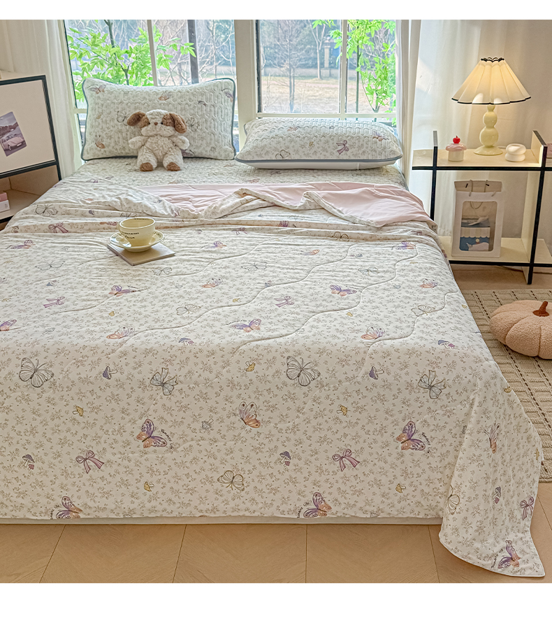 当前位置: 91家纺网 > 商品网购 > 床品套件 > 四件套 > 夏被四件套 > 莱登卡奴 2026新款新款A类凉感丝锦氨数码印花夏被四件套 初恋蝶语