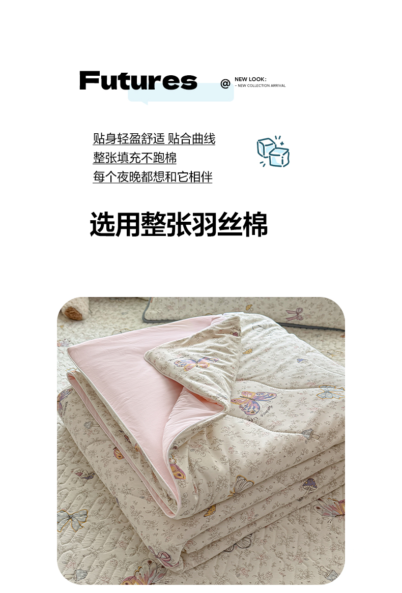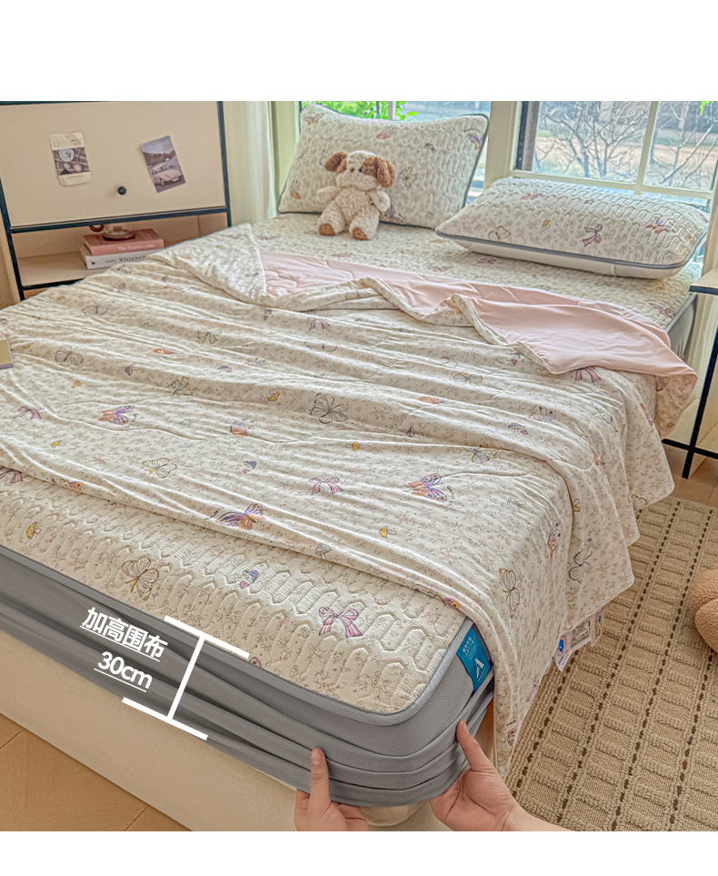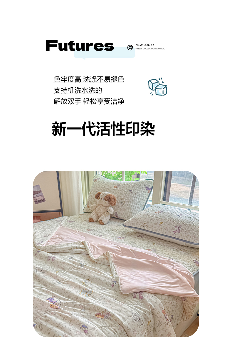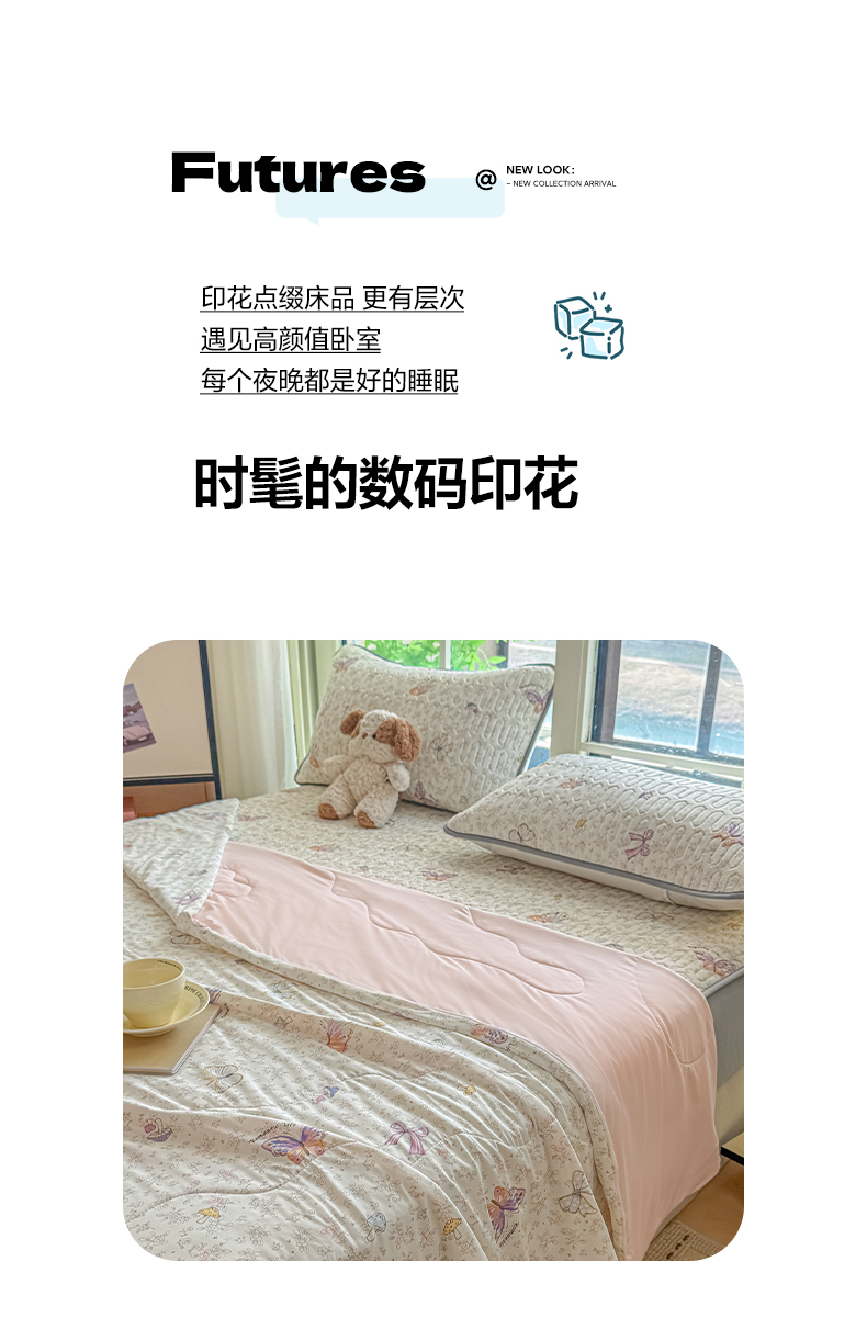 当前位置: 91家纺网 > 商品网购 > 床品套件 > 四件套 > 夏被四件套 > 莱登卡奴 2026新款新款A类凉感丝锦氨数码印花夏被四件套 初恋蝶语