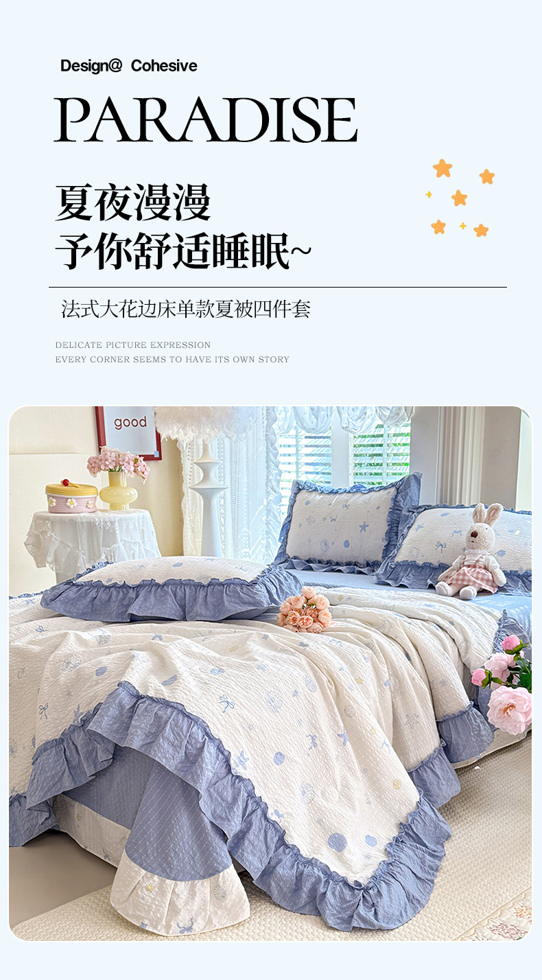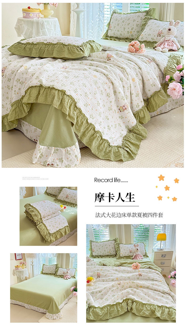 韩约家纺 2026新款法式大花边泡芙棉床单款夏凉被空调被被套四件套 花涧