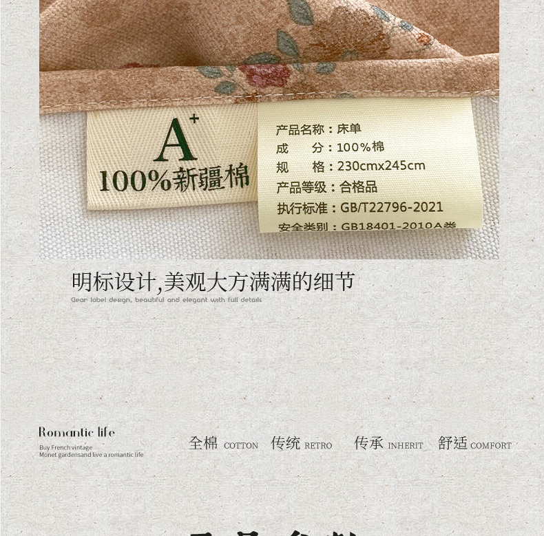 230x245cm单床单+枕套一对