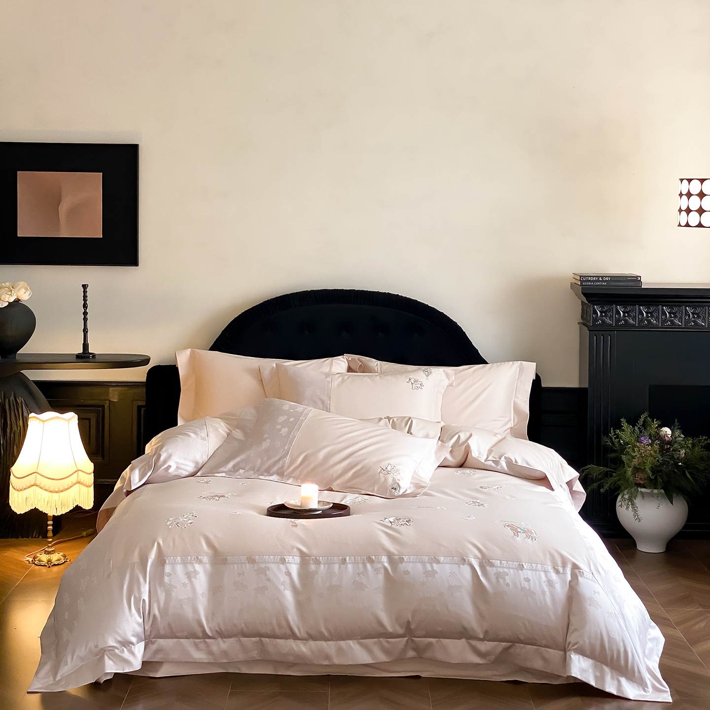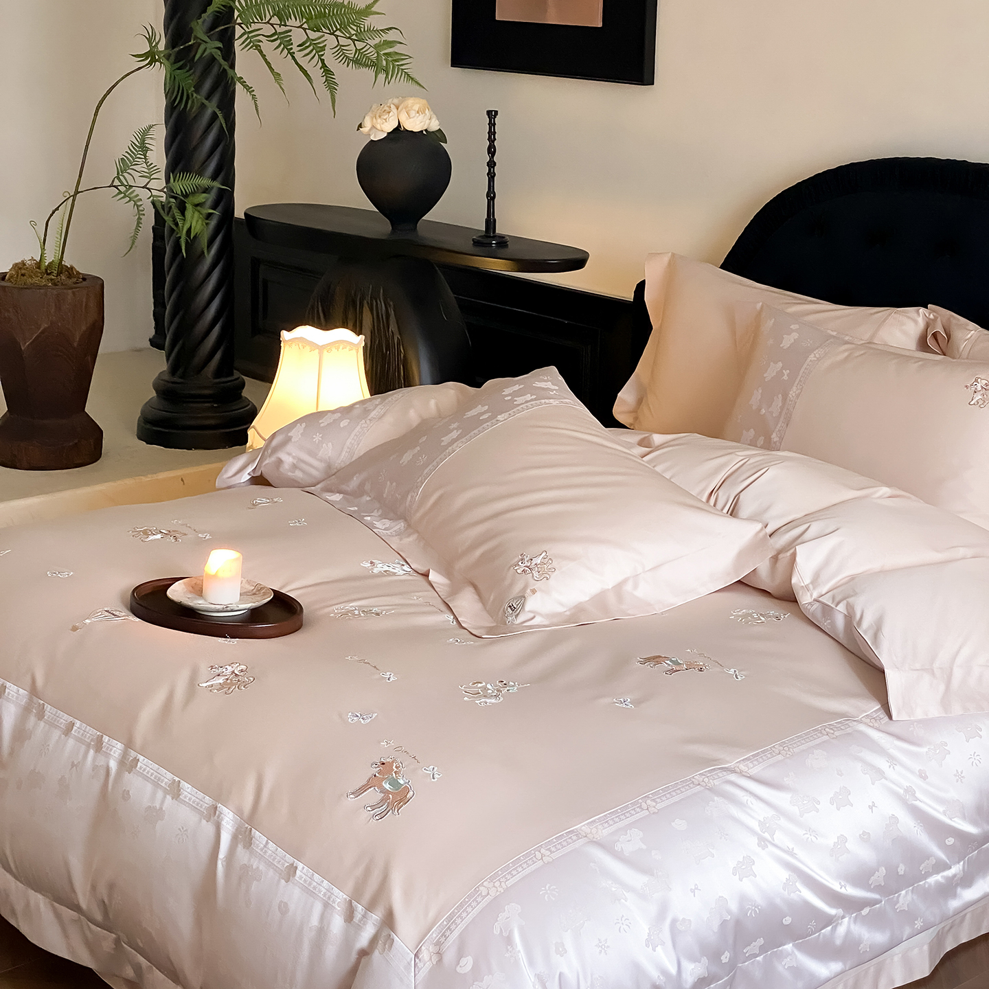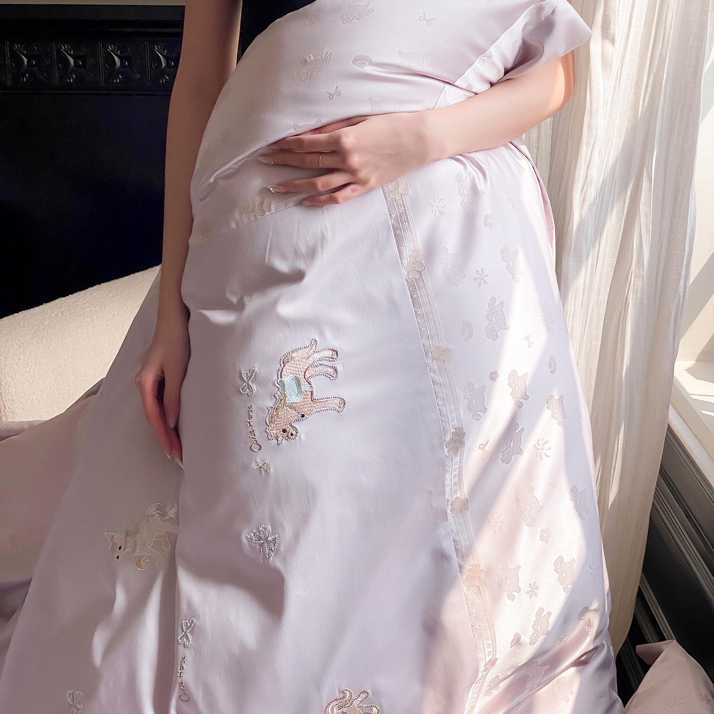 (总)太古汇家居 2026新款高精密拼接+绣花四件套-“甜心小马”系列,甜心小马-甜心粉,甜心小马-香槟米,甜心小马-优雅紫