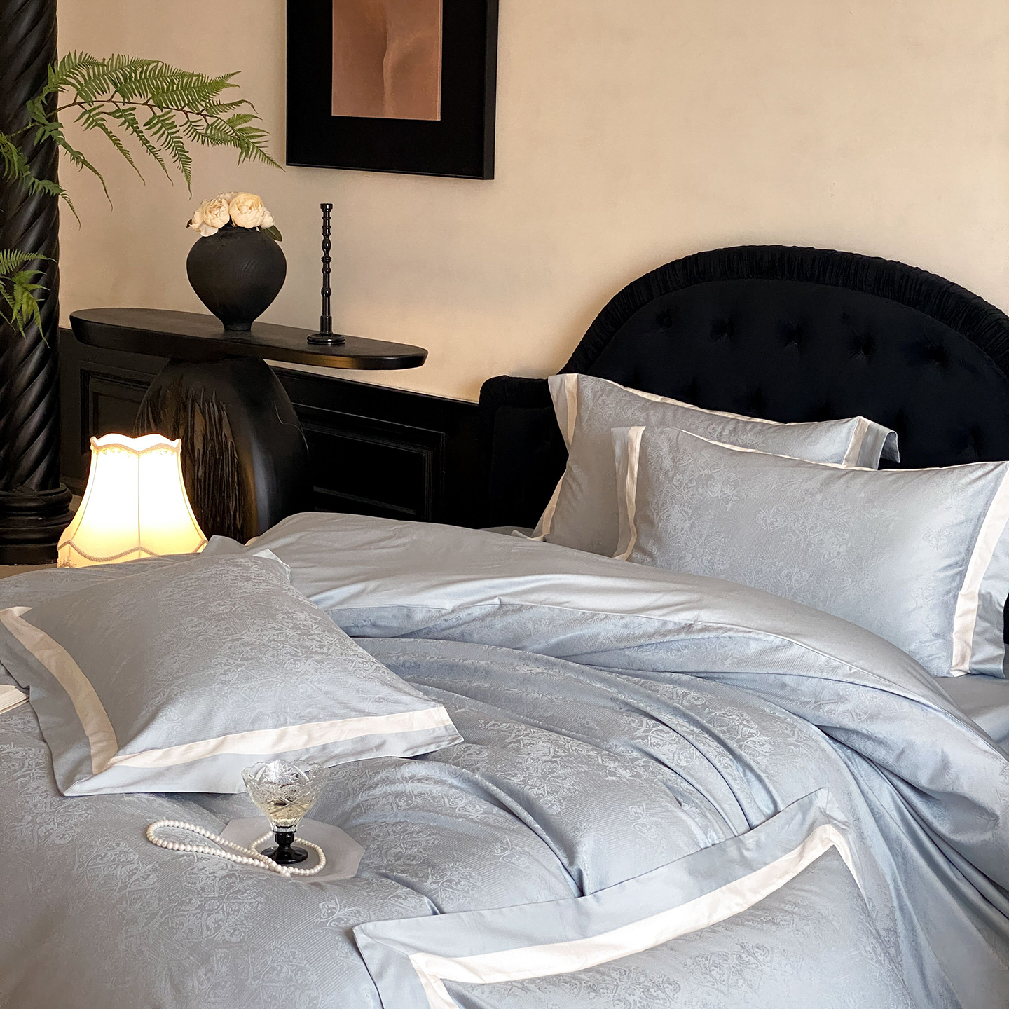 (总)太古汇家居 2026新款全棉提花“凡尔赛”系列四件套,凡尔赛-浅奶油,凡尔赛-天空蓝,凡尔赛-香草粉