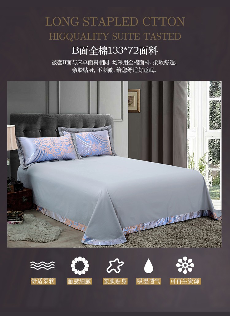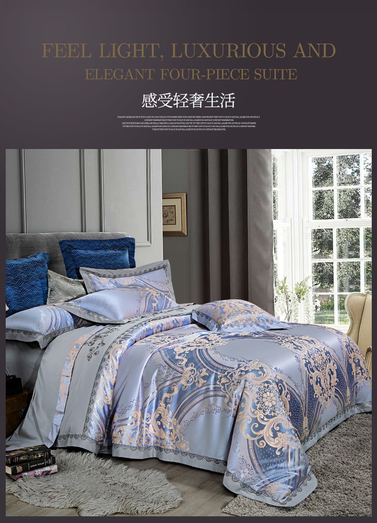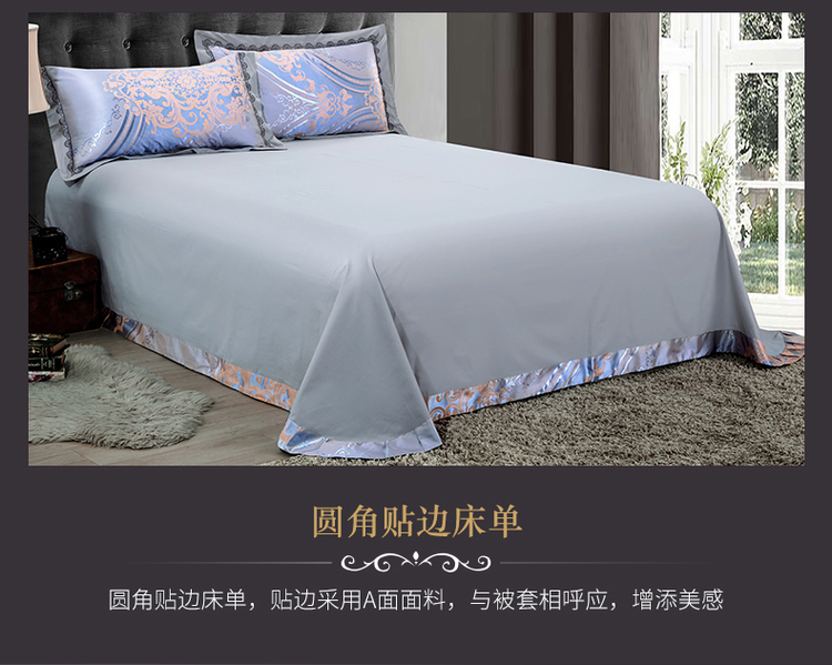 柔觉家纺 天丝刺绣贡缎提花全棉四件套,水汐-绸缎兰