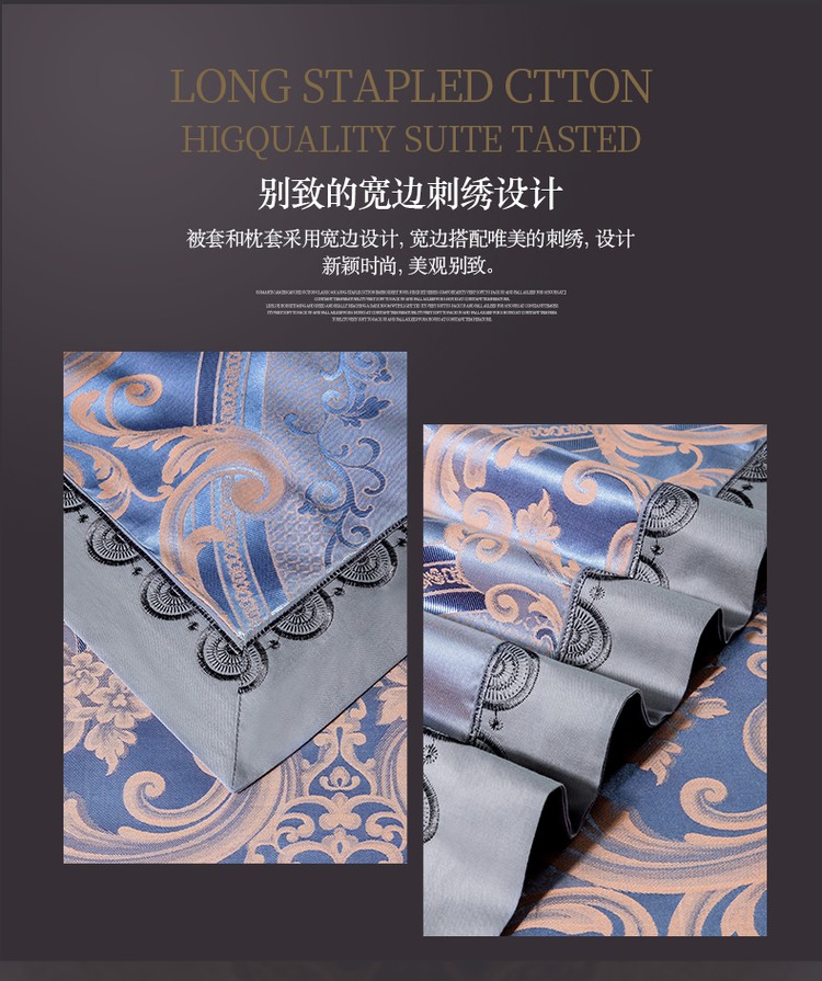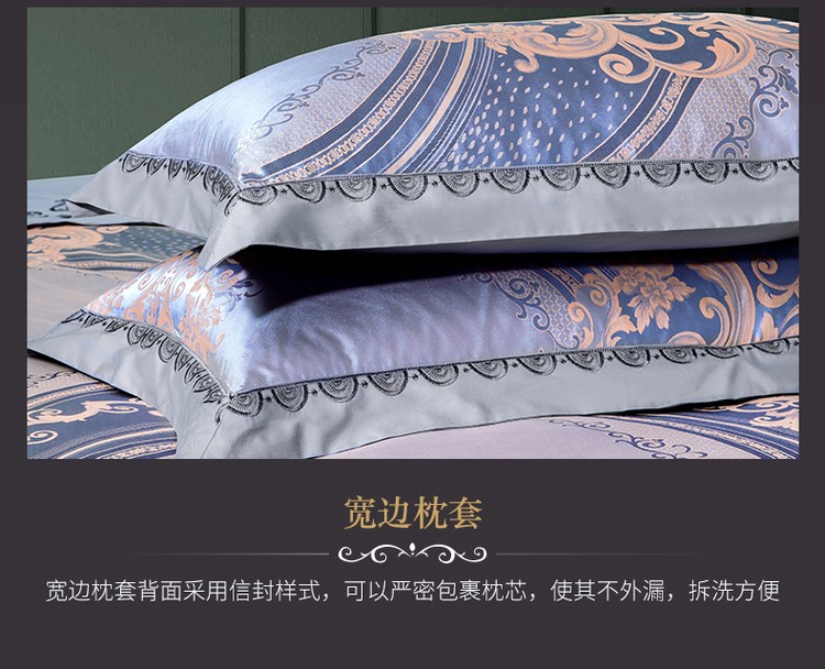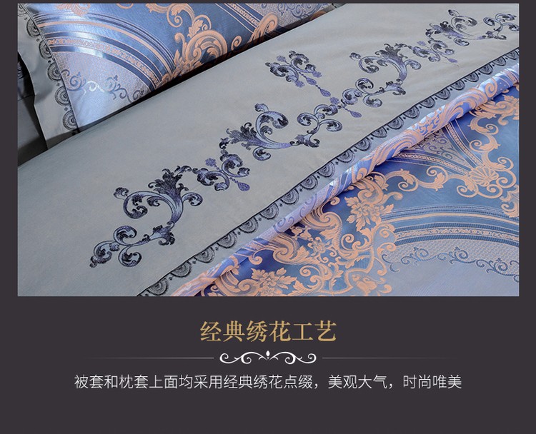 柔觉家纺 天丝刺绣贡缎提花全棉四件套,柔梦-海蓝