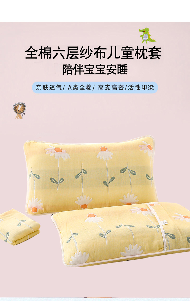 (总)朴尔 2022新款全棉卡通六层纱布儿童枕套