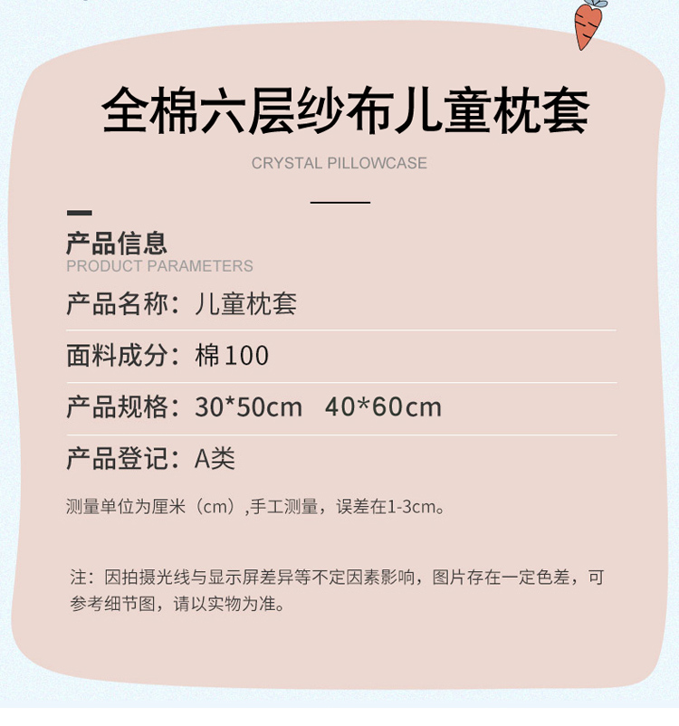 商品名称:(总)朴尔 2022新款全棉卡通六层纱布儿童枕套