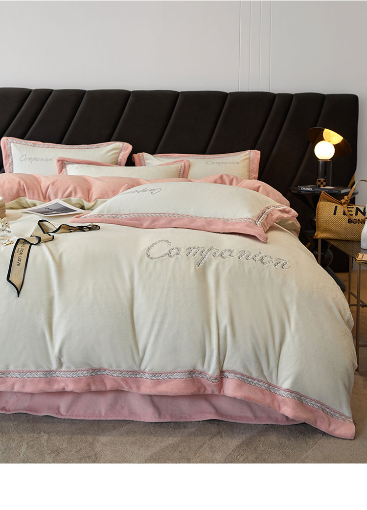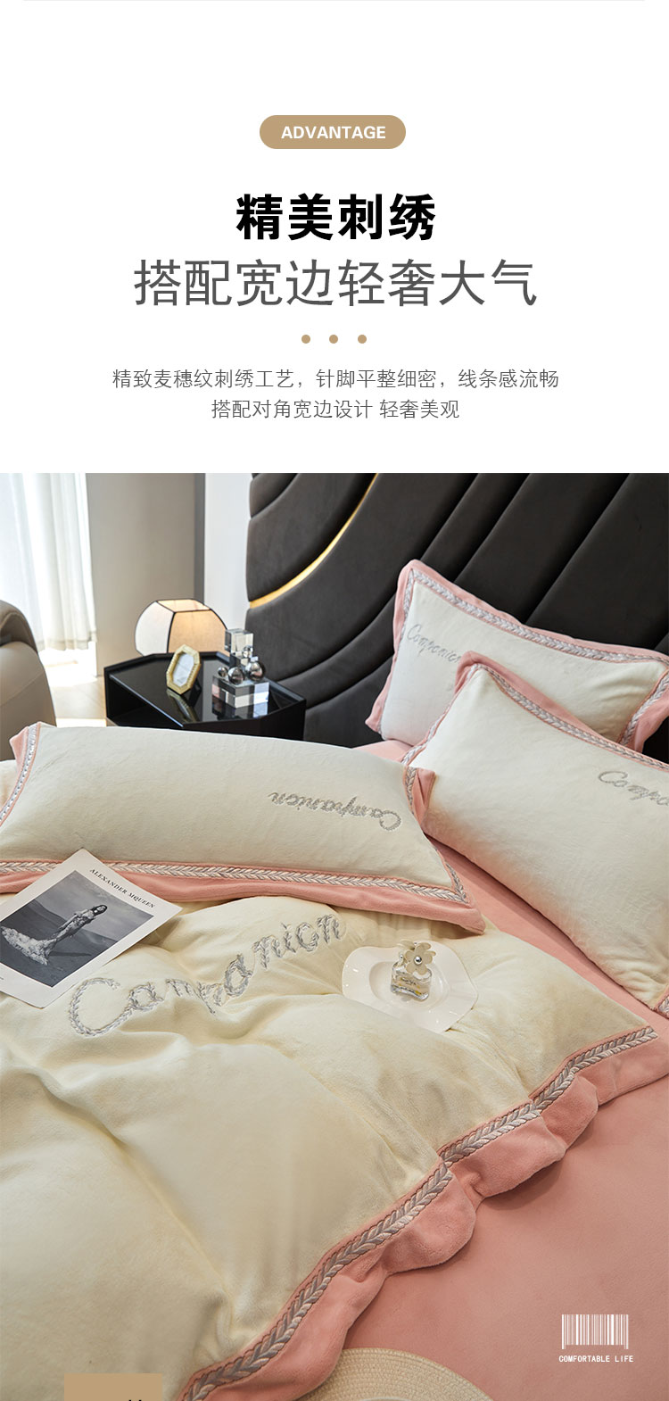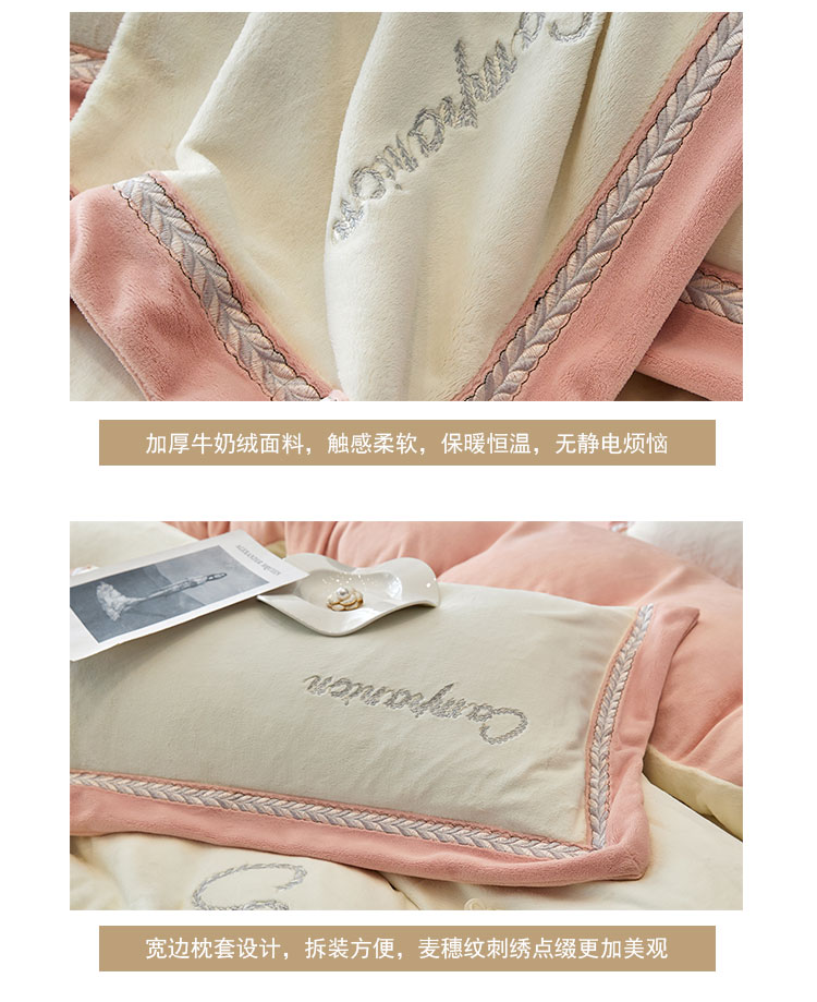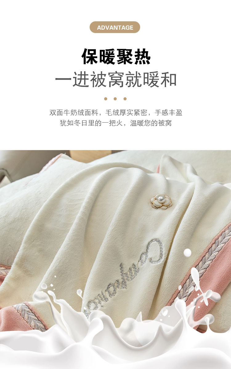 安妮 新品A类高克重250克升级版牛奶绒四件套-轻颜 奶昔白