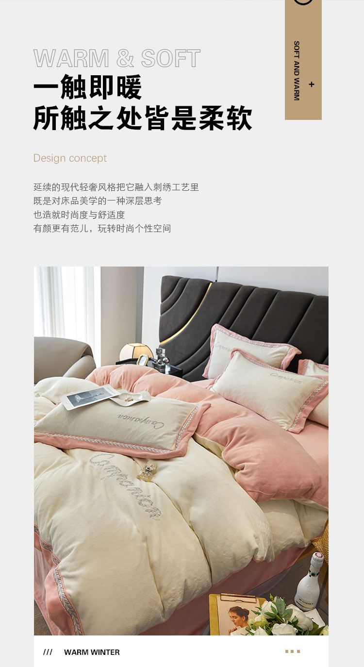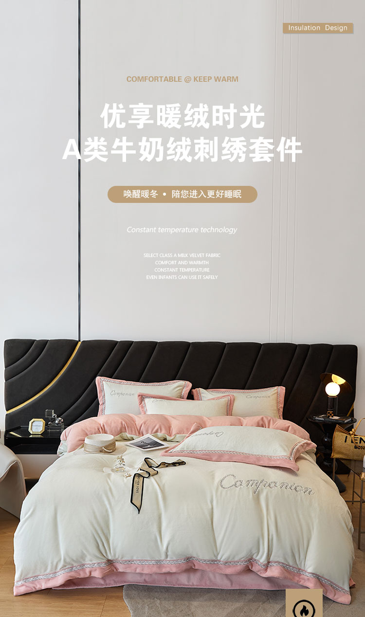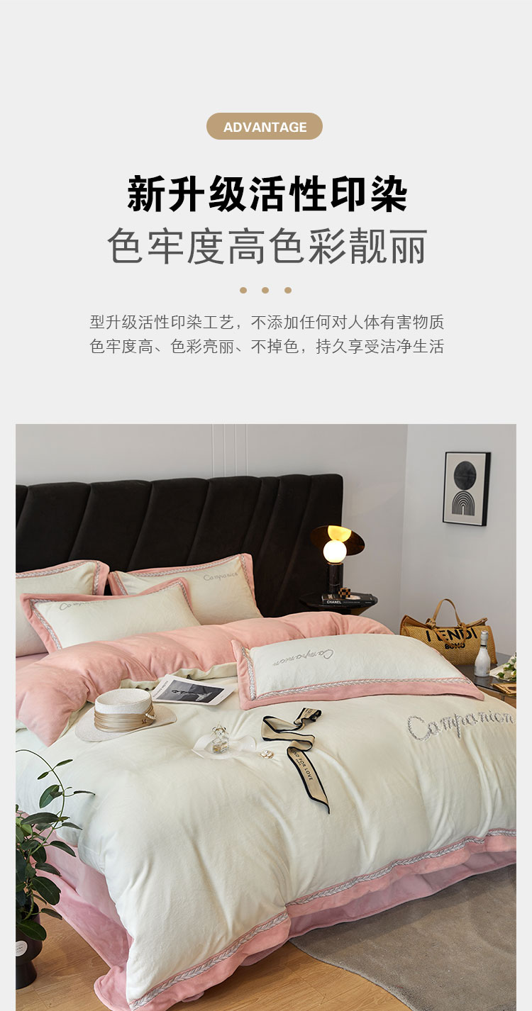 安妮 新品A类高克重250克升级版牛奶绒四件套-轻颜 奶昔白