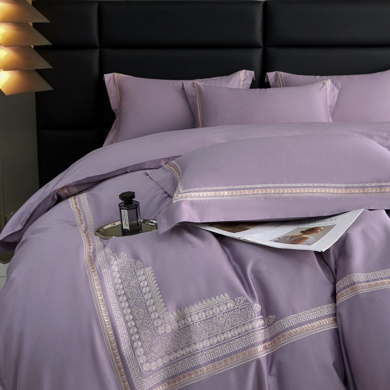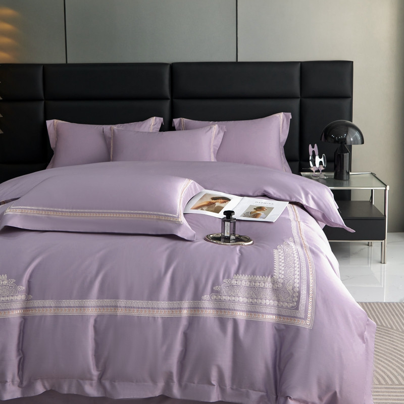 榻尚家居 2023新款格瑞斯系列100贡缎长绒棉四件套工艺款四件套 格瑞斯紫
