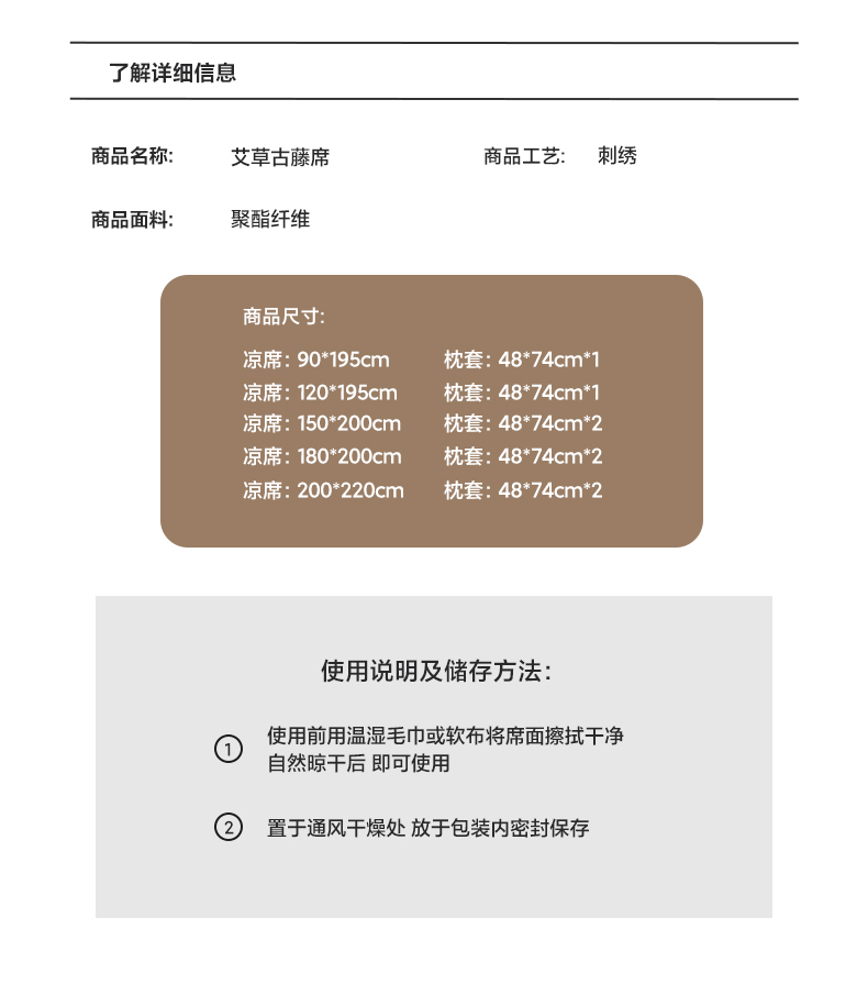 当前位置: 91家纺网 > 商品网购 > 床上用品 > 凉席 > 冰丝席 > (总)席佬大 2025新款艾草古藤宽边绣花冰丝席