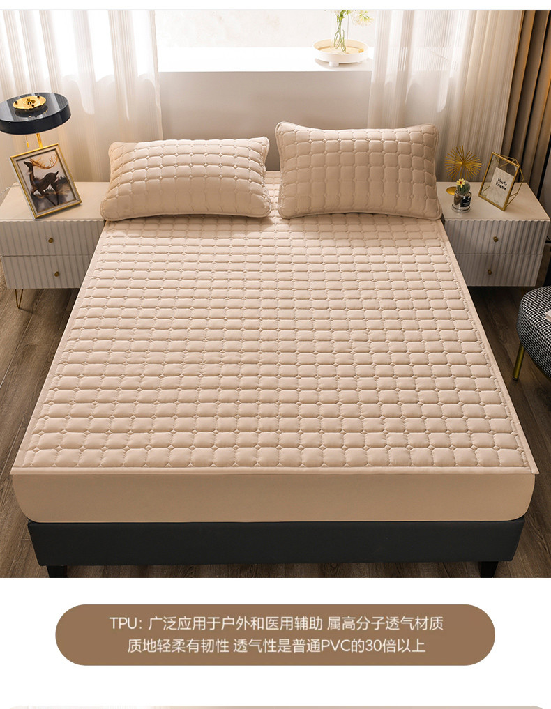商品名称:恋绒 2023新款A类升级款防水床垫隔尿床护垫床褥子软垫床垫保护罩 防水款-浅驼色