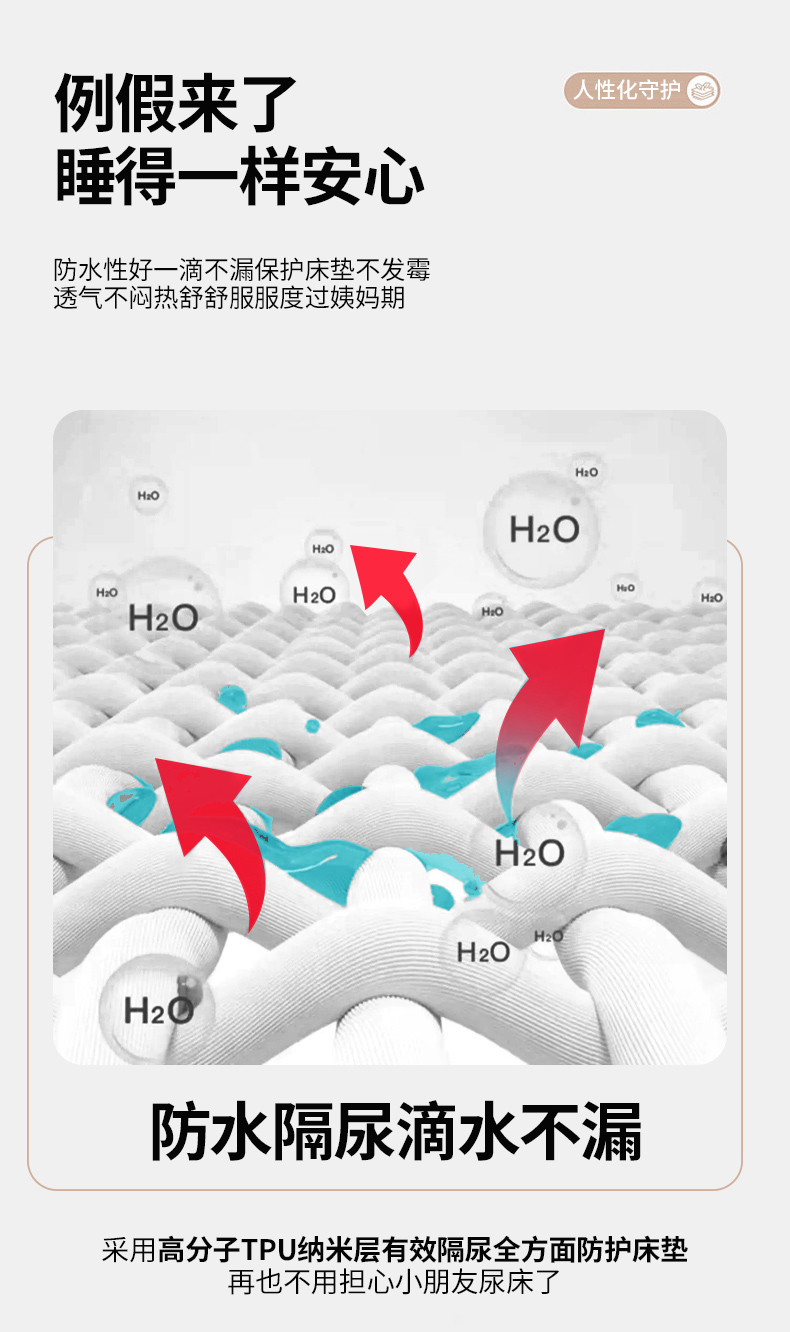 恋绒 2023新款A类升级款防水床垫隔尿床护垫床褥子软垫床垫保护罩 防水款-浅驼色