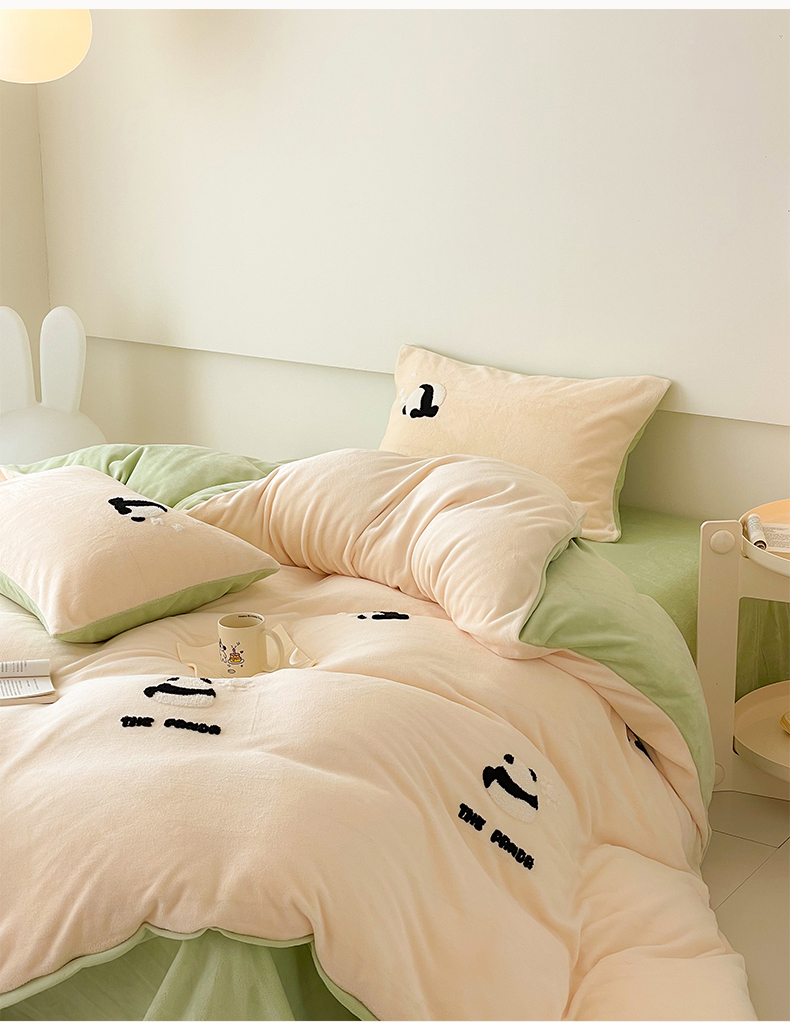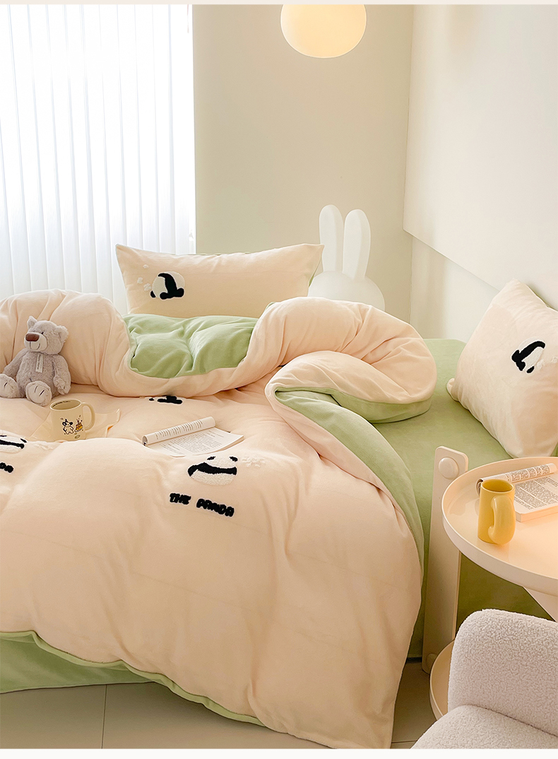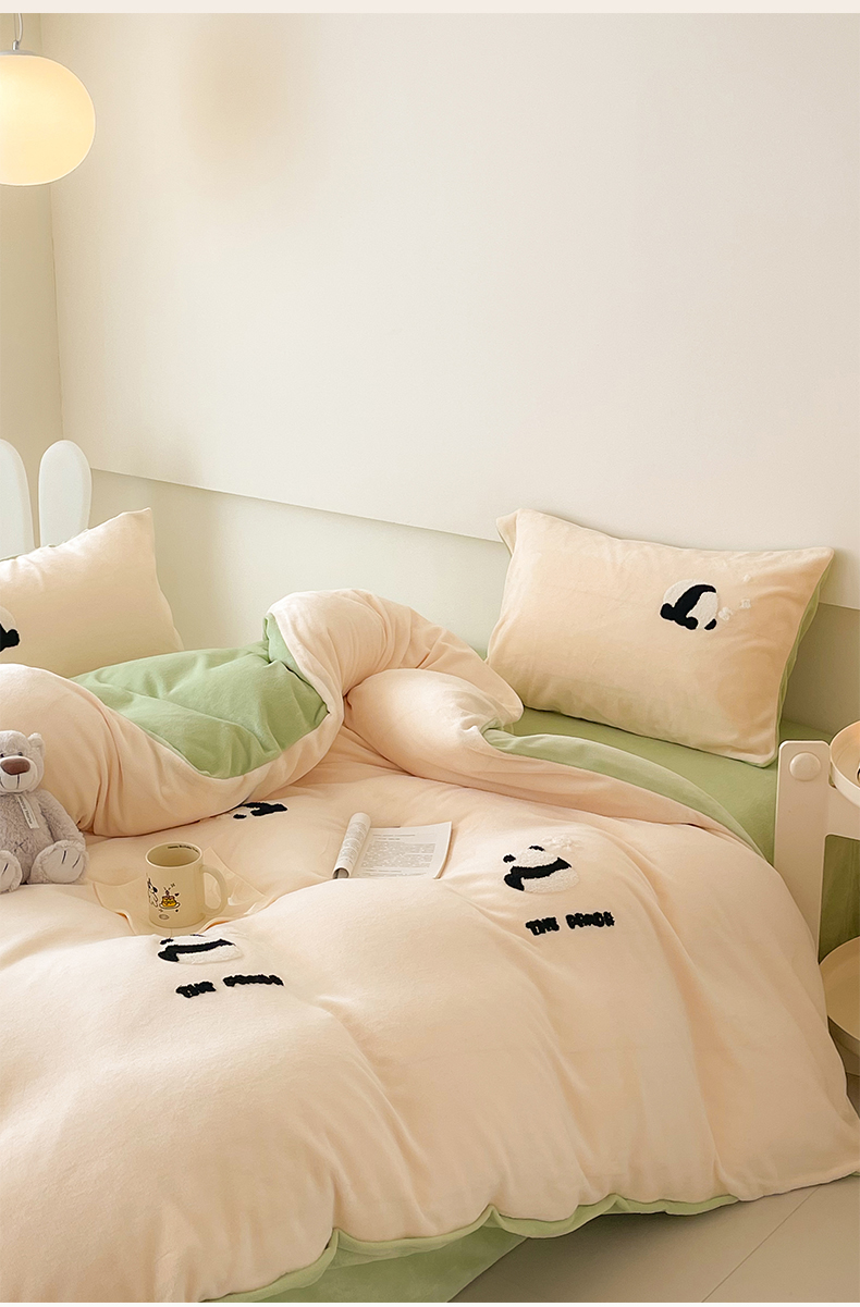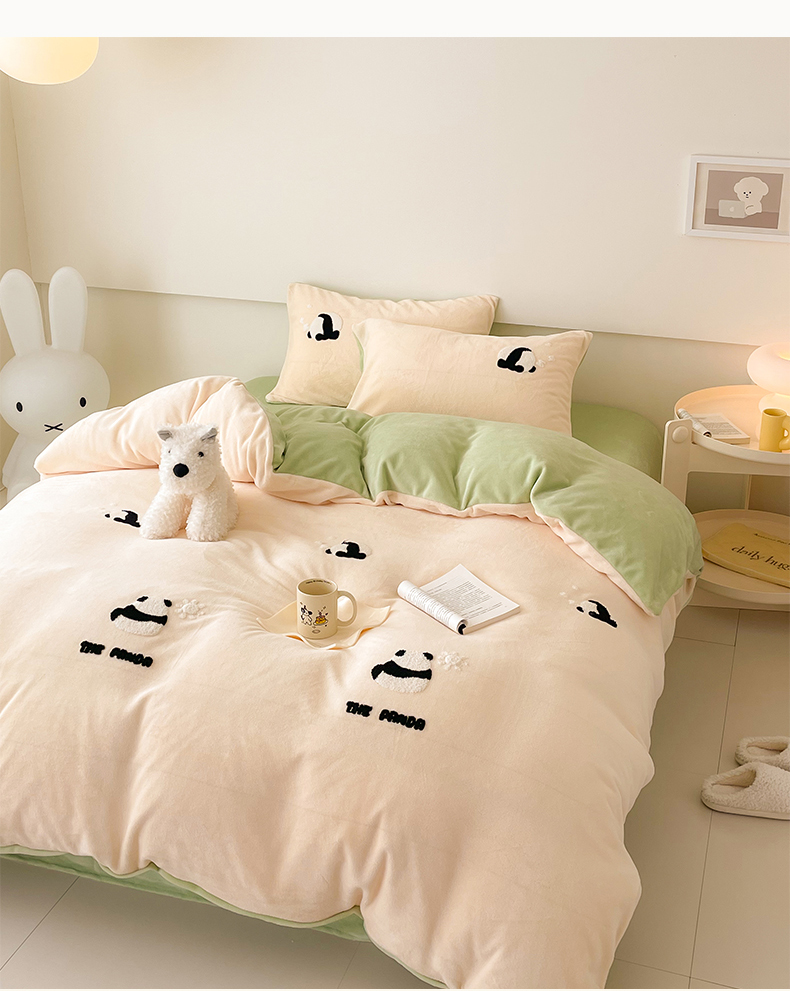 (总)沐棉 2024新款纯色牛奶绒毛巾绣款四件套,彩色蝴蝶,嘟嘟鱼,开心派对-咖,开心派对-兰,快乐圣诞-绿,快乐圣诞-米,熊猫-灰,熊猫-米