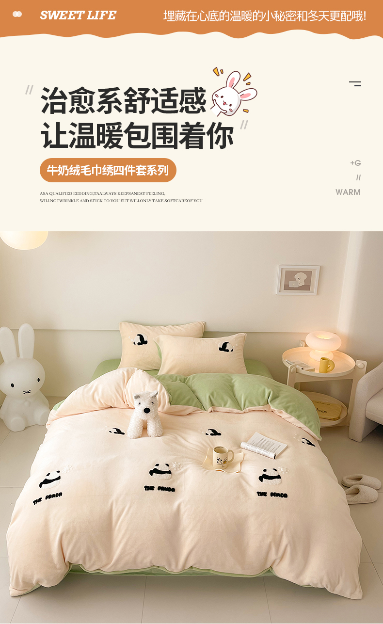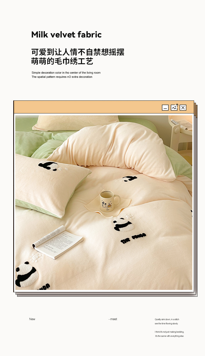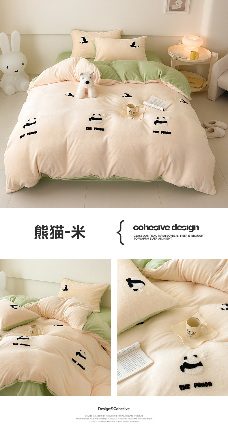 商品名称:沐棉 2023新款高克重牛奶绒毛巾绣四件套 熊猫-米