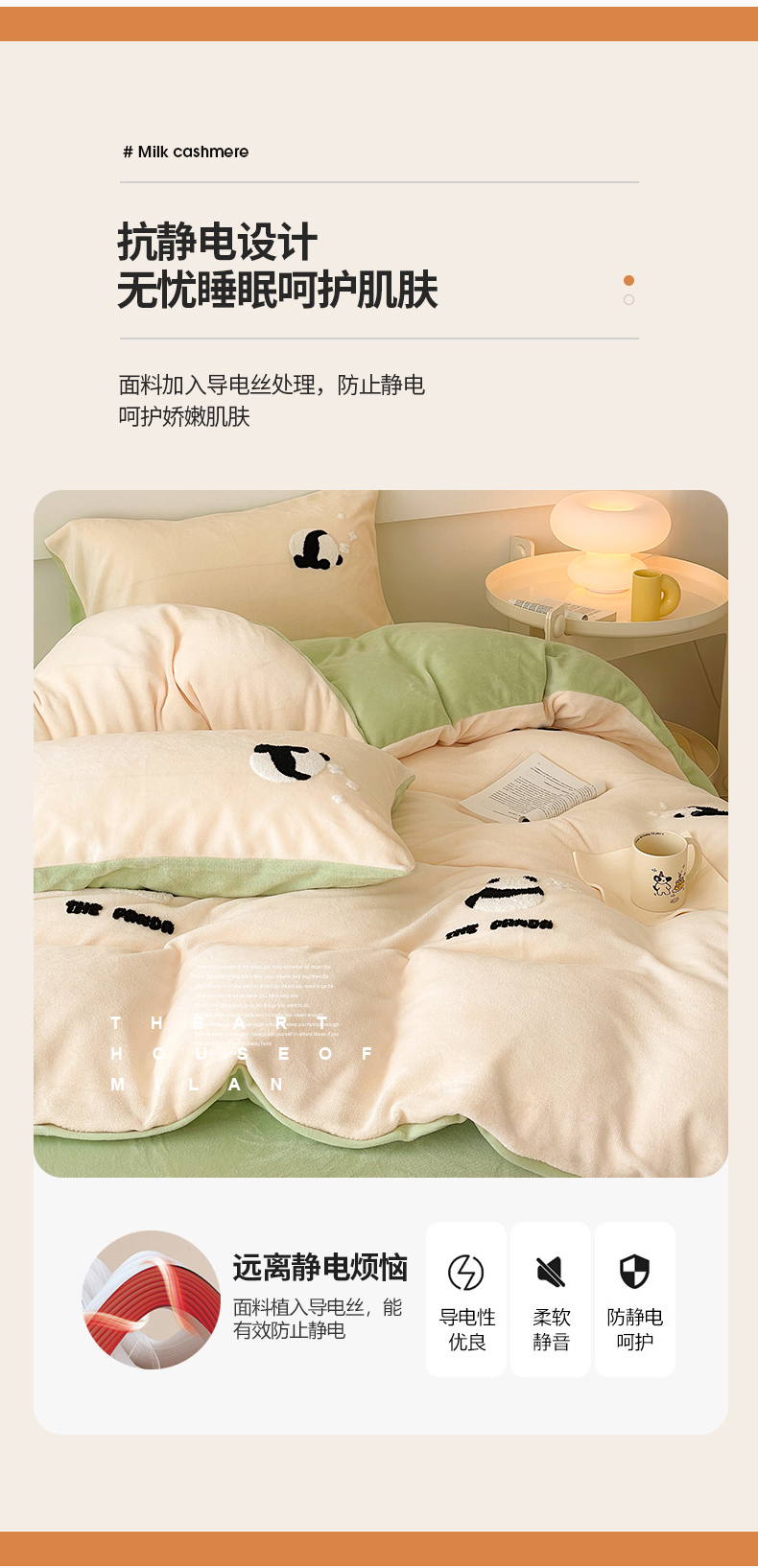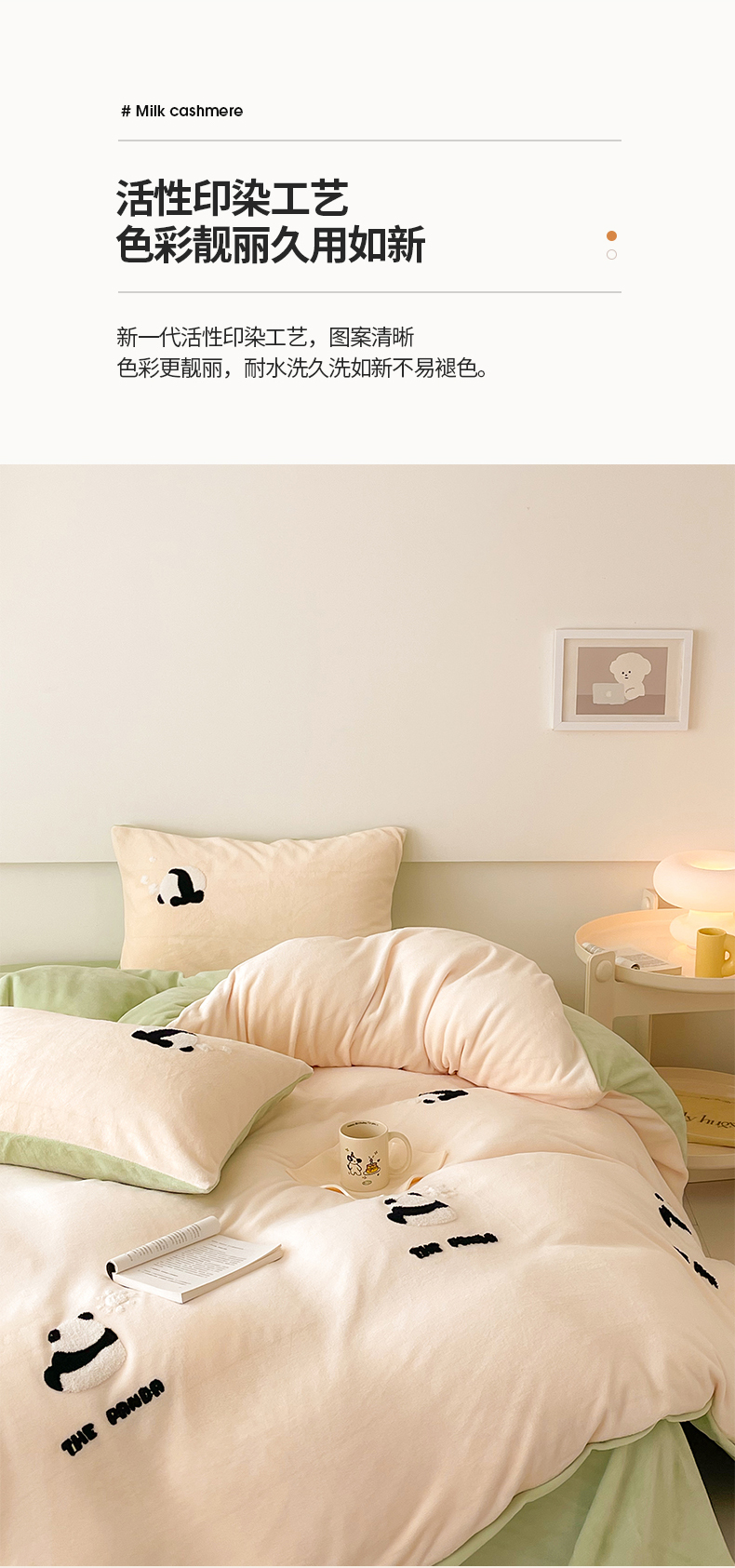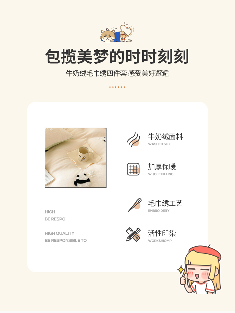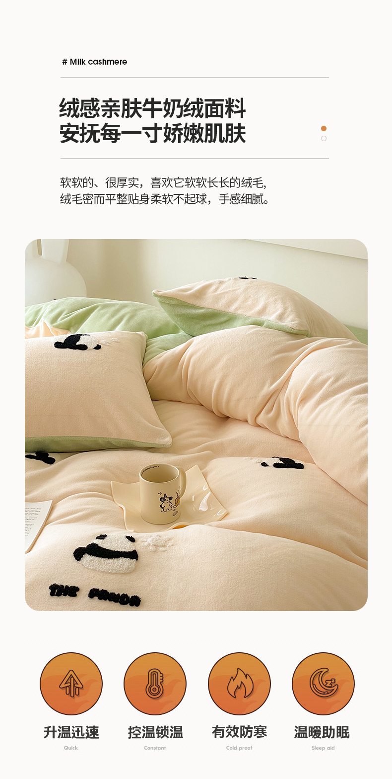 商品名称:沐棉 2023新款高克重牛奶绒毛巾绣四件套 熊猫-米