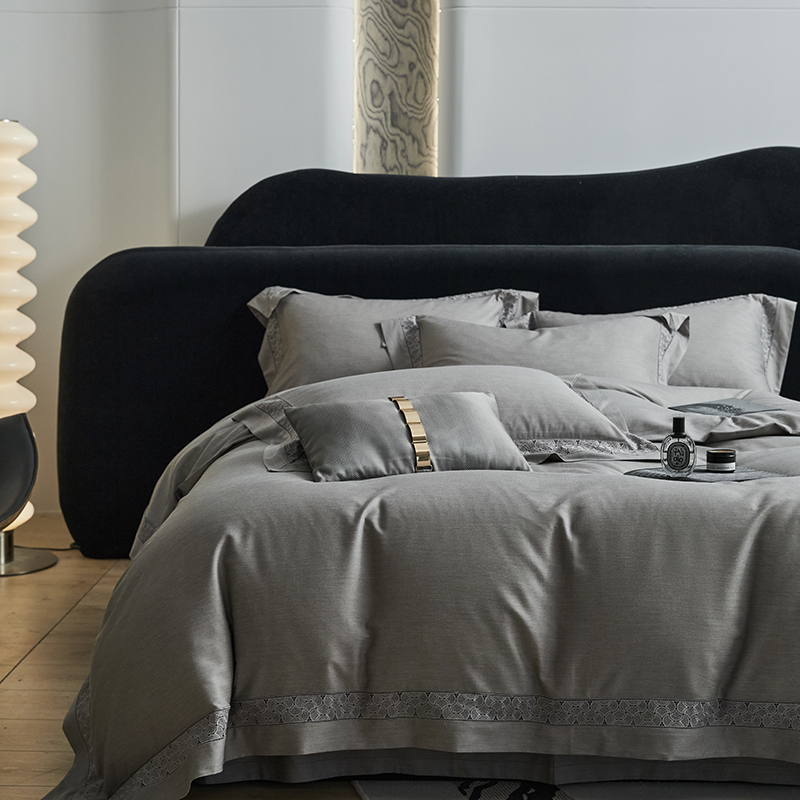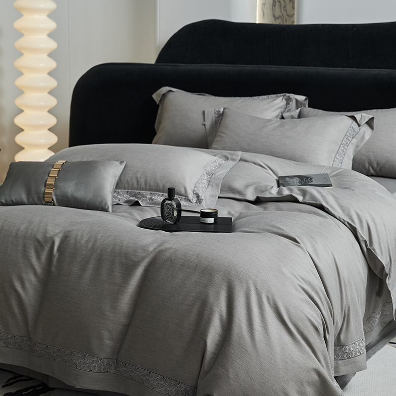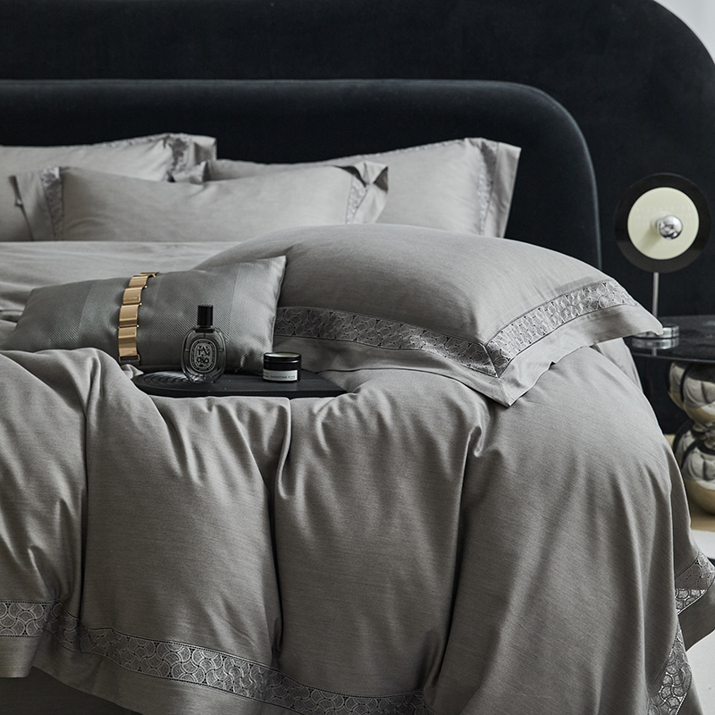 总榻尚家居 2023新款格瑞斯系列100贡缎长绒棉四件套工艺款四件套,格瑞斯紫,格瑞斯白,格瑞斯灰,格瑞斯蓝