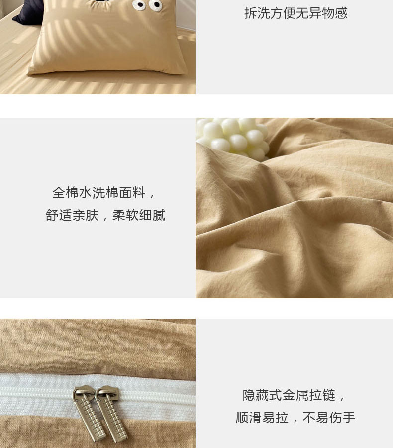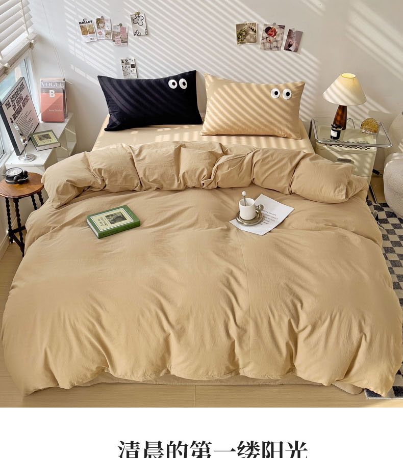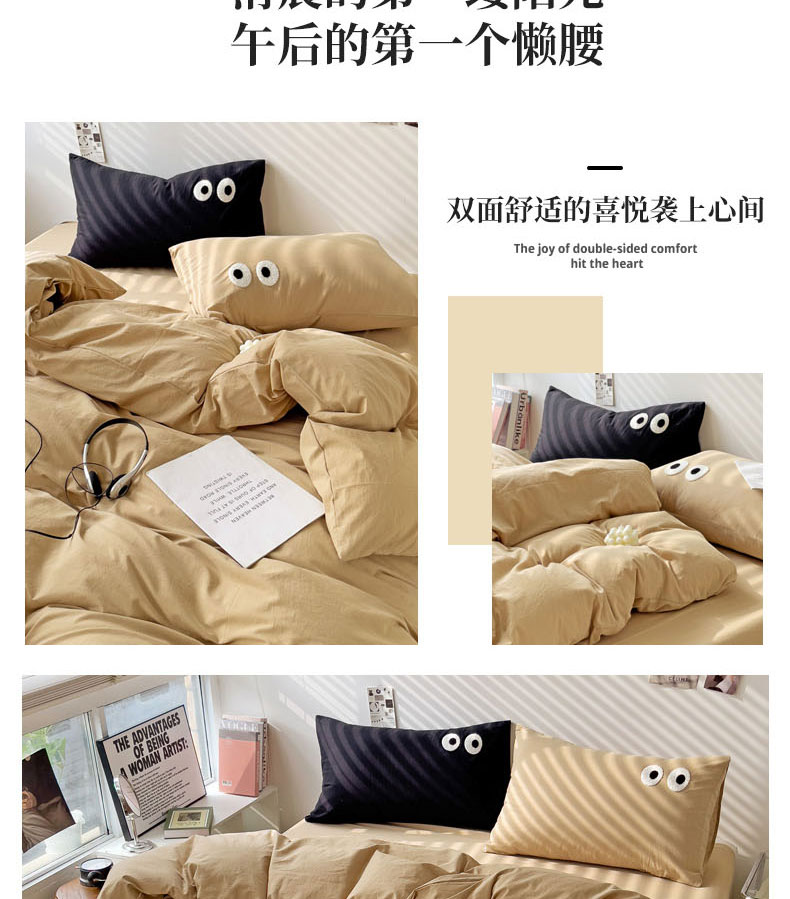 当前位置: 91家纺网 > 商品网购 > 床品套件 > 四件套 > 全棉普通四件套 > 梦家居 2024新款全棉水洗棉四件套-大眼睛系列 浅咖色