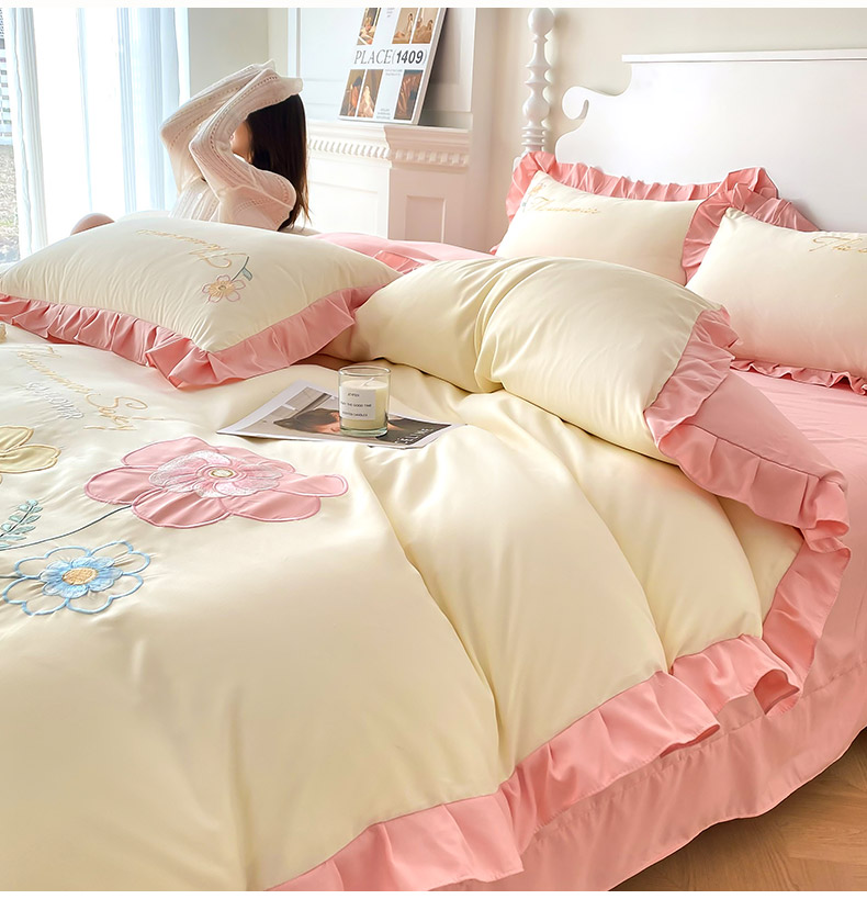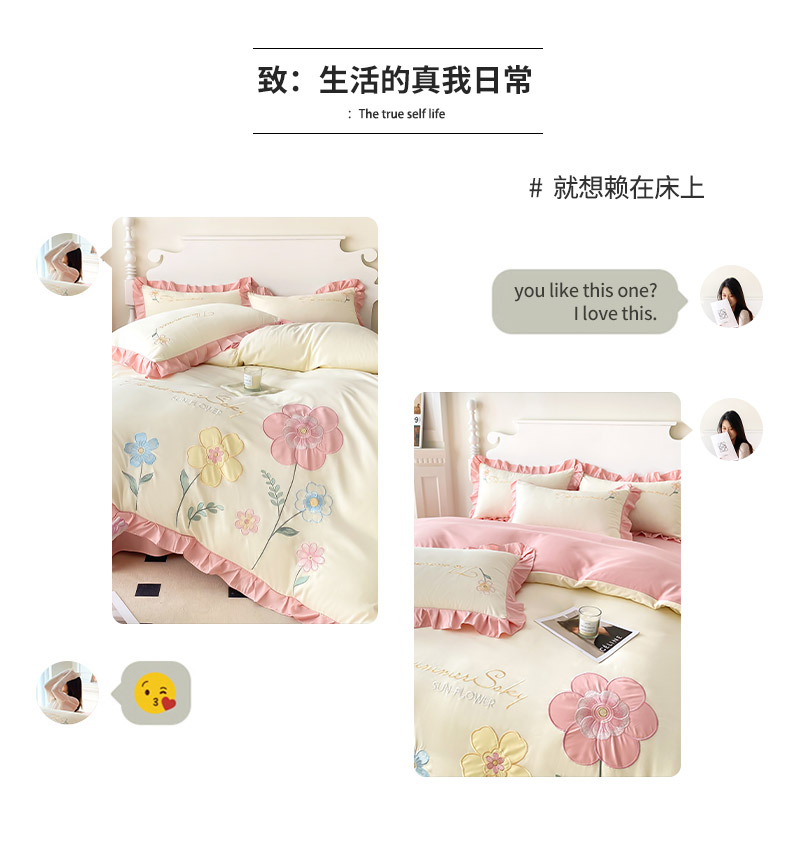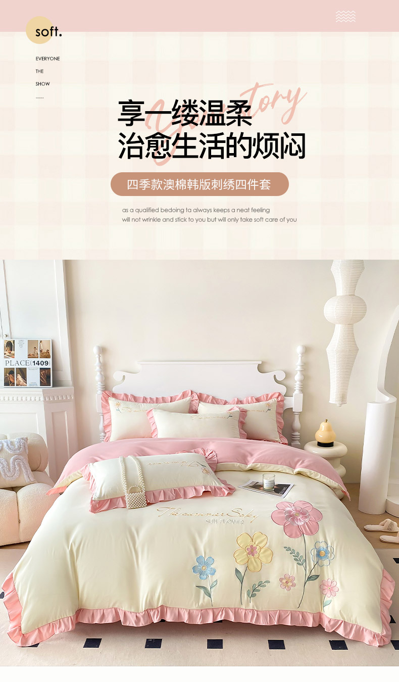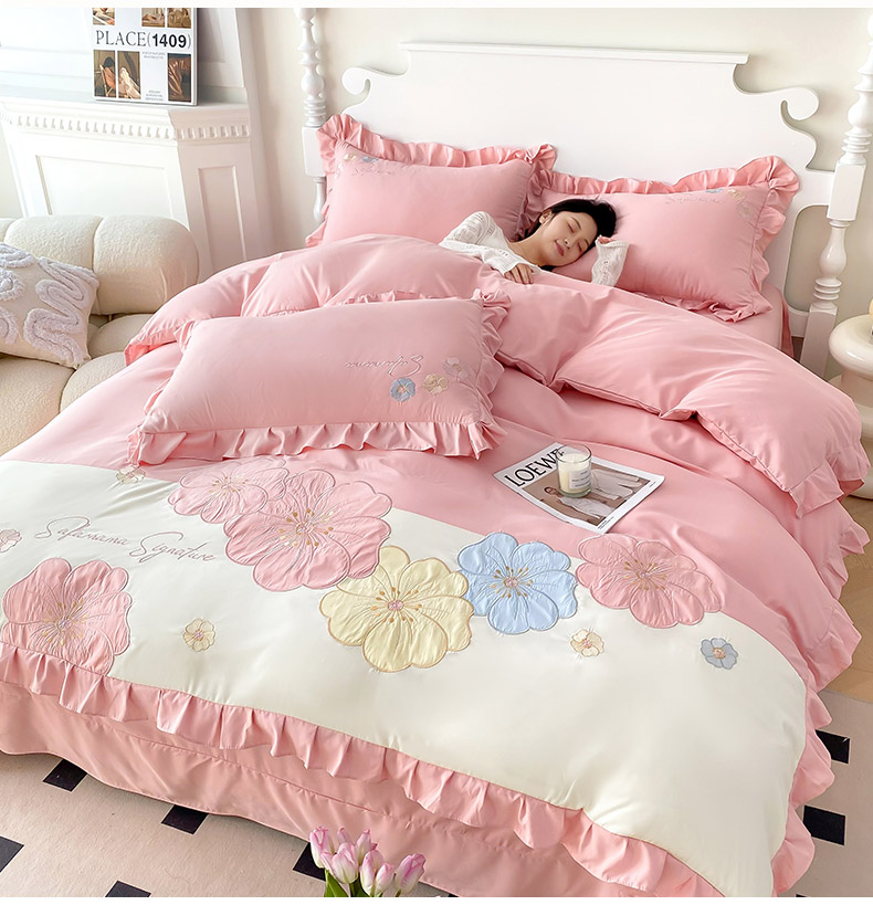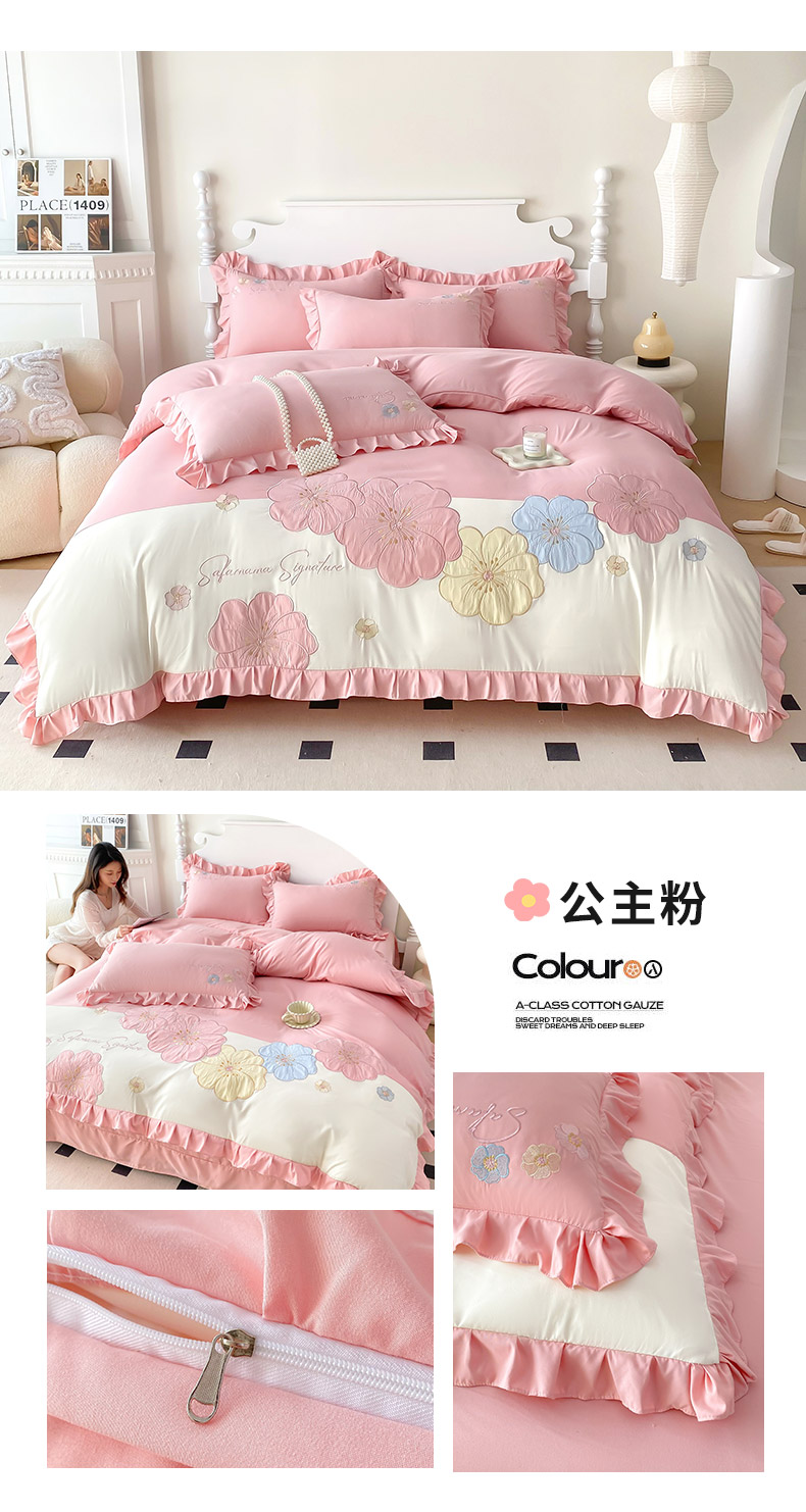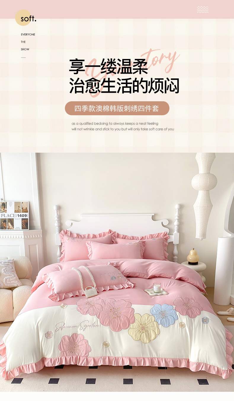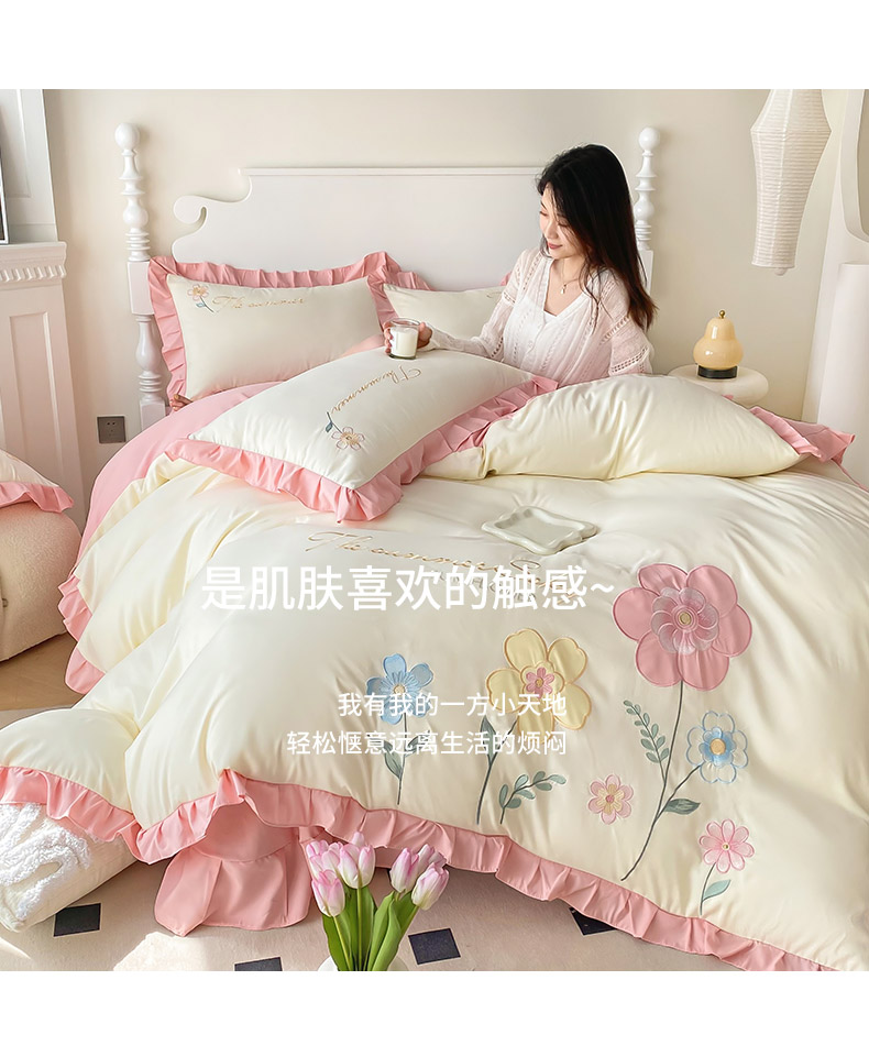 商品名称:(总)可以家居 2025新款澳棉韩版绣花花边款四件套-小甜心