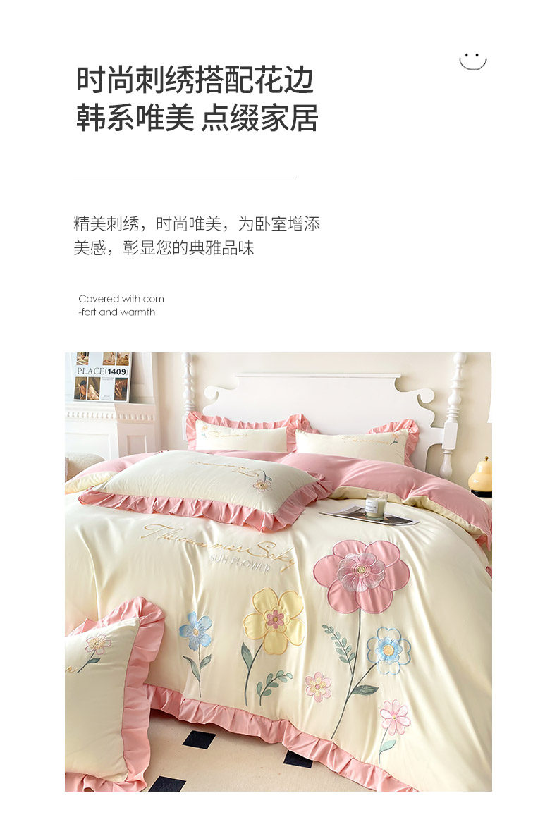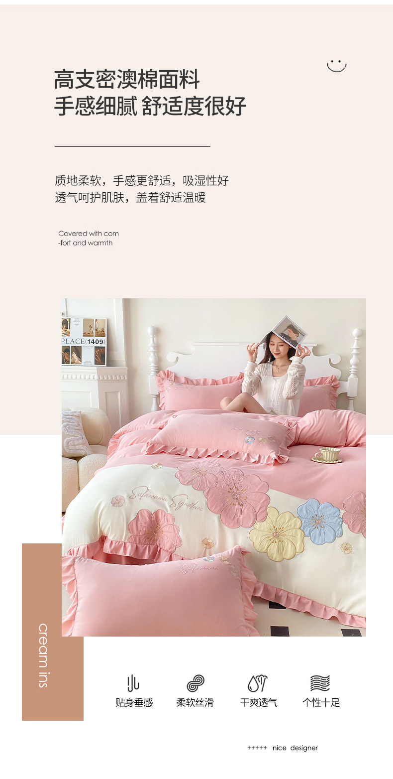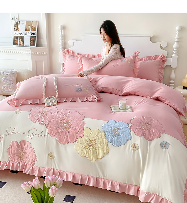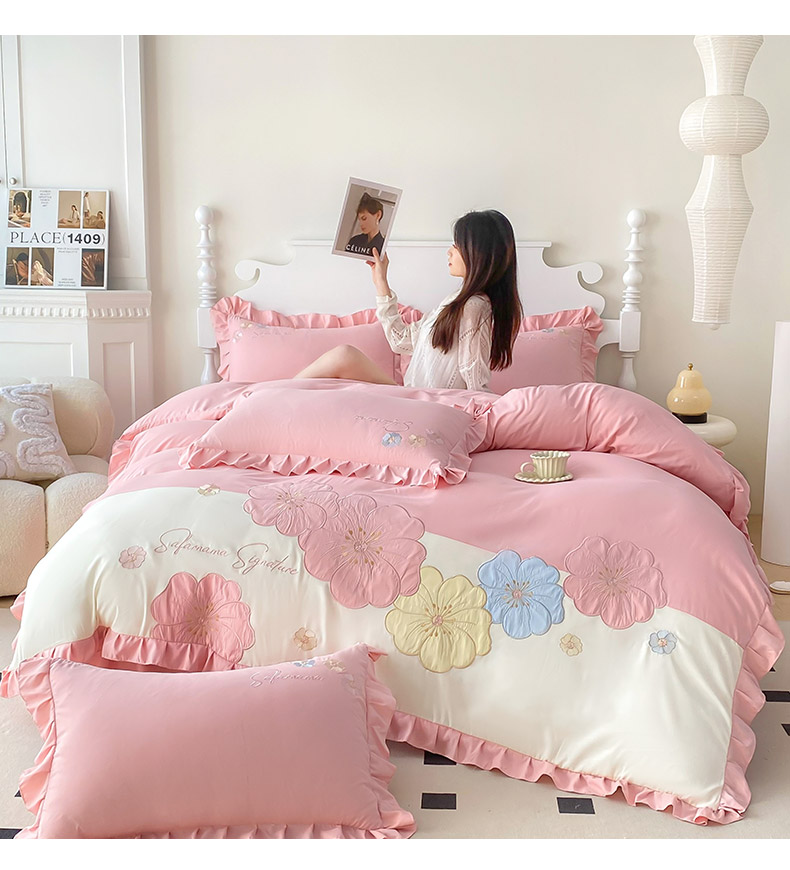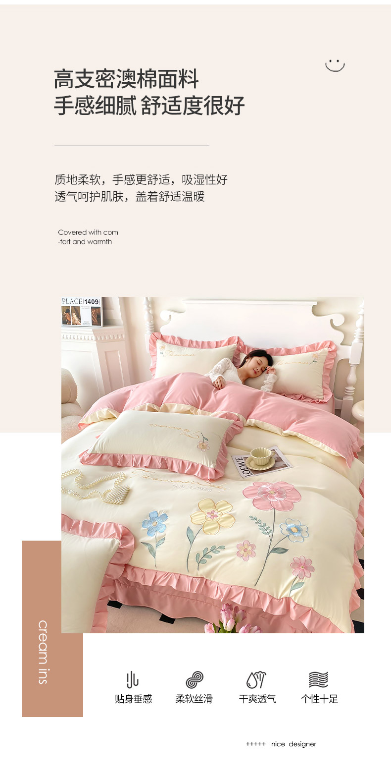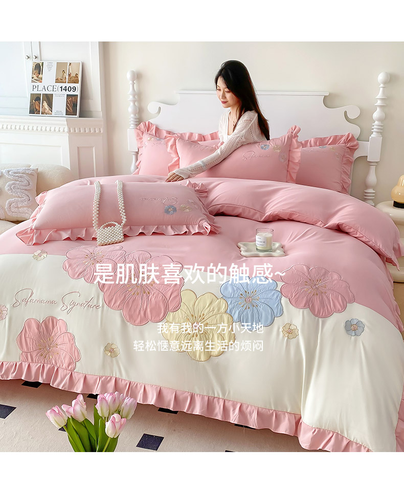 商品名称:(总)可以家居 2025新款澳棉韩版绣花花边款四件套-小甜心