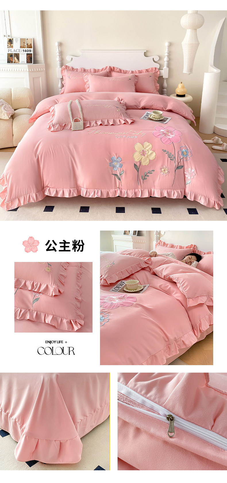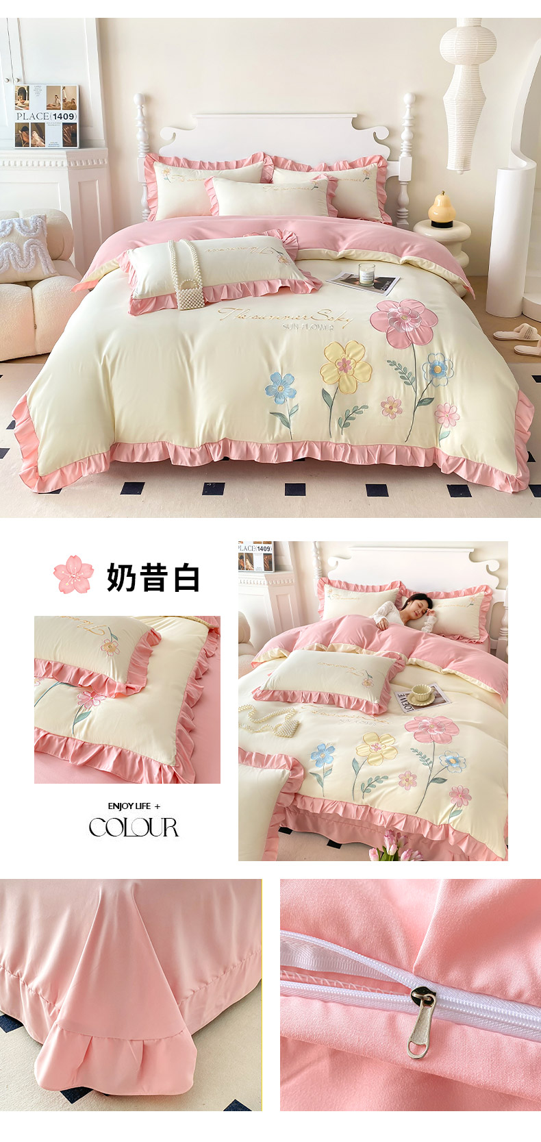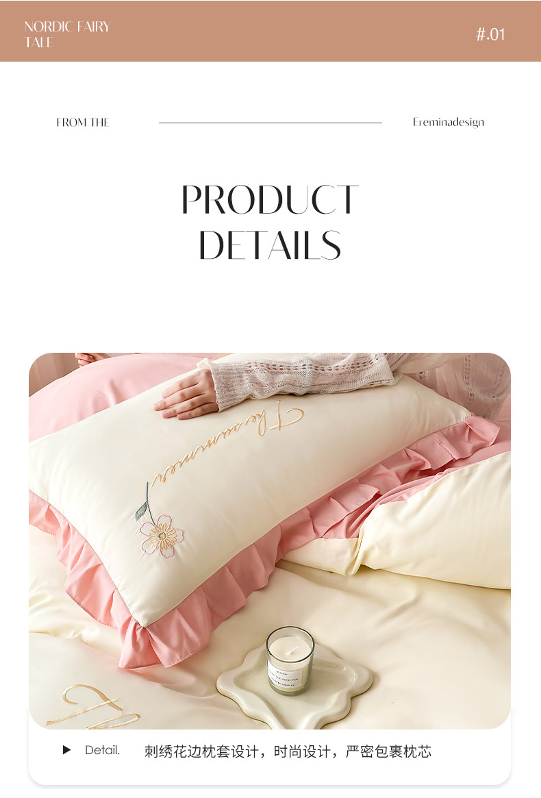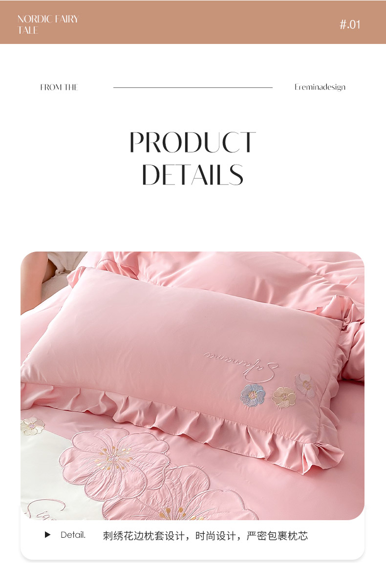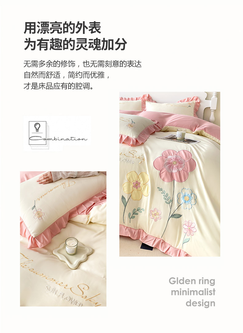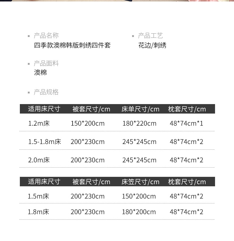 商品名称:(总)可以家居 2025新款澳棉韩版绣花花边款四件套-小甜心