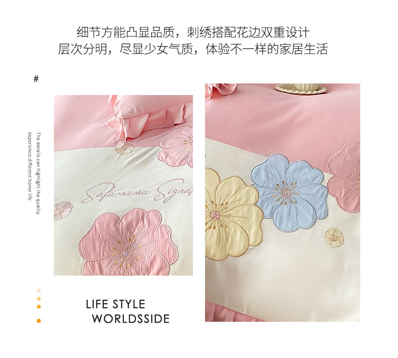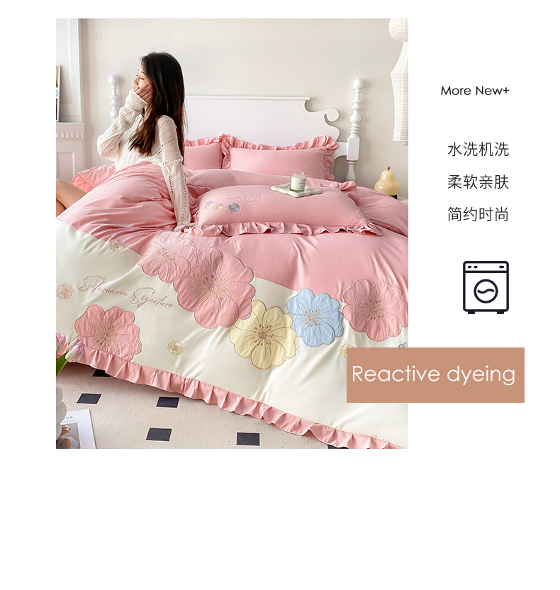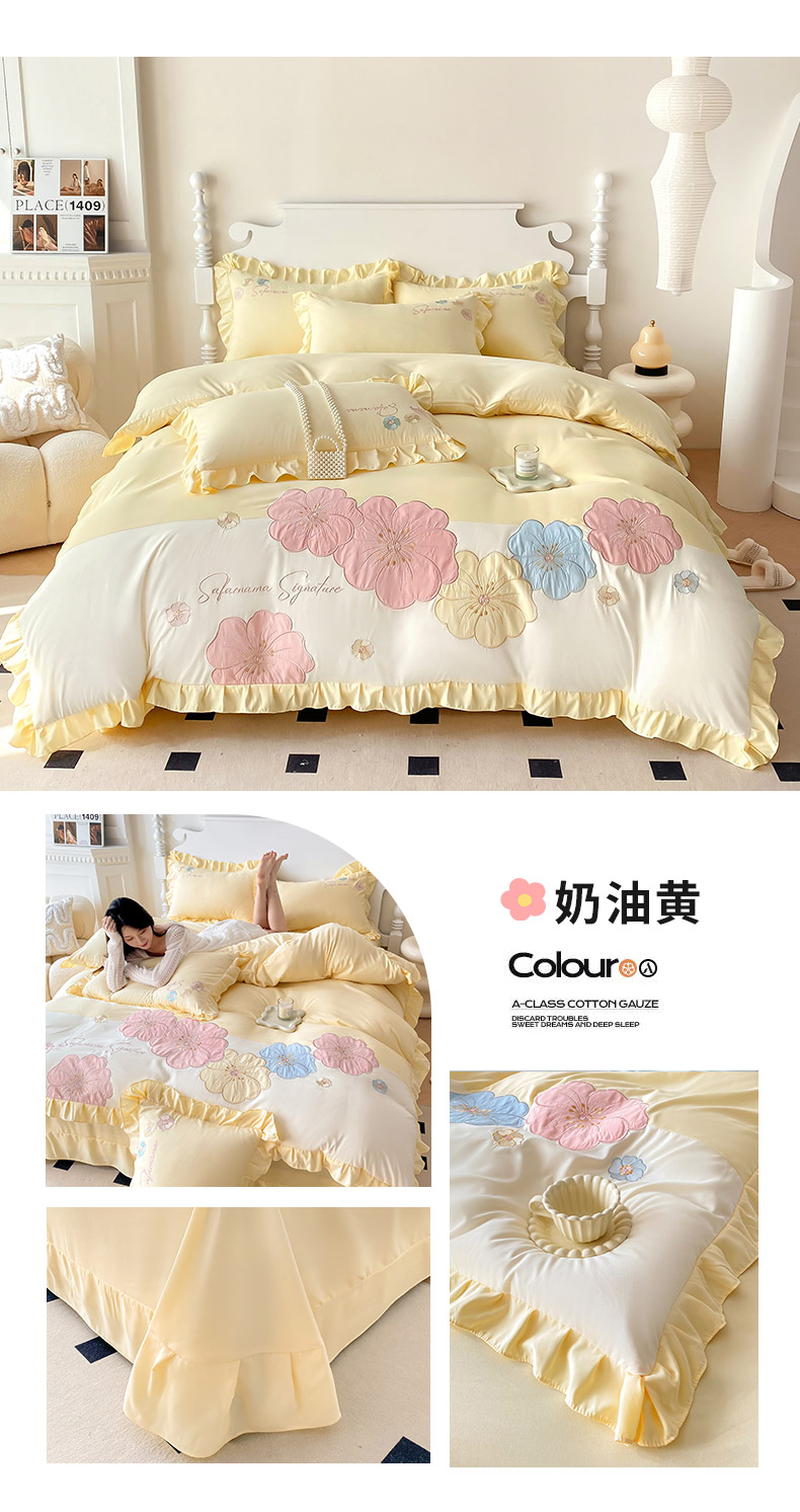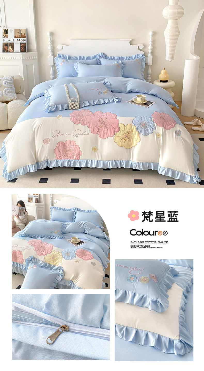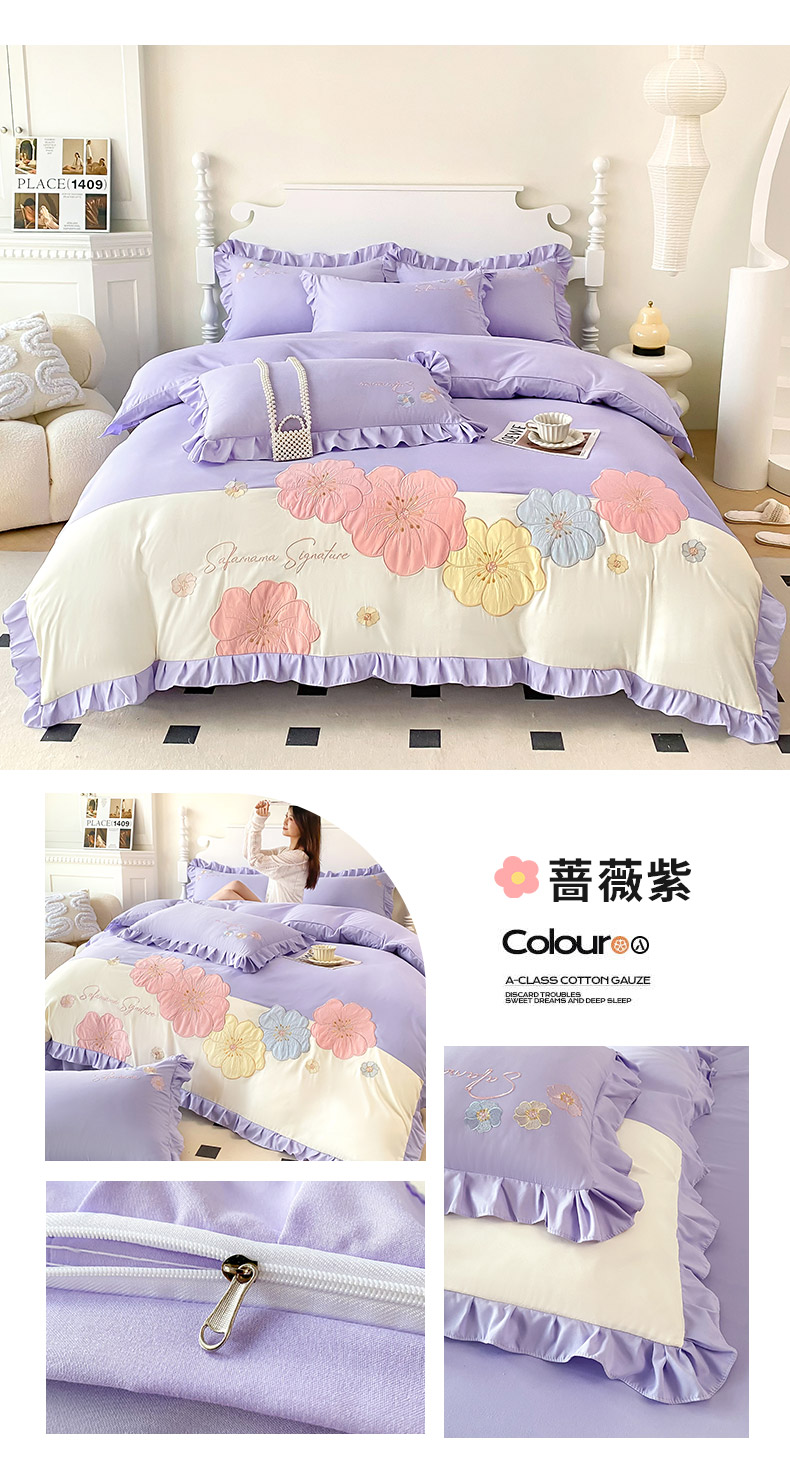 (总)可以家居 2025新款四季款韩版水洗棉澳棉刺绣四件套,玛格丽繁星蓝,玛格丽贵族粉,玛格丽奶油黄,玛格丽新芽绿,玛格丽优雅紫