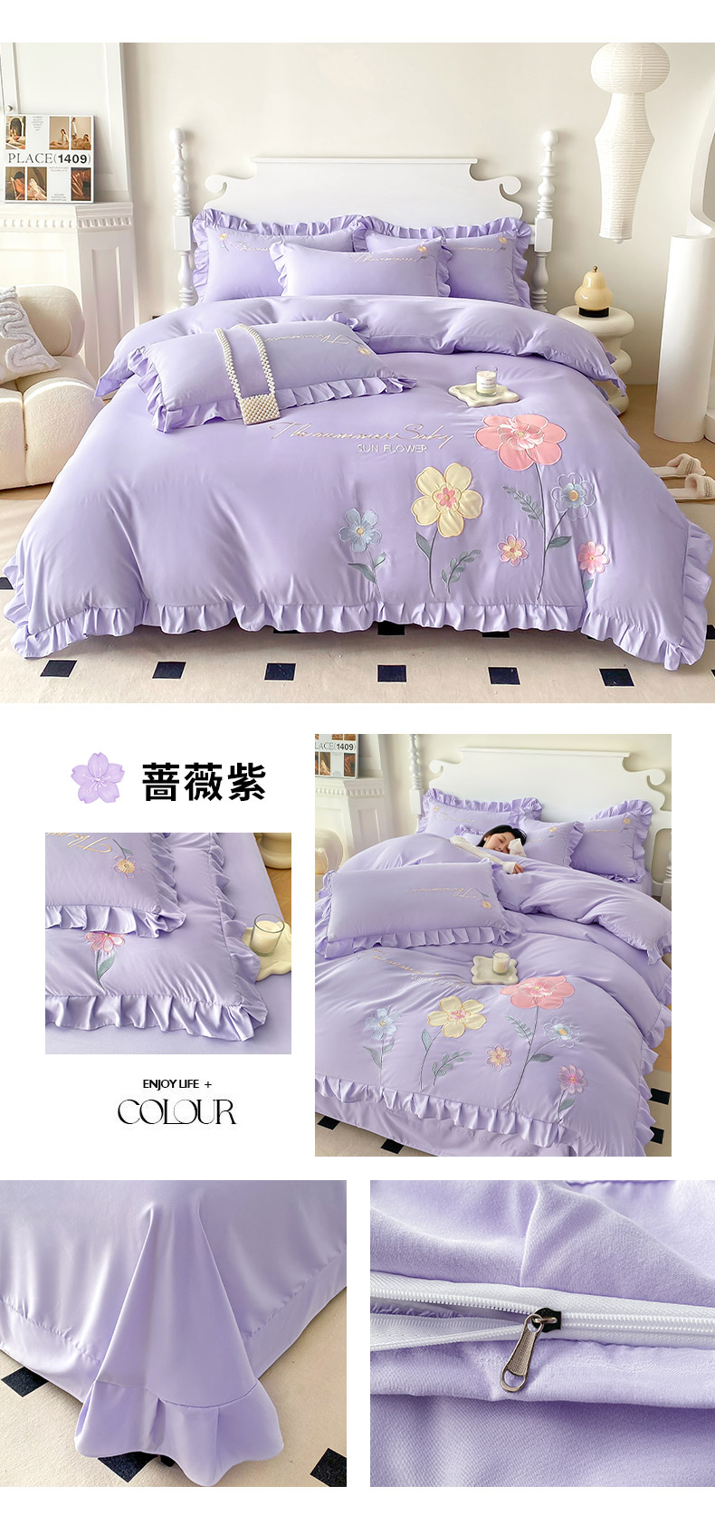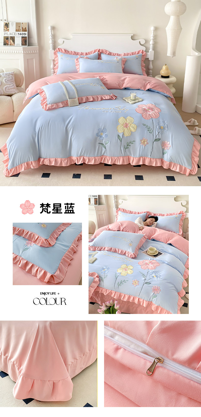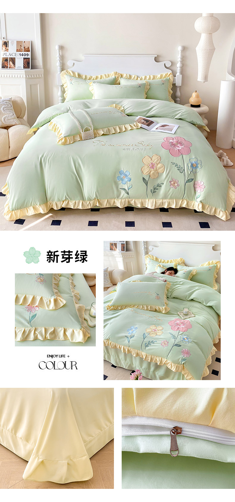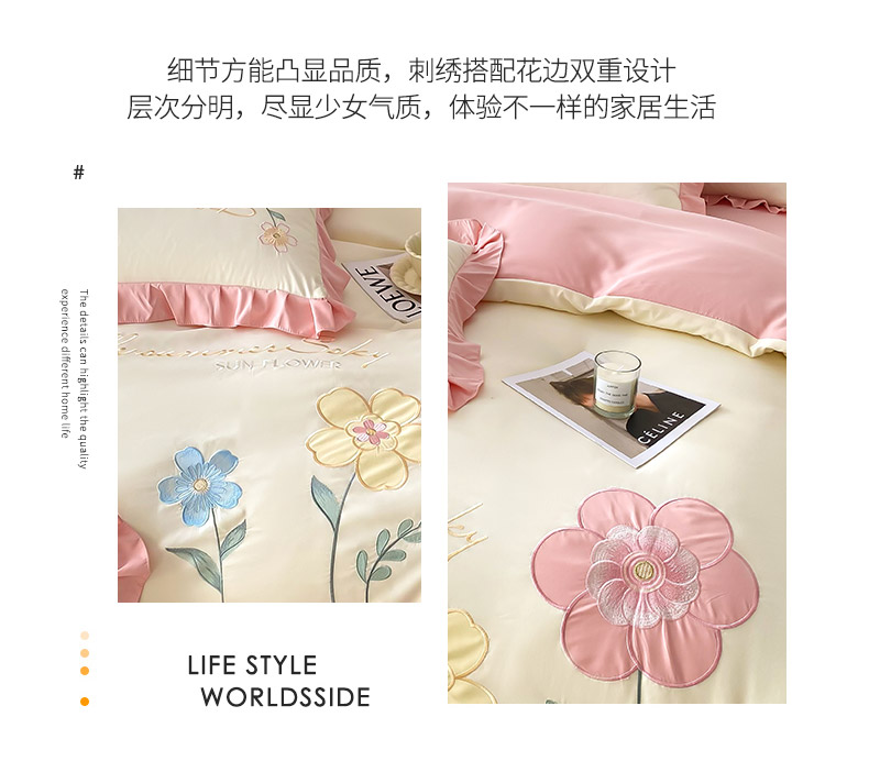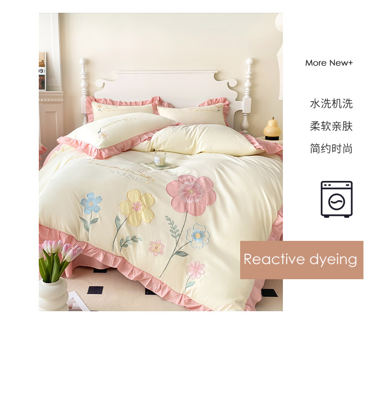 (总)可以家居 2025新款四季款韩版水洗棉澳棉刺绣四件套,玛格丽繁星蓝,玛格丽贵族粉,玛格丽奶油黄,玛格丽新芽绿,玛格丽优雅紫