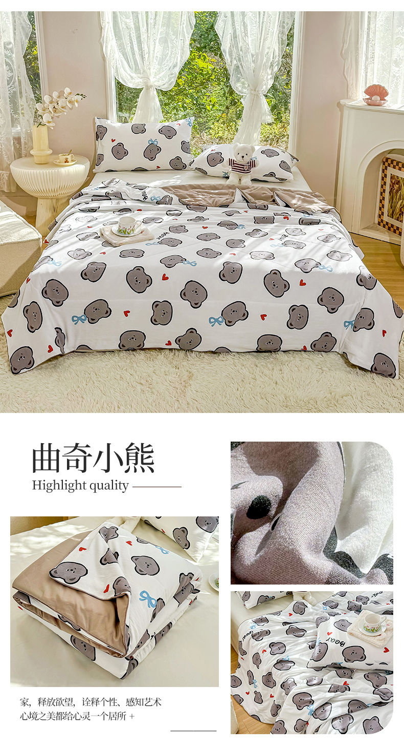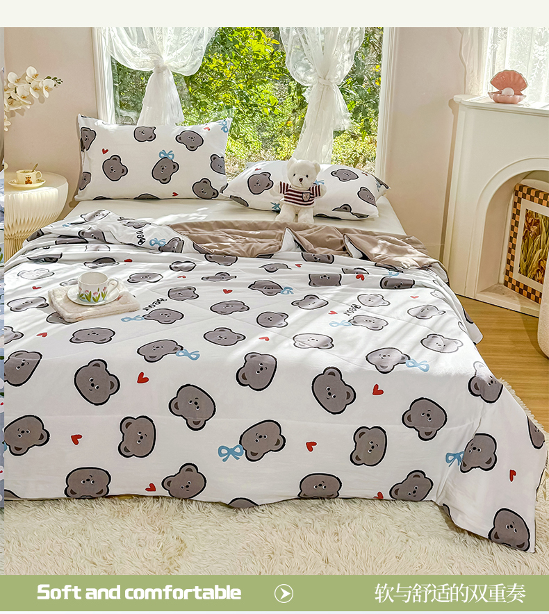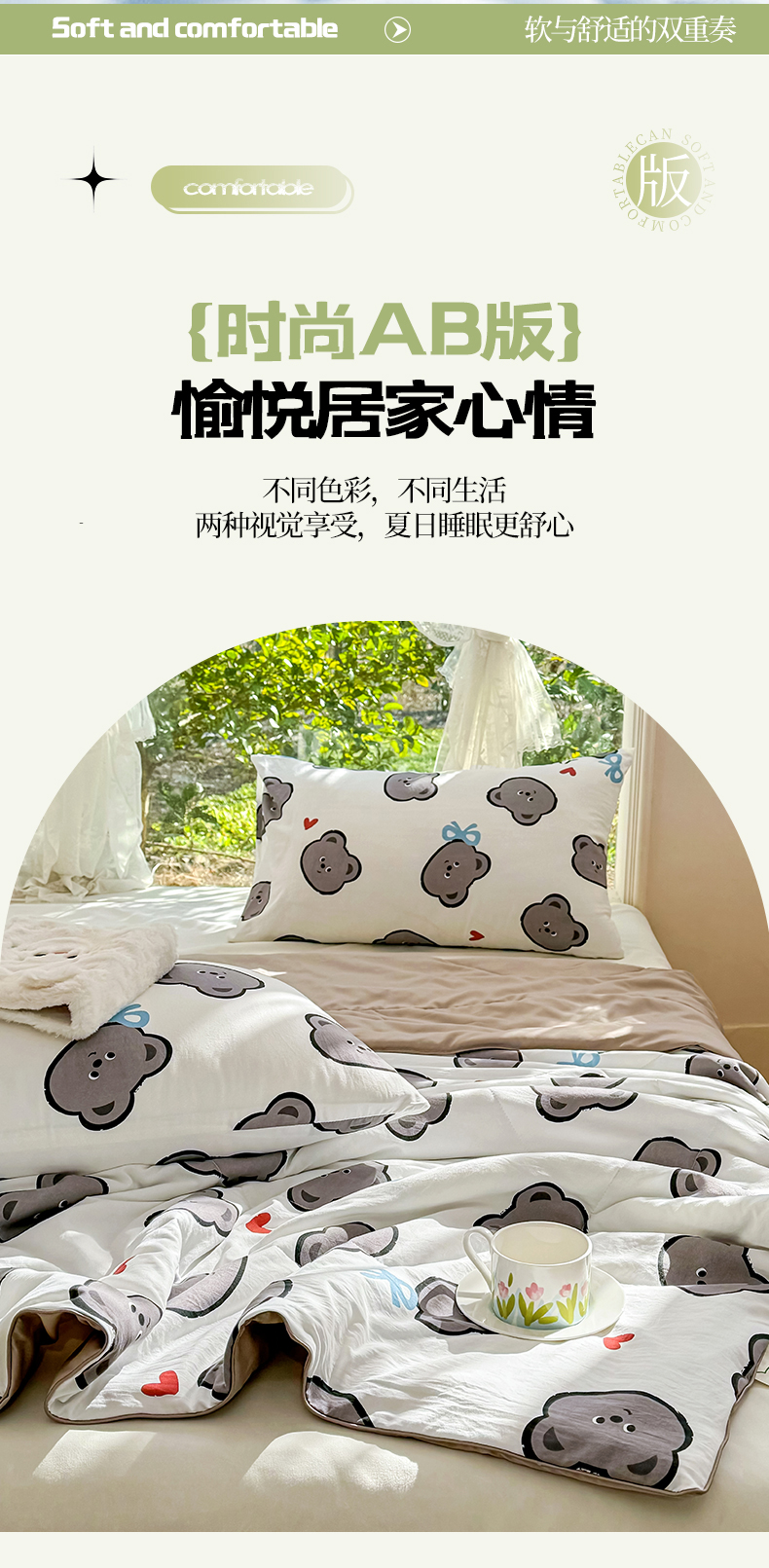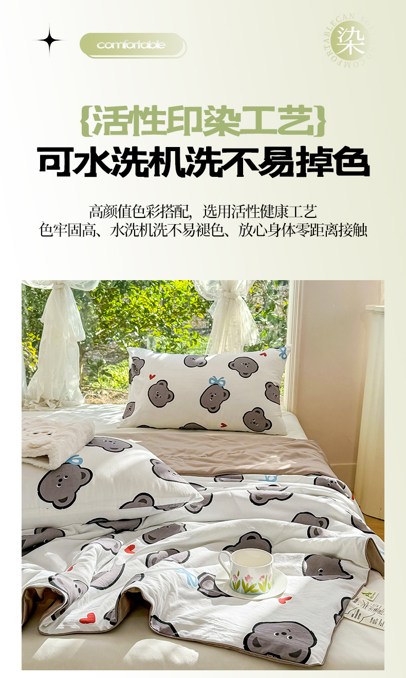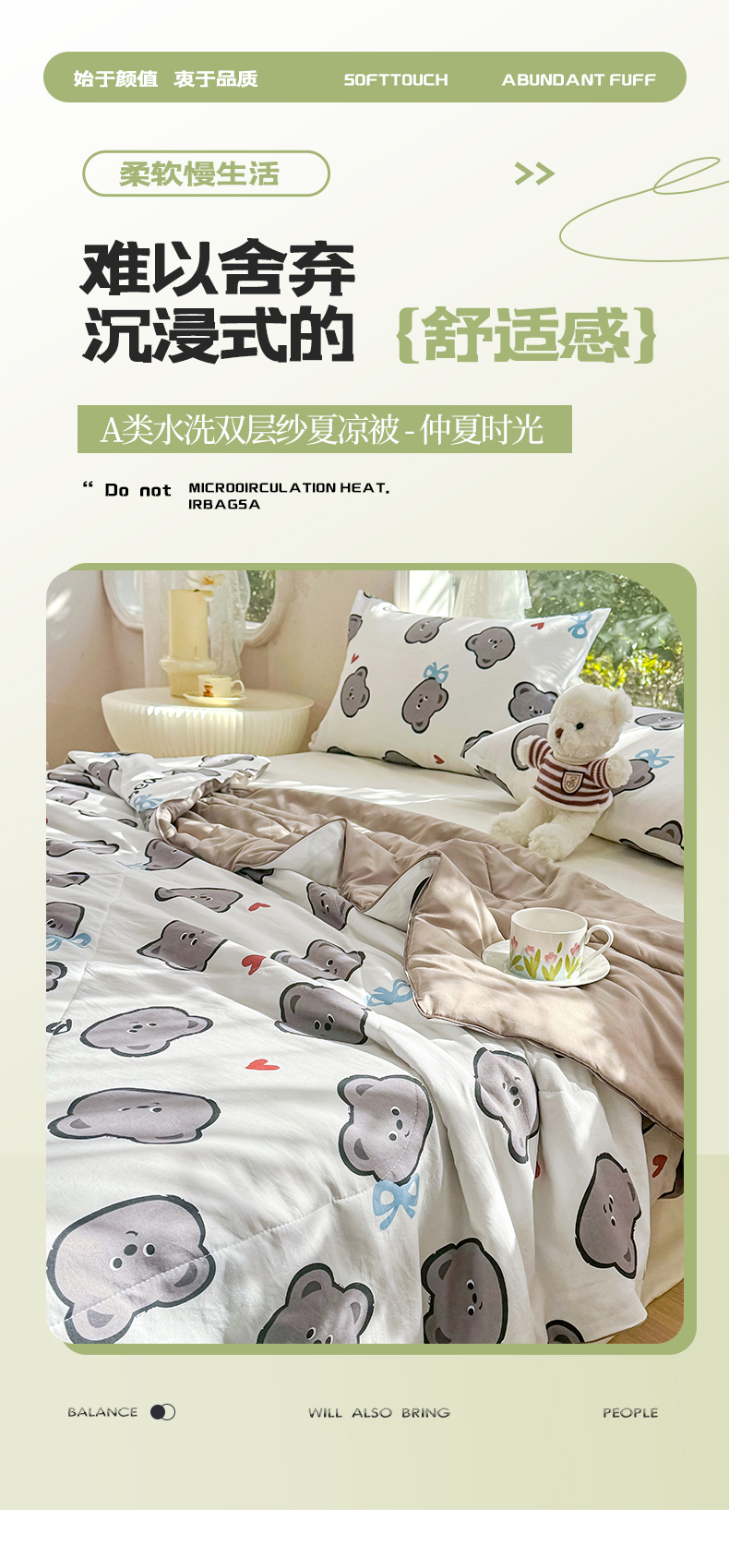 梦恬佳-2024新款A类水洗双层纱夏凉被 曲奇小熊
