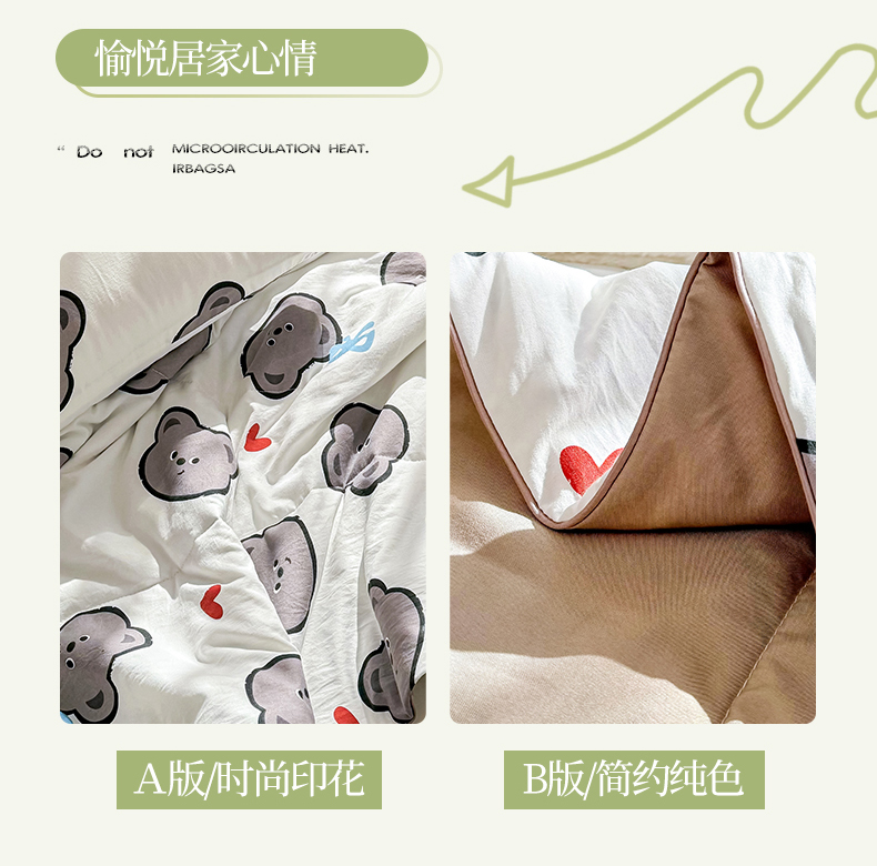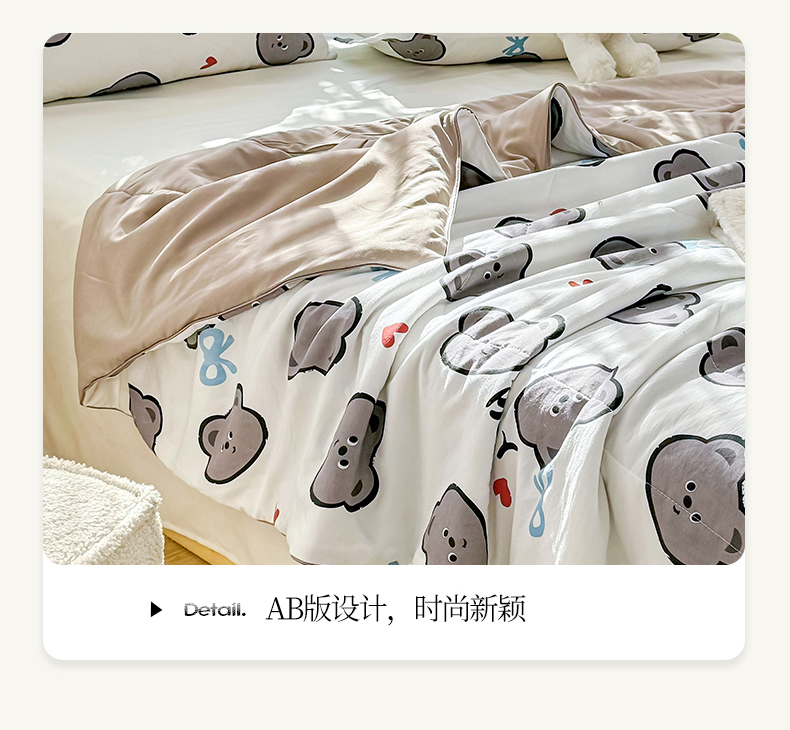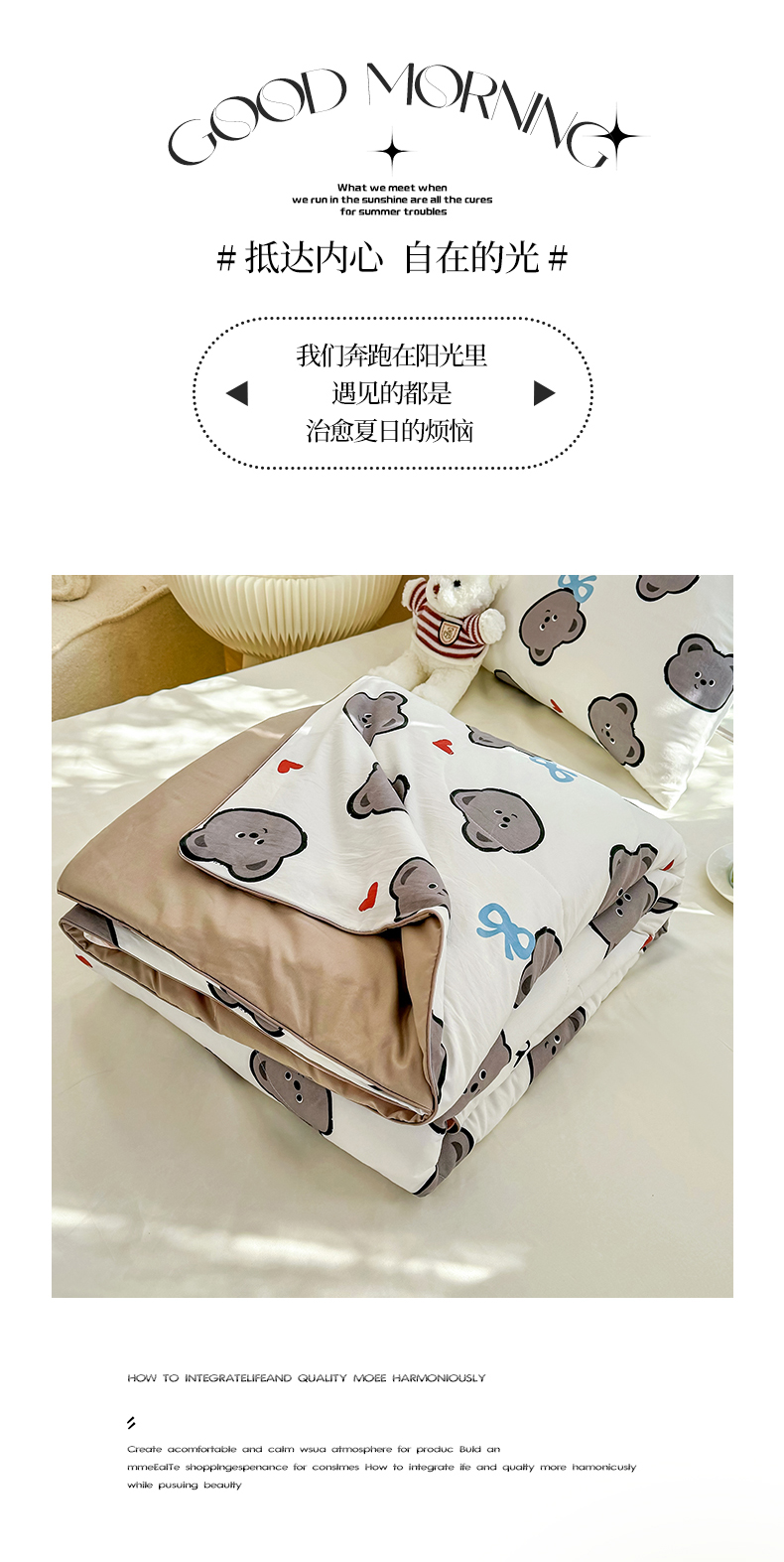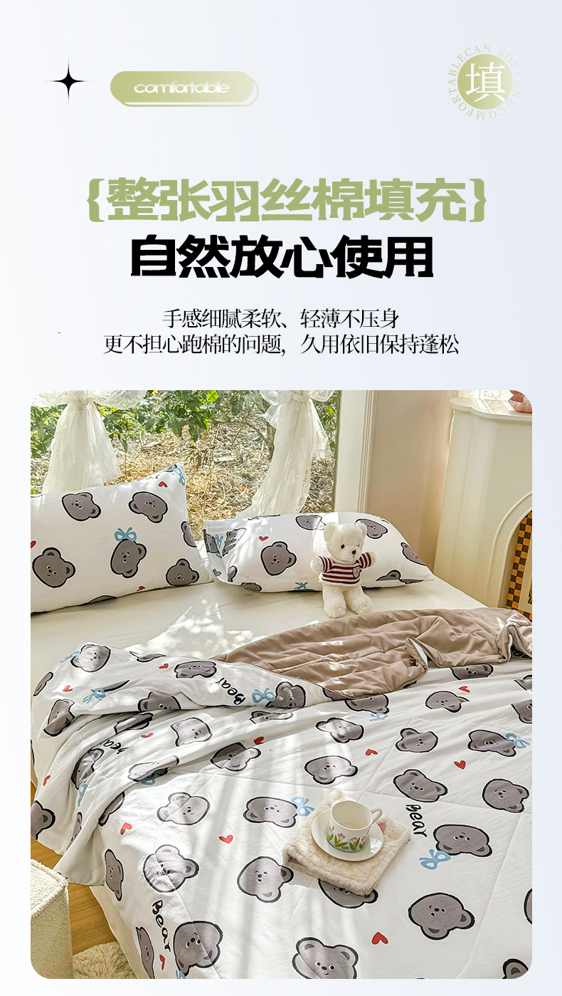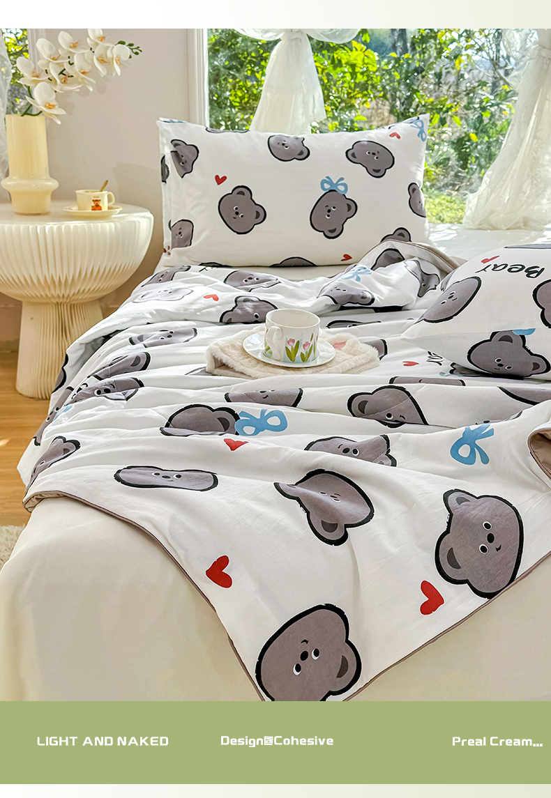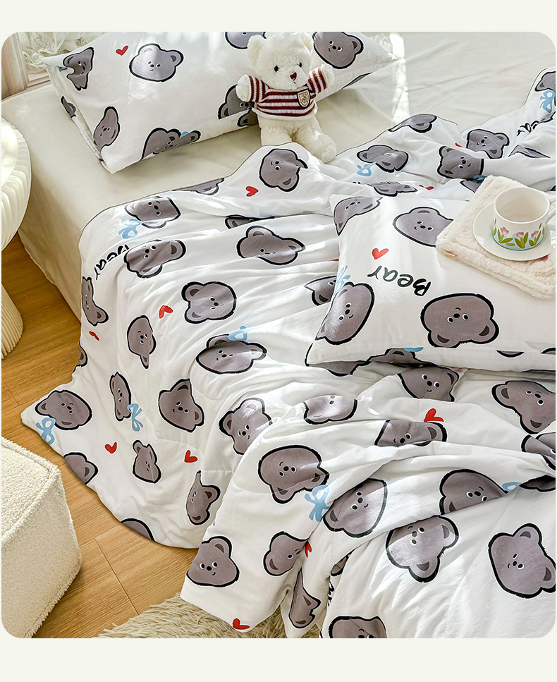 梦恬佳-2024新款A类水洗双层纱夏凉被 曲奇小熊